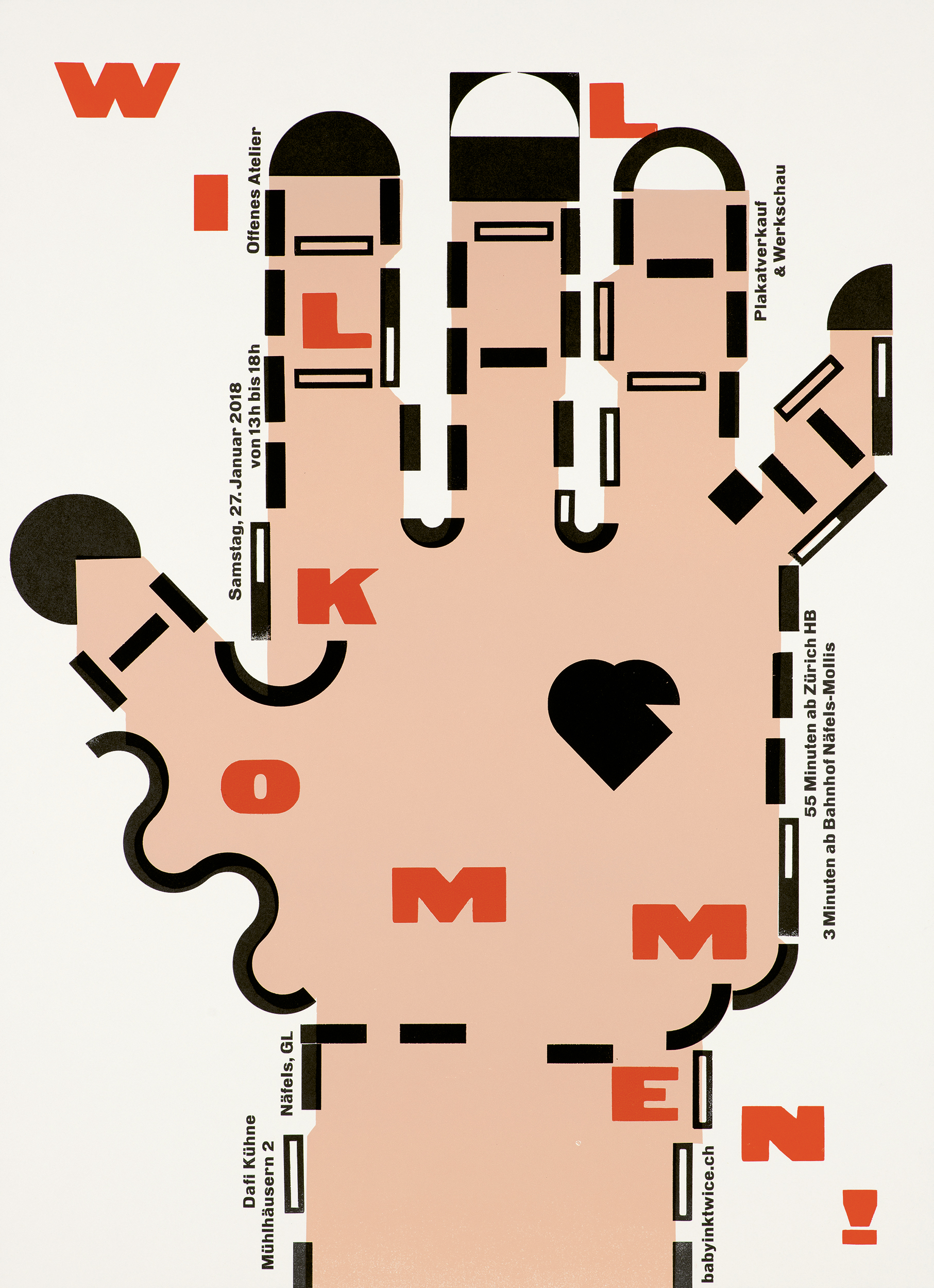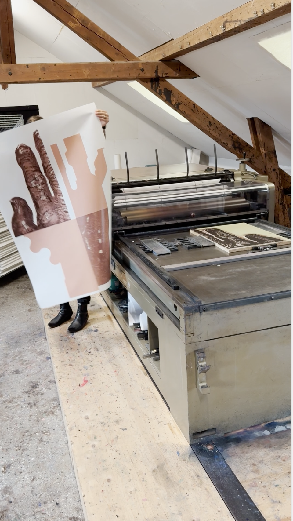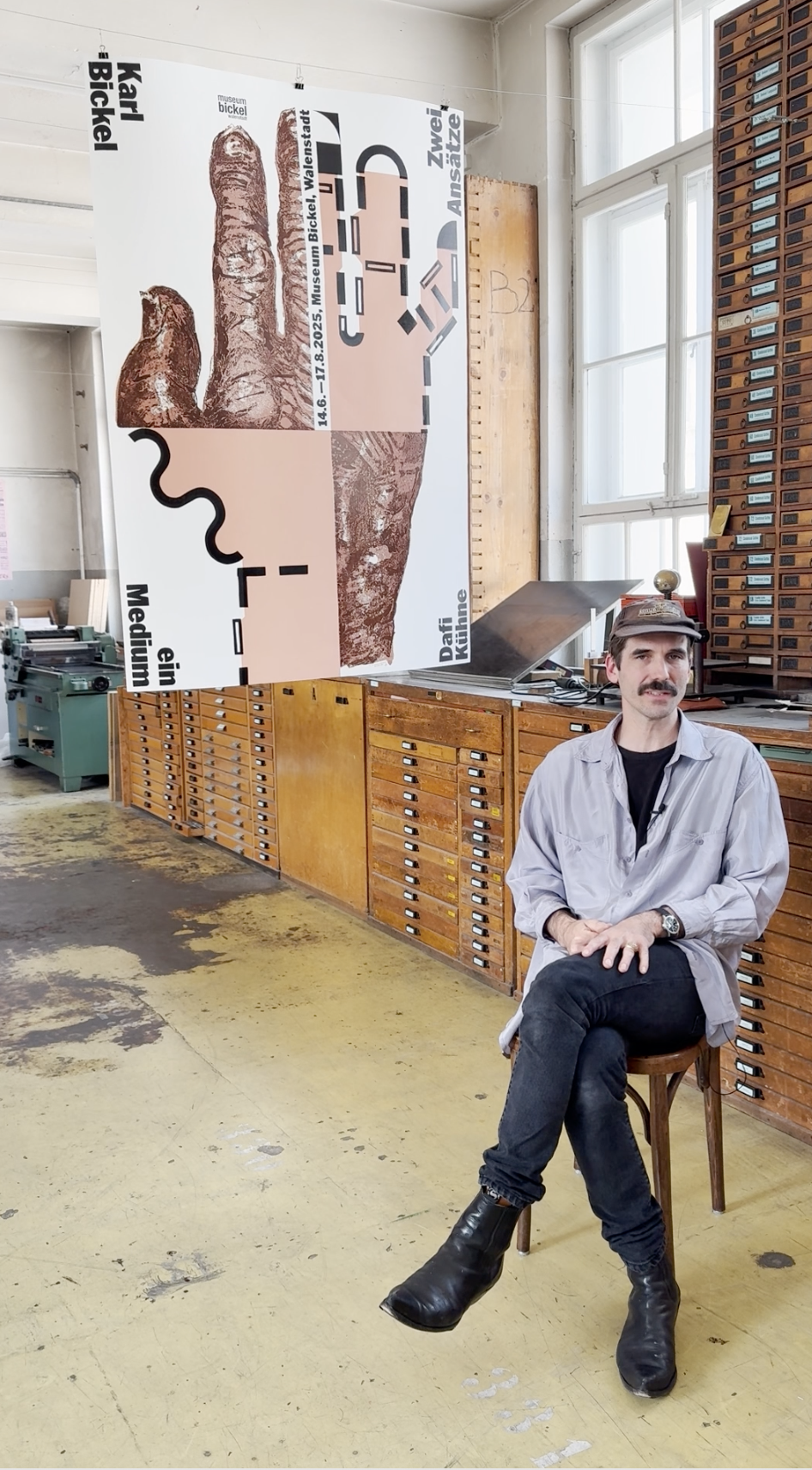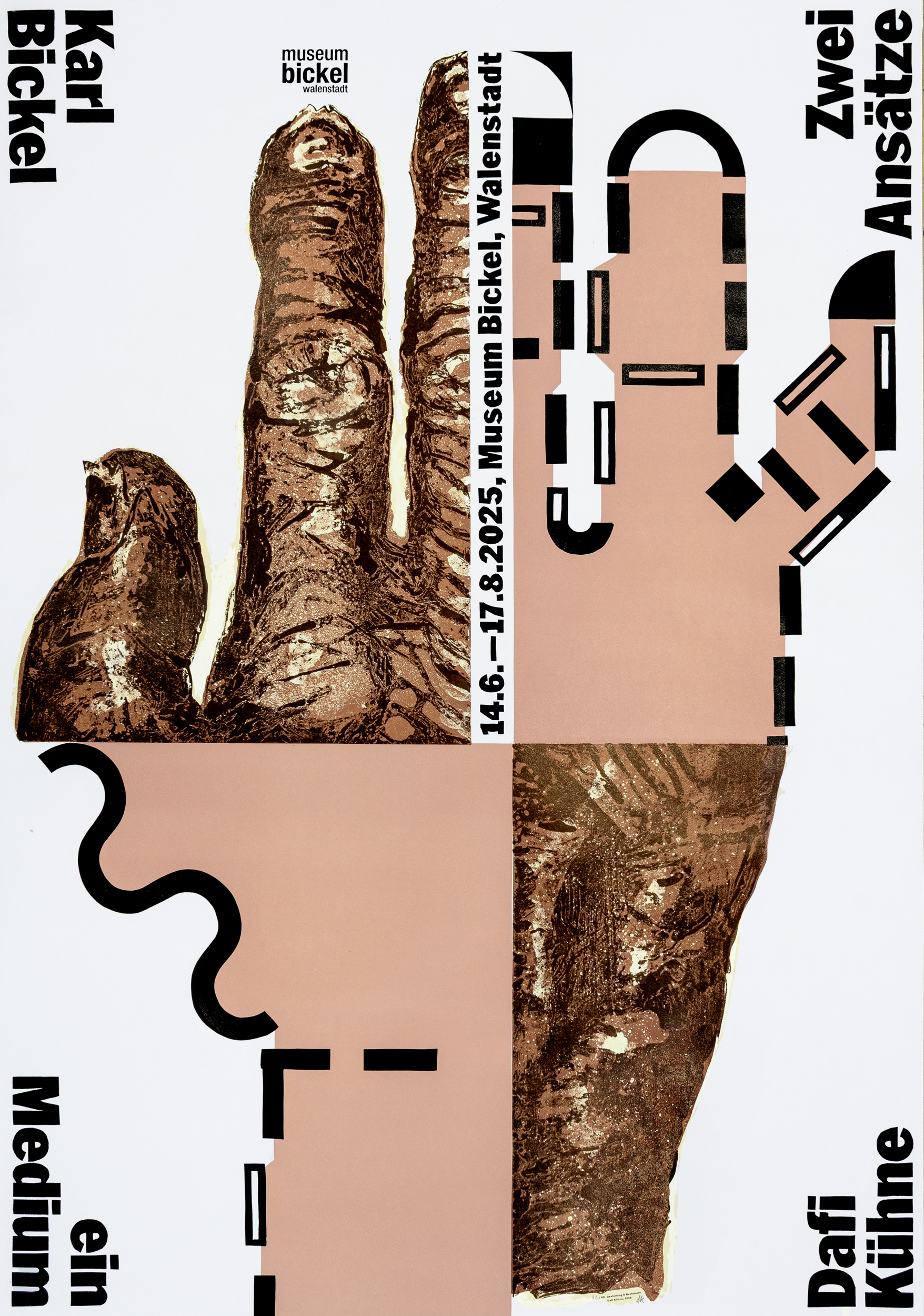 The cut-up poster has been letterpress printed from etched and hand-cut linoleum to reproduce mainly the complicated Bickel hand – which was originally printed in stone lithography.