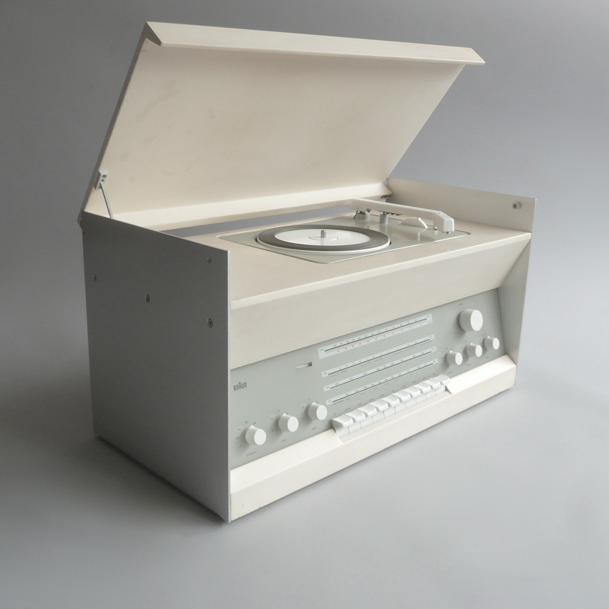 “An early Rams work for Braun, marking a significant aesthetic development. The Atelier series of designs were undertaken by Rams alone, without collaboration with Hans Gugelot. Whilst Atelier 1 & 2 are derivative of Gugelot and largely uninteresting, the Atelier 3 design marks an important shift, one that would set Rams, and Braun Design more generally, on a course significantly different from that earlier established for it by the Ulm HfG.