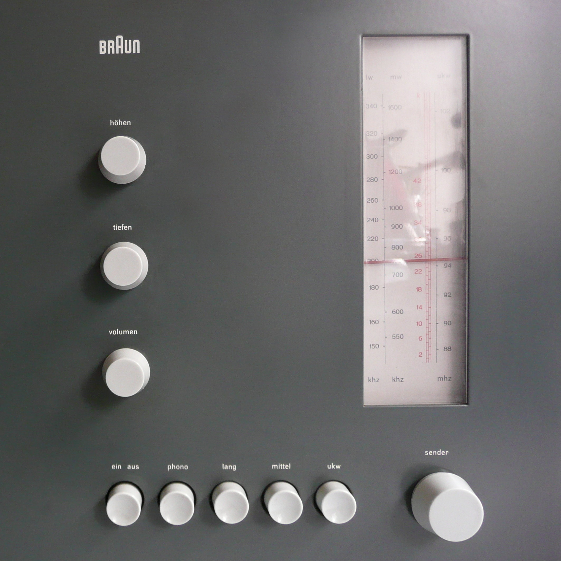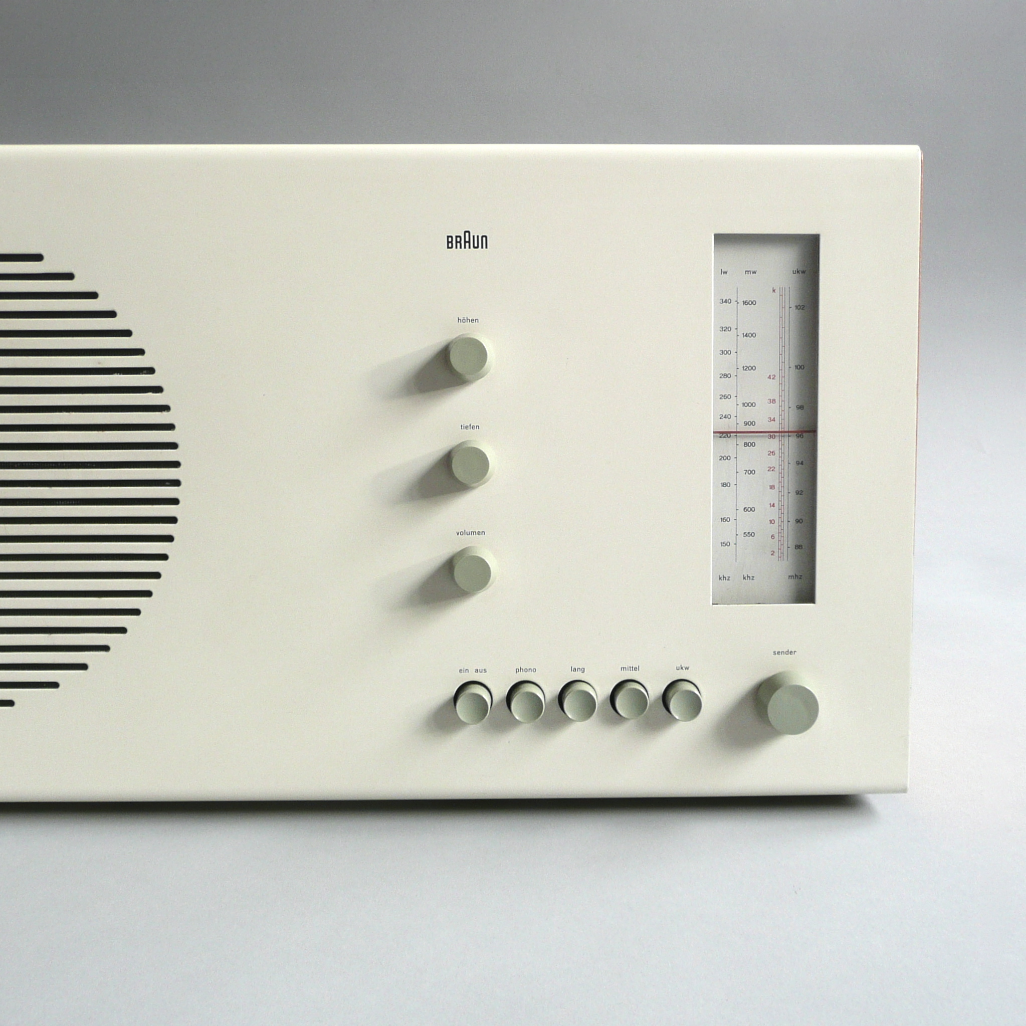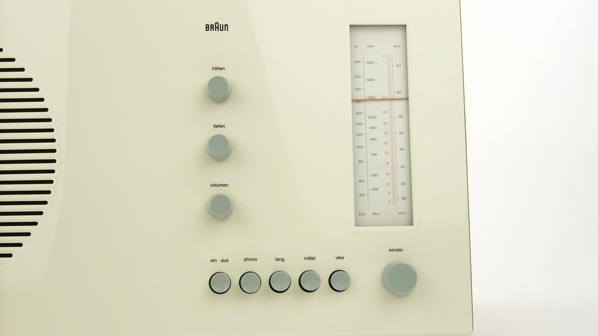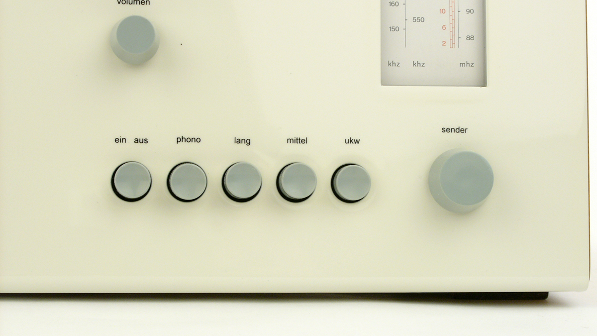 Nobel dates back to 1929 and was designed by Sjoerd Henrik de Roos, who developed it for Lettergieterij Amsterdam. The aim was to find an alternative to Futura and Akzidenz-Grotesk, which were released in 1927. The typeface was used in many Dutch typesetting companies until the 1960s. From Hans Gugelot’s point of view, it was much better suited to labeling the control elements than Futura, Akzidenz Grotesk or similar sans serif linear antiquas, since Helvetica was not released until 1956, at the same time as SK4. From SK5 onwards, Braun used Akzidenz Grotesk, among others.