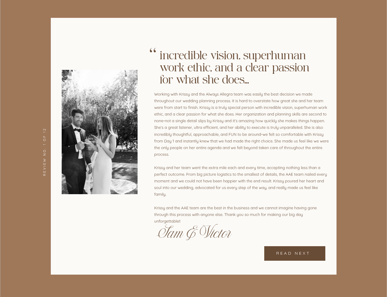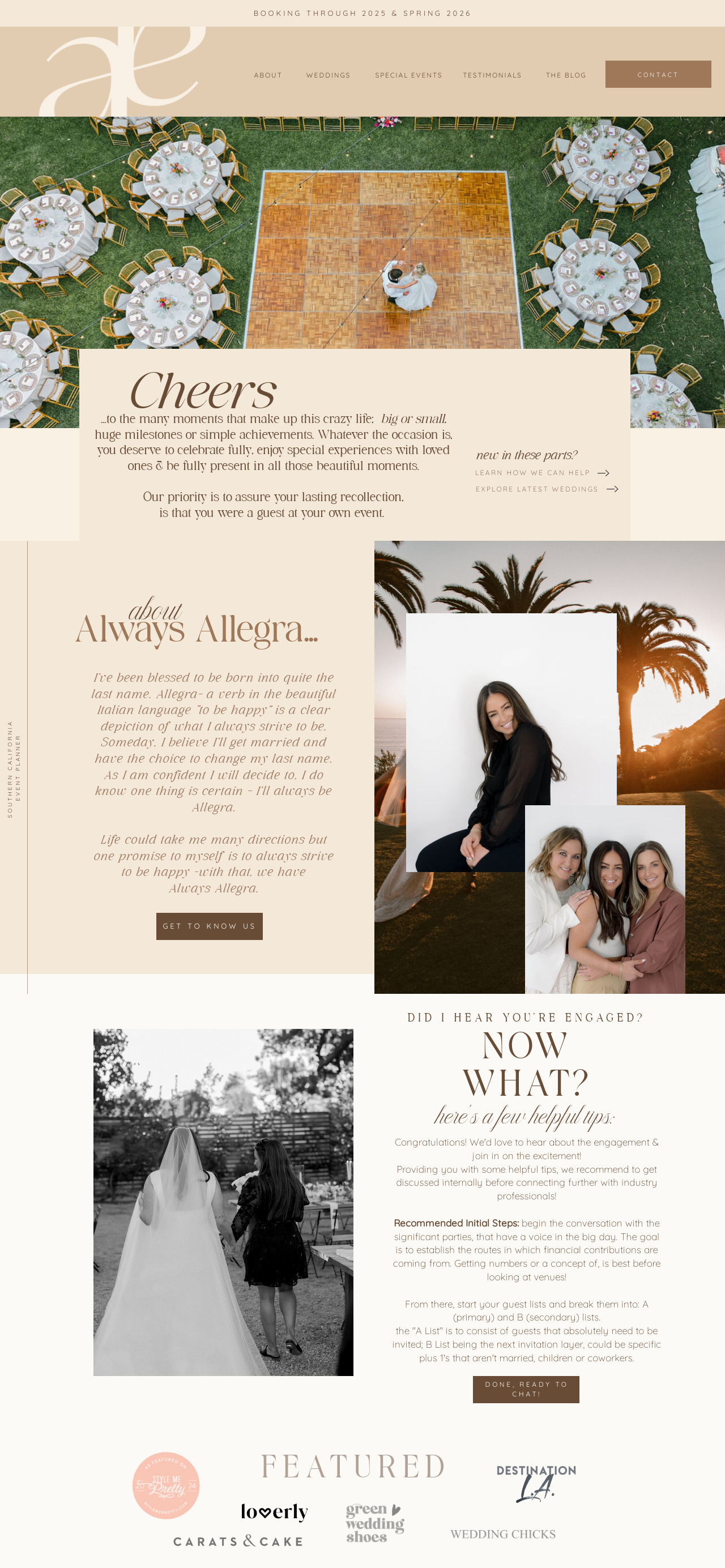 Always Allegra is a Southern California-based wedding planning and coordination service specializing in creating personalized and memorable celebrations. The company offers a range of services, including full-service planning, partial planning, and day-of coordination, tailored to meet the unique needs of each couple. Their approach emphasizes attention to detail, seamless execution, and a commitment to bringing clients’ wedding visions to life.