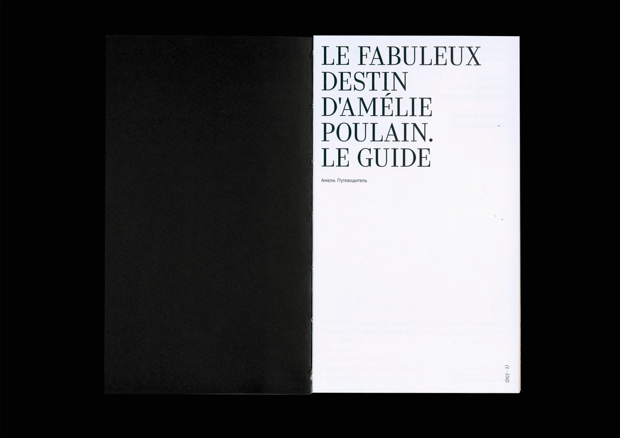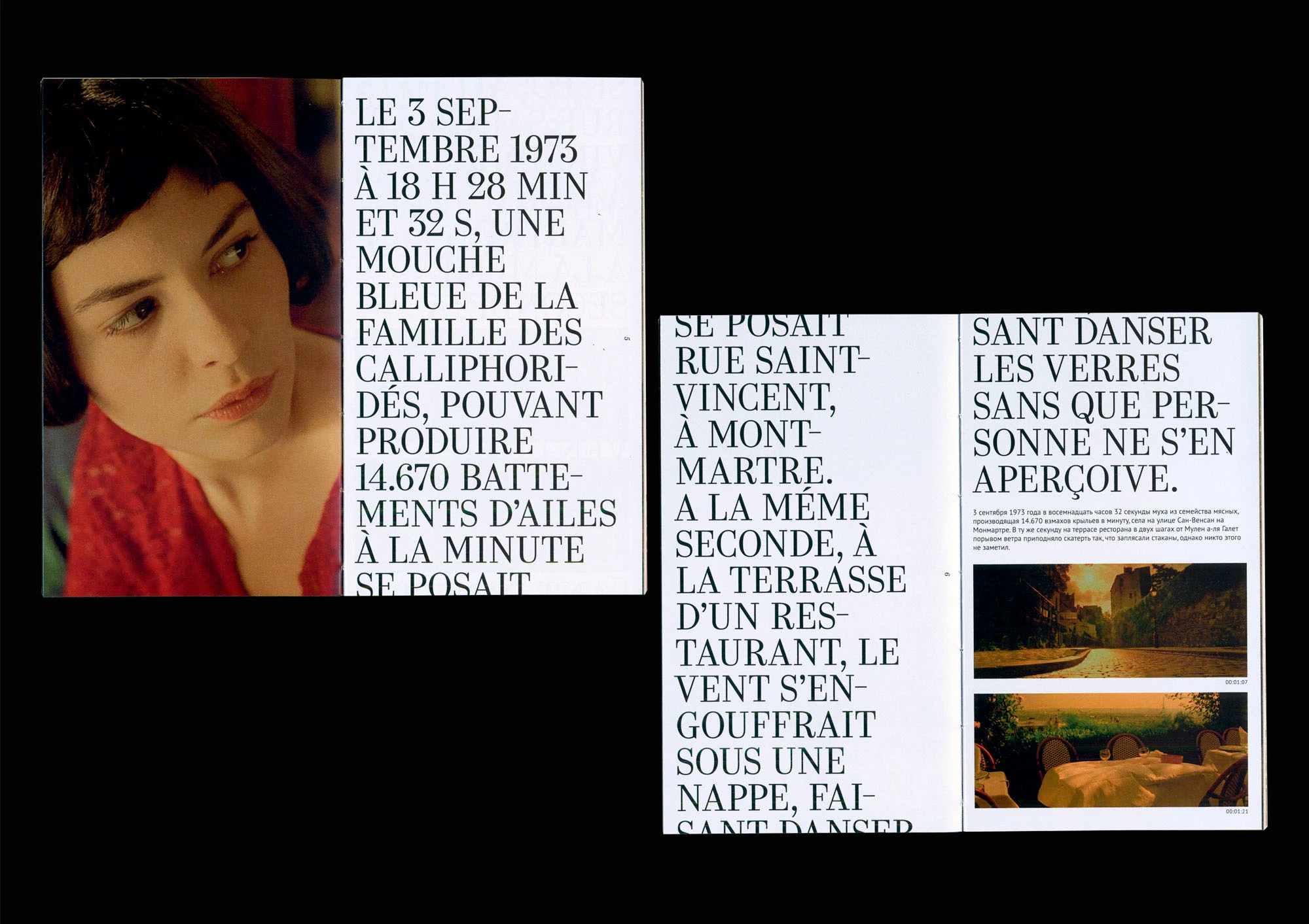 Le Fabuleux Destin d’Amélie Poulain. Le Guide Contributed by Adelina Shaydullina on Jul 22nd, 2025. Artwork published in March 2023. Source: www.behance.net Julia Dvoryaninova. License: All Rights Reserved. A student in Typomania School’s book design course, Julia Dvoryaninova decided to create a guidebook that introduces the reader to the main locations and characters of the film about Amélie Poulain, citing reviews and comments by its authors. The book’s typography is executed with the help of Kazimir by CSTM Fonts and PT Sans. Source: www.behance.net Julia Dvoryaninova. License: All Rights Reserved. Source: www.behance.net Julia Dvoryaninova. License: All Rights Reserved. Source: www.behance.net Julia Dvoryaninova. License: All Rights Reserved. Source: www.behance.net Julia Dvoryaninova. License: All Rights Reserved. Source: www.behance.net Julia Dvoryaninova. License: All Rights Reserved. Source: www.behance.net Julia Dvoryaninova. License: All Rights Reserved. Source: www.behance.net Julia Dvoryaninova. License: All Rights Reserved. Source: www.behance.net Julia Dvoryaninova. License: All Rights Reserved. Typefaces More about KazimirGet KazimirMore about PT Sans Formats Books (6480) Topics Film/TV (2012) Designers/Agencies Julia Dvoryaninova (2) Tagged withbook covers (5820)cinema (142)Typomania School (3)student works (758)guides (152)Amélie (movie) (1)book interiors (3626)title pages (1028)all caps (7517)cropped type (495)straight apostrophe (') (145)multiscript (887)Cyrillic (script) (471)Latin (script) (716)multilingual (2588)French (language) (2504)wraparound text (187) Artwork location Russia (294) Moscow (193) In SetsDesigns by Women (Fonts In Use Staff) (3538)Book Design (Lucas Bevilaqua) (1370)Photography (Lucas Bevilaqua) (161)Books (Kyle Kabel) (163)book (Alessandra Pasti) (11)modern and neomodern (Spencer Lachmanec) (4) Post a comment Name Email – will not be published Website Your response Submit Comment More Kazimir in use Lyuba, Lyubochka. Lyubov Sergeyevna Popova. 1889–1924 exhibition at Jewish Museum and Tolerance Center2024ABC DesignNadya KorbutKirill AssContributed by Adelina Shaydullina Shelf Life: Chronicles of a Cairo Bookseller by Nadia Wassef (Russian edition)2022unknownContributed by Adelina Shaydullina UPPA Wineryc. 2018Redo BureauMarina KondratenkoAnna TsybinaContributed by redobureau Sponsor More in Film/TV The Cabinet of Dr. Caligari at the Roxie Theater flyer1988unknownContributed by Bryson Stohr Staff Pick Hum Bhai & a single Golab Tear (India Skate Tour 2019)2019Robert MarohnContributed by Robert Marohn Ölivia Musyk ft. The Bird Yellow – “Prune” music video2022Ignasi Àvila PadróContributed by Ignasi Àvila Padró Story & Heart2014Scribble ToneContributed by Stephen Coles Staff Pick More in Books Almayer’s Folly, Penguin Paperback1947Contributed by Stephen Coles Fear of Flying (Penguin Classics Deluxe Edition)2013Noma BarPaul BuckleyContributed by Stephen Coles Decommunized: Ukrainian Soviet Mosaics2017Hooga Creative AgencyContributed by Andrij Shevchenko Sometimes I feel like a Bulgarian not a Europeanc. 2022Vieceli & CremersContributed by HAL Typefaces More Fonts In Use Let ESP Work for You! by Patsy Ruth Welding1976unknownContributed by Florian Hardwig Staff Pick Bog Hånd Værk 2024c. 2024Formal SettingsContributed by Siri Lee Lindskrog Staff Pick Léopold & Aurèle Robert exhibitionc. 2023OnlabContributed by Fabio Furlani Staff Pick Great Scott logo and website2020Jed ChisholmContributed by Jed Chisholm Staff Pick