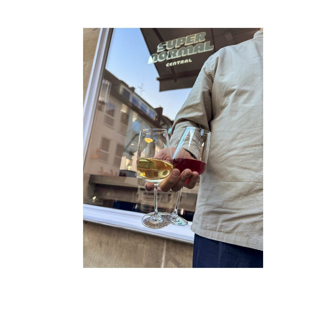 Visual identity for Supernormal Central, a café with selected coffees, natural wines and an honest product kitchen in Münster, Germany. The art direction by Nicole Royla makes use of Baustraße – by Fantasia Type – as a typeface that defines the visual identity and appears on menus, labels, flyers and signage.