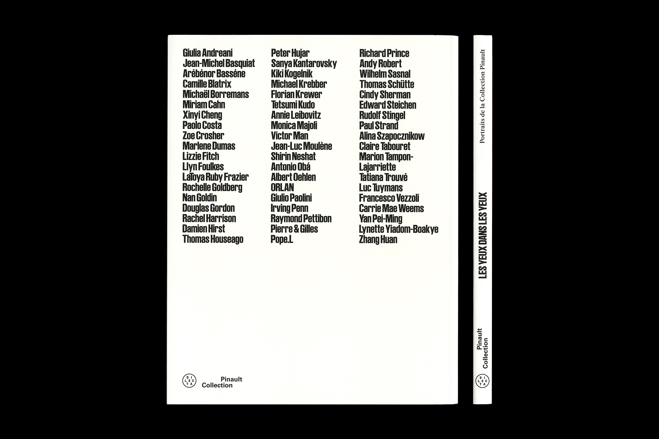 Graphic design and production of the book Les Yeux dans les yeux. Portraits de la Collection Pinault (“Eyes in the eyes. Portraits from the Pinault Collection”) created for the eponymous exhibition presented at Couvent des Jacobins in Rennes, from 14 June to 14 September 2025. The publication features masterpieces from Pinault Collection, curated by Jean-Marie Gallais.