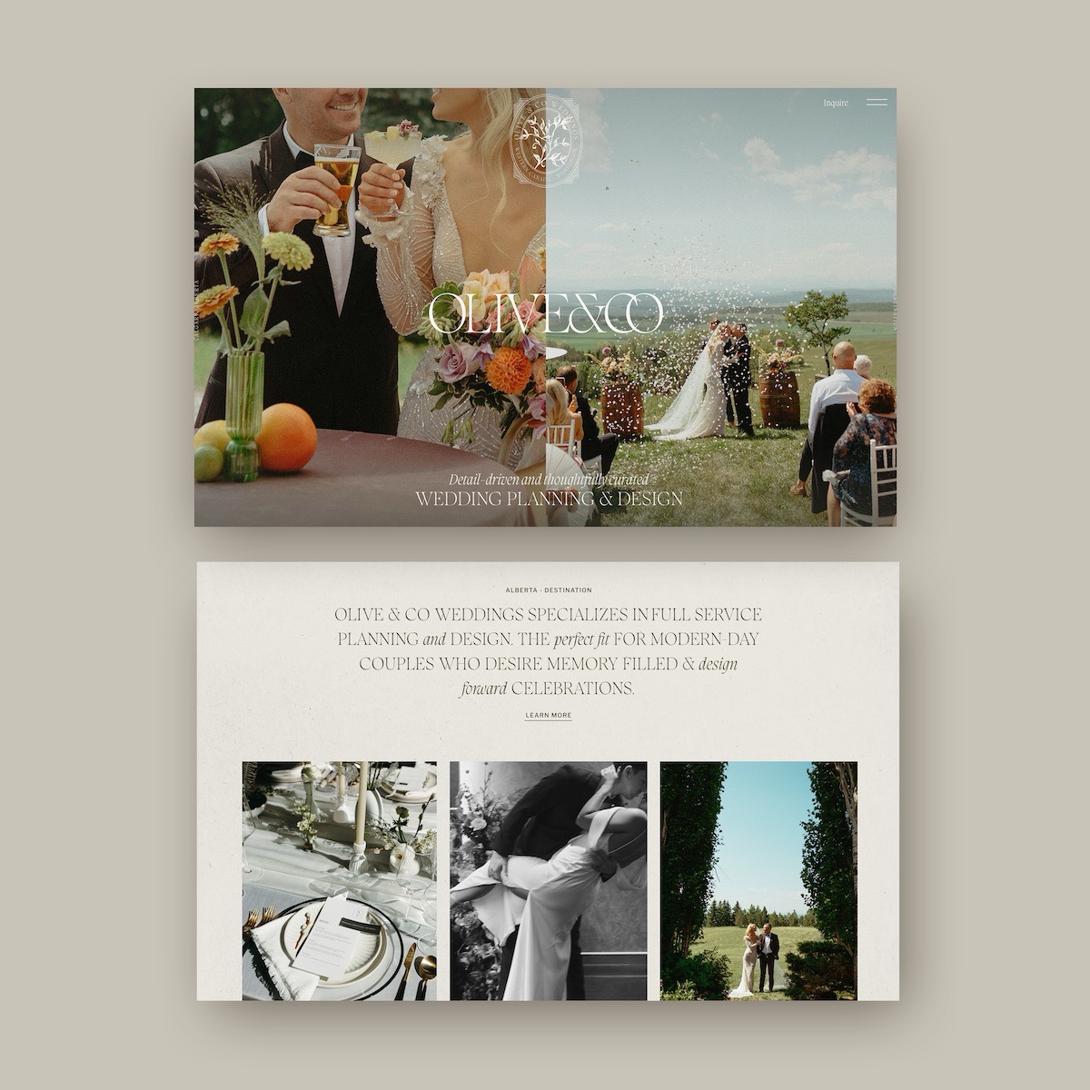 Editorial meets vintage – romantic brand design for Olive & Co, a wedding planner in Calgary.