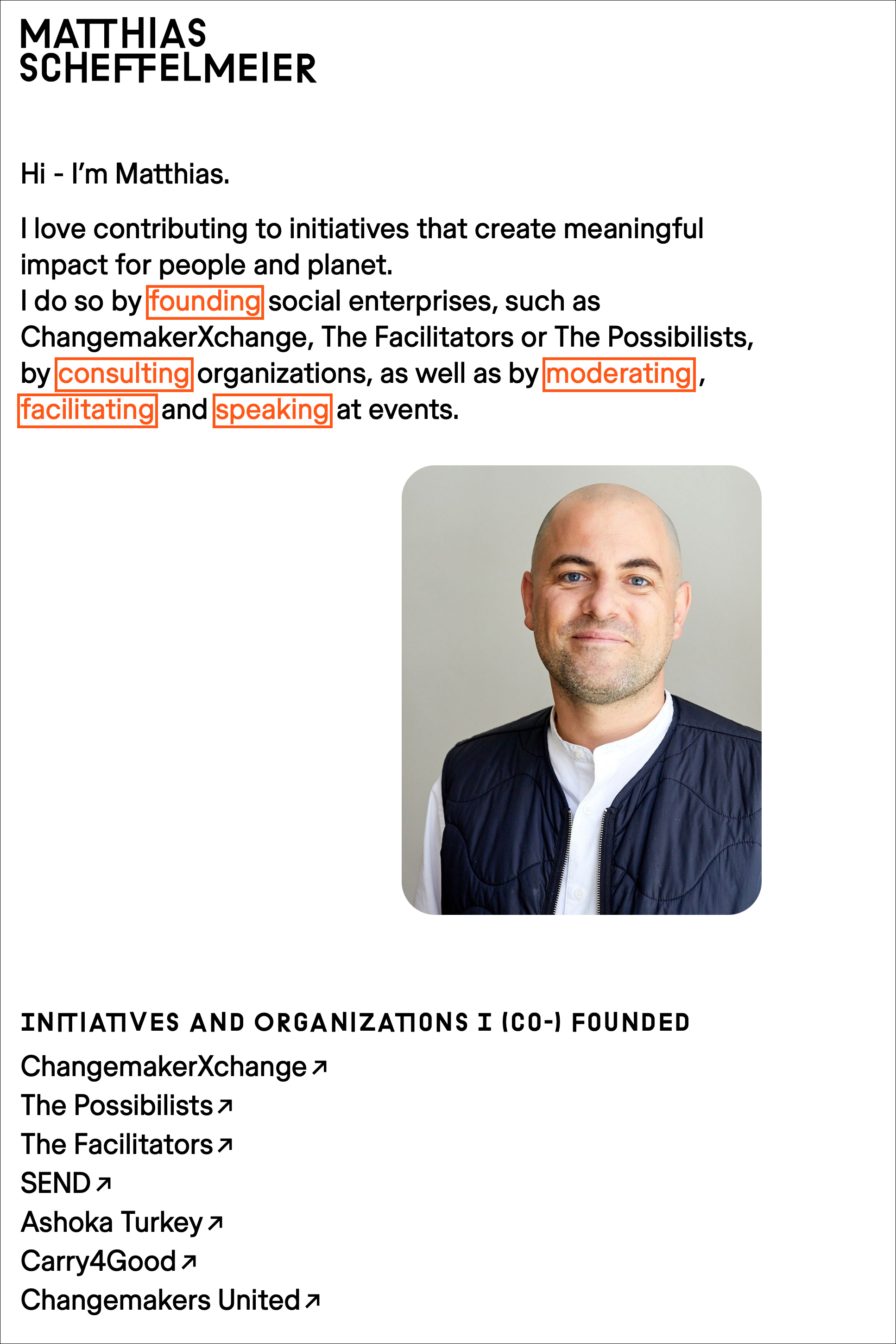 Rainbow Unicorn has designed the website for Matthias Scheffelmeier, a founder and facilitator committed to creating meaningful impact through social enterprise, consulting, and community-building initiatives. Scheffelmeier’s work spans founding organisations like ChangemakerXchange, The Facilitators, and The Possibilists, as well as supporting others through consulting and moderating impactful events.