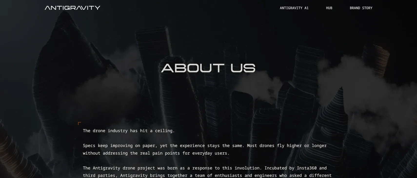 Antigravity employs the Yapari typeface across all primary branding materials, reflecting their emphasis on modern, approachable design and bold impression as Yapari’s creator describes the font—a characteristic that aligns with Antigravity’s mission to challenge industry conventions and break away from traditional drone limitations. The company frames their product around accessibility with the philosophy: “What if drones felt like an extension of ourselves?” The A1 represents a user-centric approach in an industry traditionally focused on technical specifications over practical experience improvements.