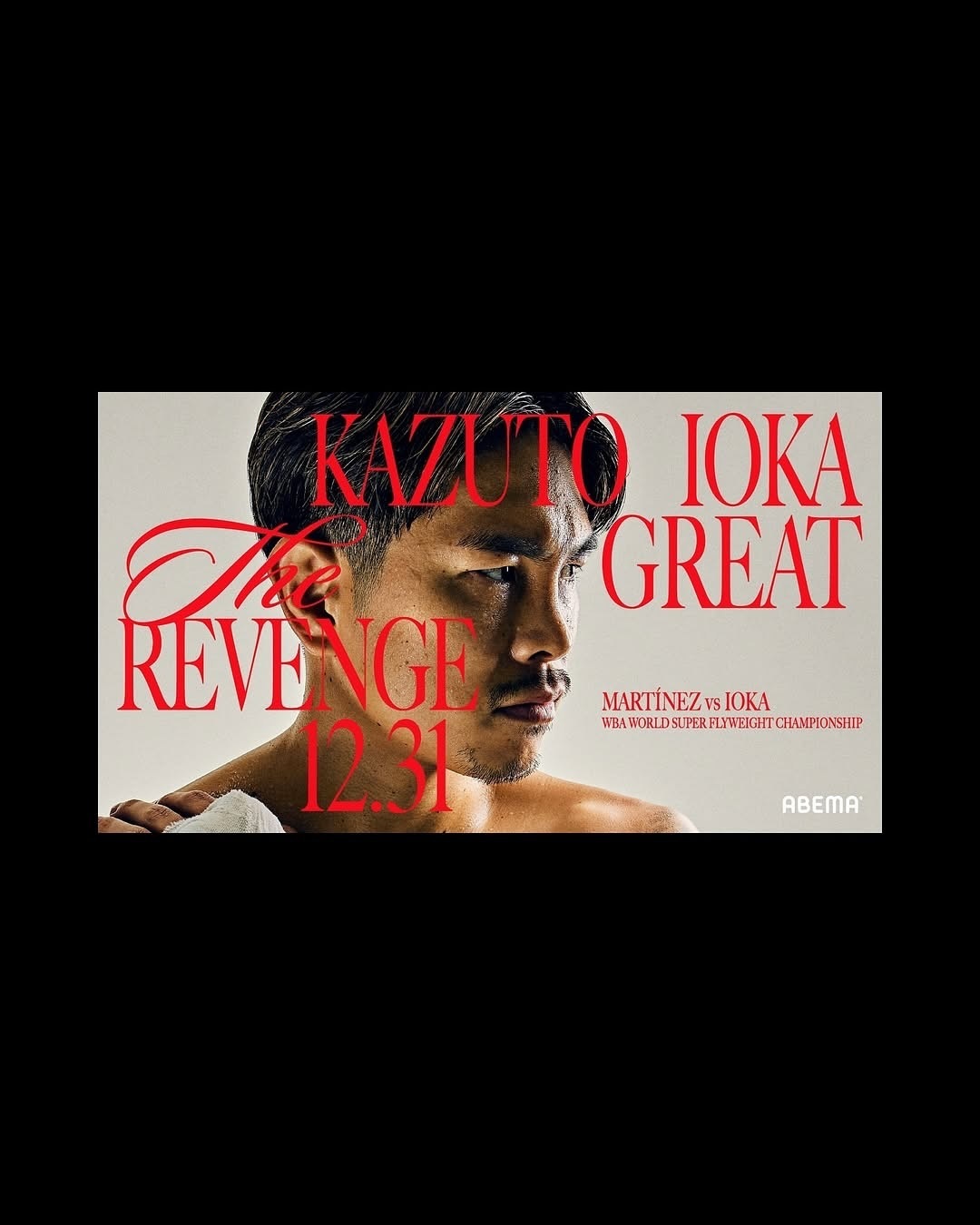 We created the key visual and poster design for ABEMA, the major Japanese streaming platform that broadcasted this event. The campaign title, “The Great Revenge,” captured the intensity and anticipation surrounding the showdown between these two world-class fighters.