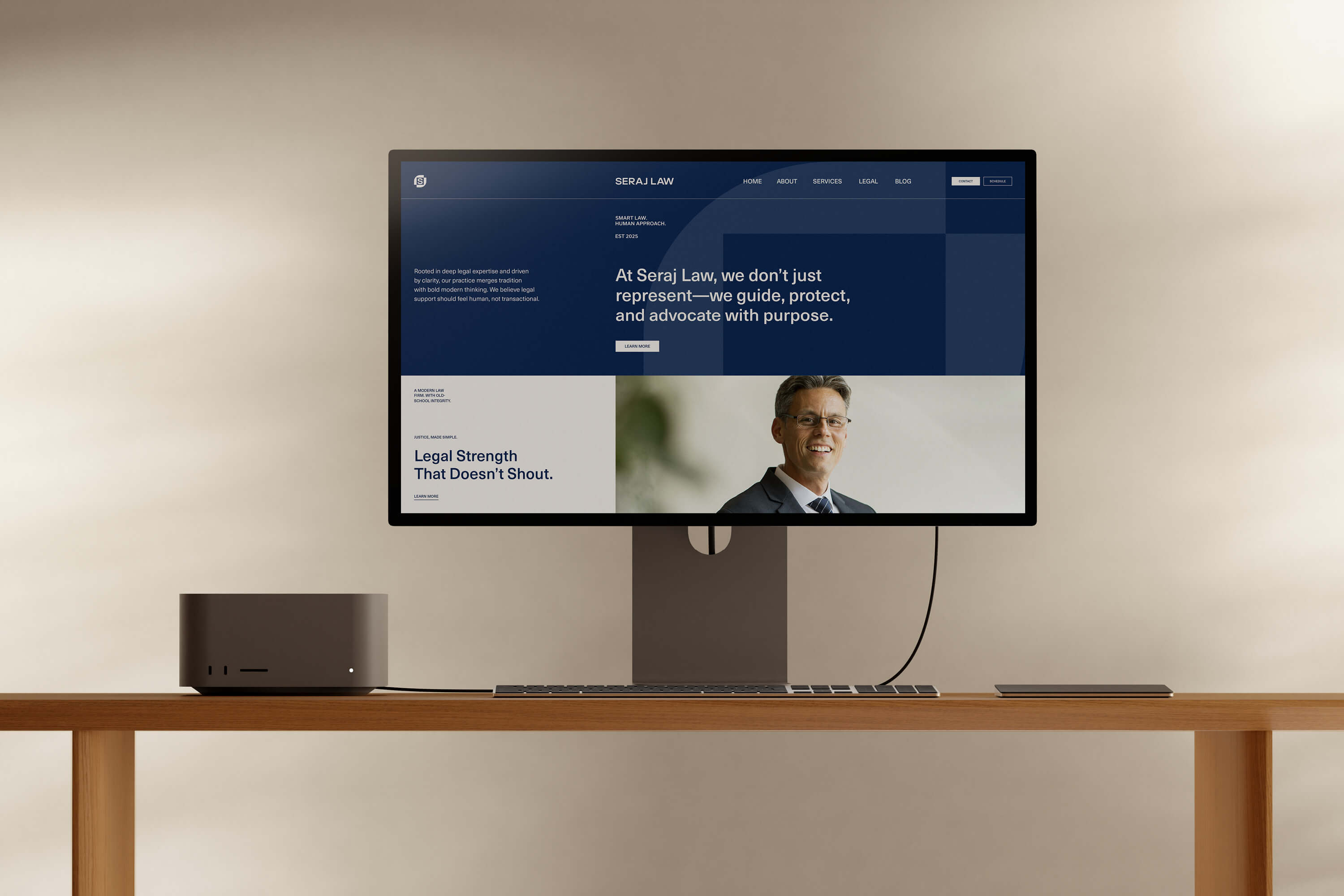 From the typography to visual identity, we shaped every detail to feel composed, approachable, and quietly powerful. The identity is clean without feeling cold, and confident without trying too hard. It reflects the heart of Seraj Law: a modern firm rooted in principle, built to guide, protect, and advocate with purpose. What started as a vision is now a brand that leads with clarity and feels unmistakably human.