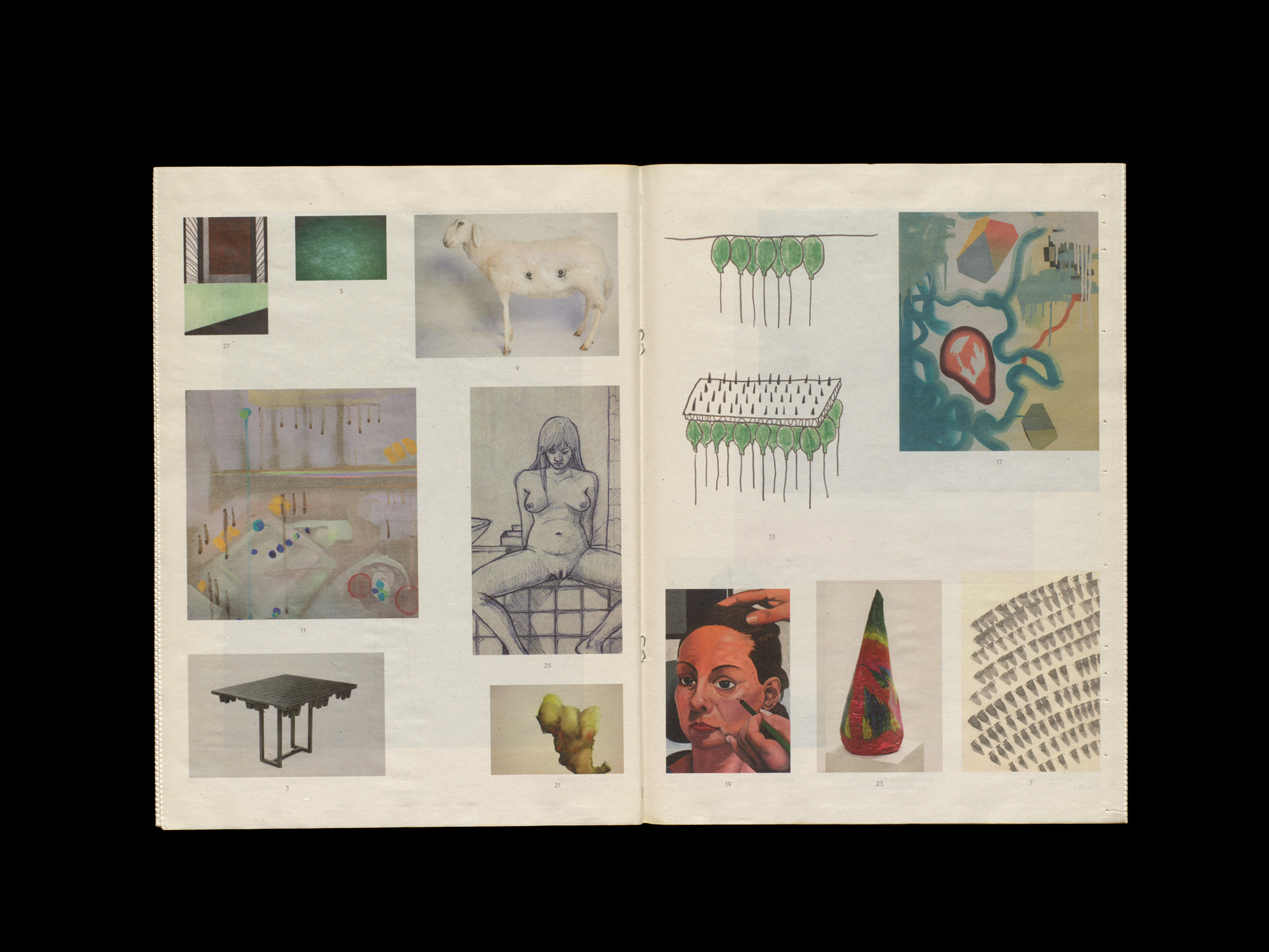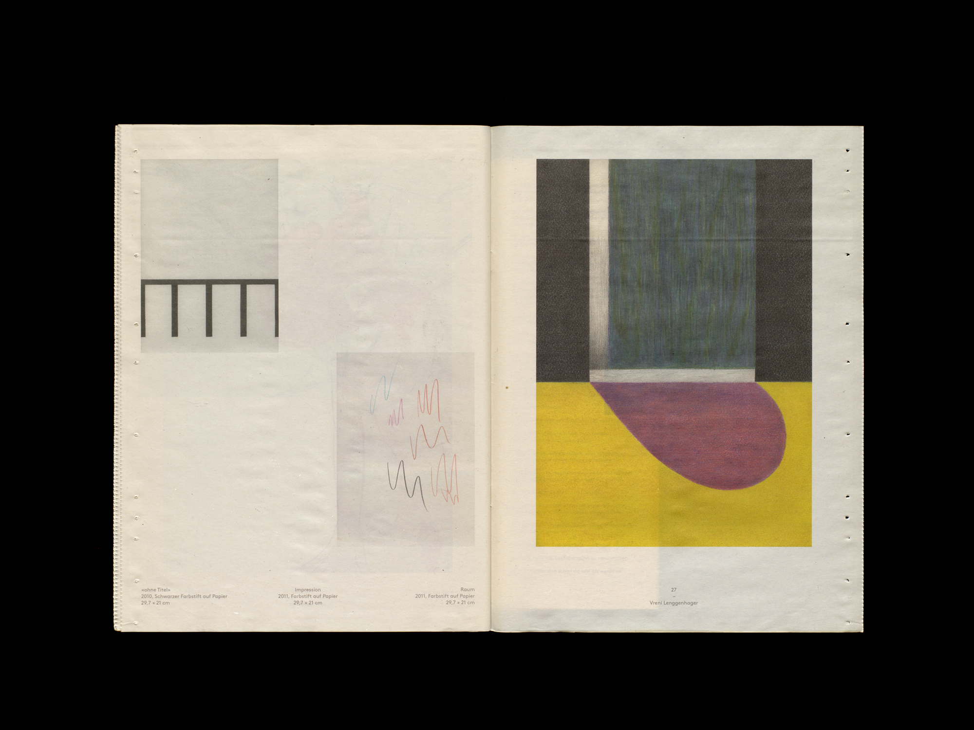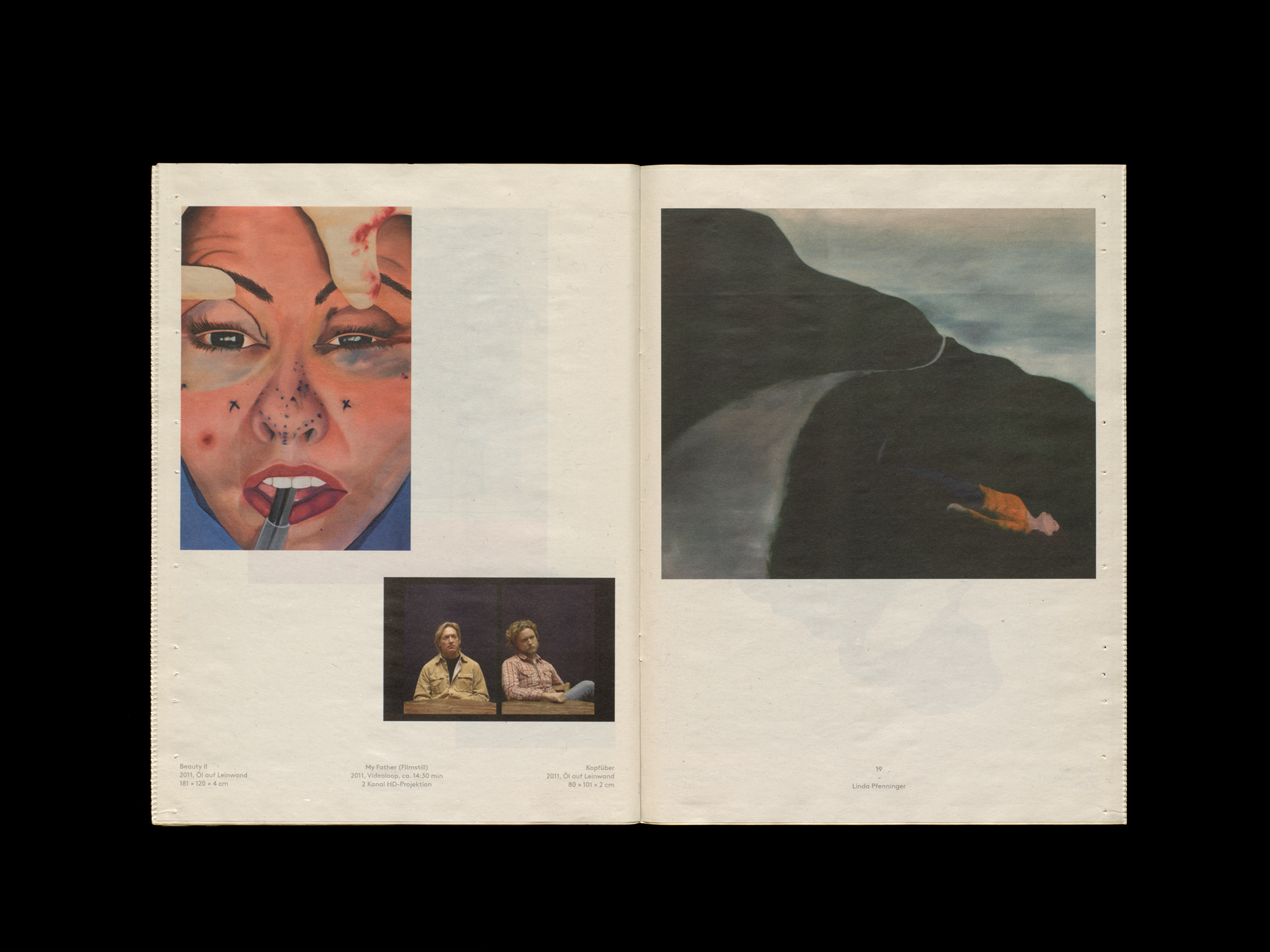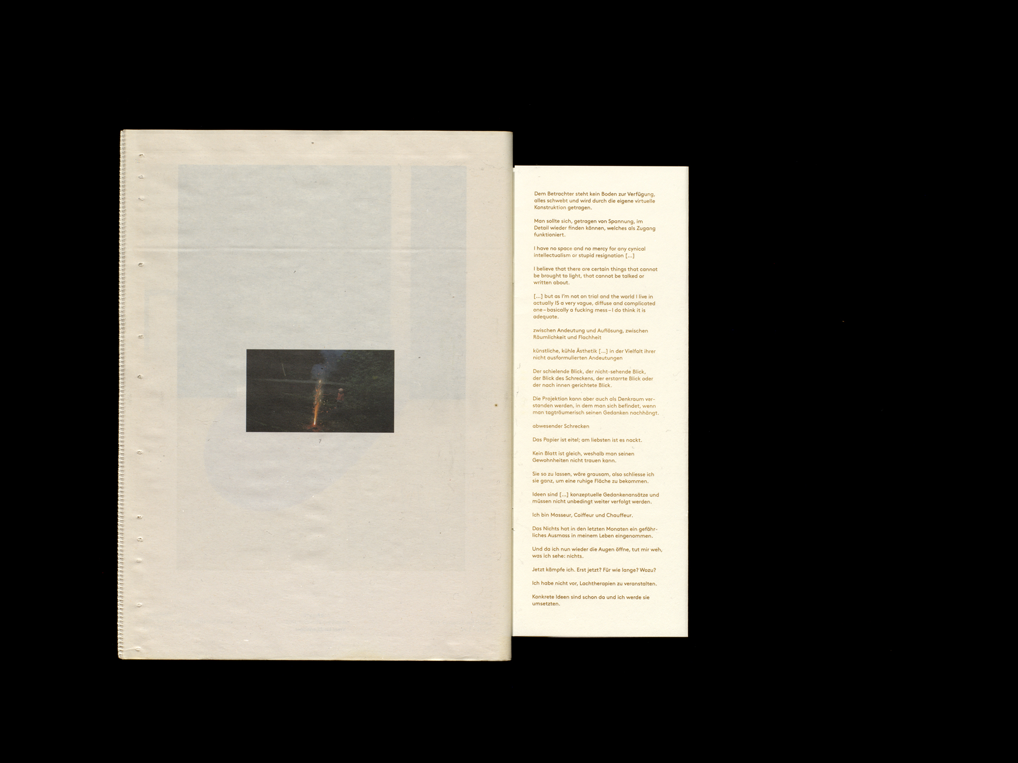 The cover, printed in gold on off-white paper, features text fragments by the graduating students – some from their first semester, others from their final one. These quotes vividly reflect the artistic development of the emerging artists.