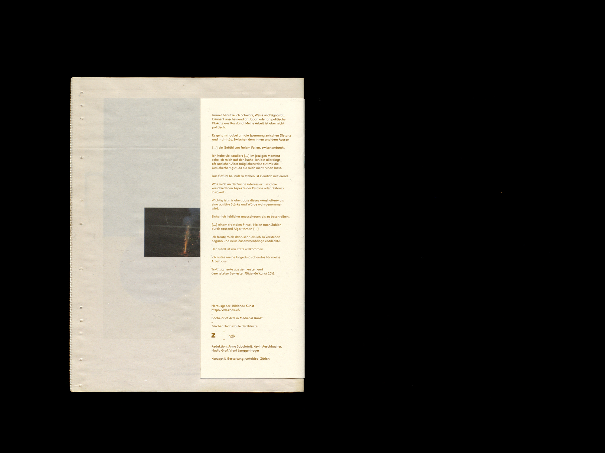 The 2012 graduation publication of the Bachelor of Fine Arts programme at the Zurich University of the Arts (ZHdK) takes the form of a small-format newspaper featuring a selection of works created during the course of study.
