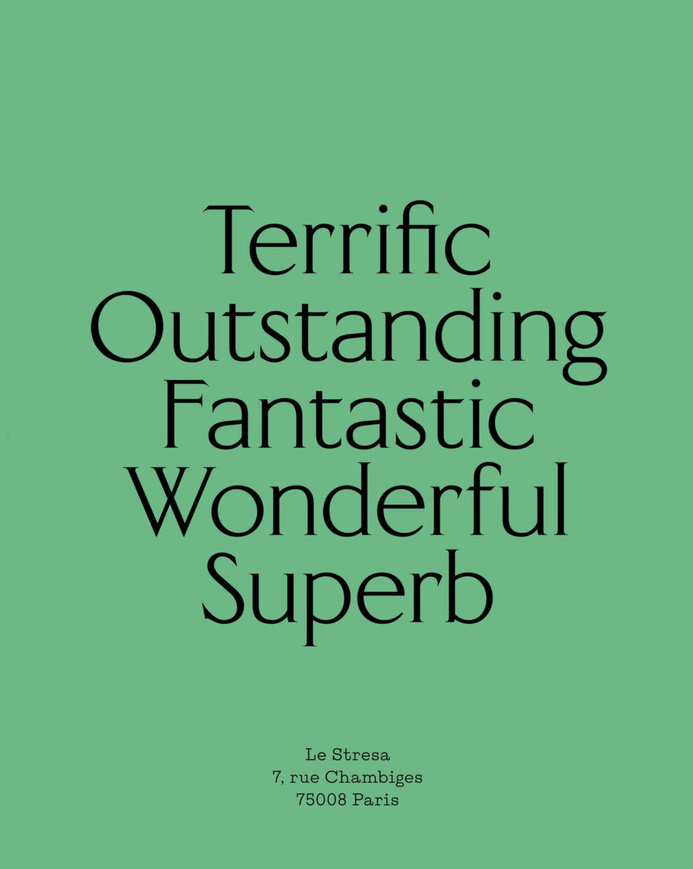 Le Stresa booklet and postcards Contributed by ABC-ETC.COM on Sep 17th, 2025. Artwork published in August 2025. Photo: ABC-ETC.COM. License: All Rights Reserved. A pocket-size publication designed by Claire Huss for Le Stresa, an Italian restaurant in Paris, showing a selection of messages carefully chosen from the restaurant’s guestbook between 1989 and 1996. Source: www.instagram.com License: All Rights Reserved. Photo: ABC-ETC.COM. License: All Rights Reserved. Source: www.instagram.com License: All Rights Reserved. Photo: ABC-ETC.COM. License: All Rights Reserved. Source: www.instagram.com License: All Rights Reserved. Source: www.instagram.com License: All Rights Reserved. Source: www.instagram.com License: All Rights Reserved. Typefaces More about Edificio EtcGet Edificio EtcMore about Adriano EtcGet Adriano Etc Formats Booklets/Pamphlets (2377) Ephemera (1202) Topics Food/Beverage (3037) Designers/Agencies Claire Huss (3) Tagged withenvelopes (254)postcards (177)booklets (555)restaurants (481)Italian food (111)multilingual (2581)English (language) (2397)French (language) (2494)quotes (525)guestbooks (1)straight apostrophe (') (144)typeface combinations (3888) Artwork location France (2799) Paris (1300) In SetsDesigns by Women (Fonts In Use Staff) (3515)2+ typefaces by 1 designer (Florian Hardwig) (1097)serif (jo jaeyoung) (10)EDICION (Joel Mojica) (29)IDENTITY (Joel Mojica) (9) Post a comment Name Email – will not be published Website Your response Submit Comment More in Food/Beverage Serving New York2020Bryan FountainContributed by Bryan Fountain Papadou Smash Burger2023Bureau TUKContributed by Bureau TUK Staff Pick Yamoc. 2015M.I.L.K.Jürgen SchwarzContributed by TypeMates Sponsor More in Ephemera The Cooperage, AlbuquerqueunknownContributed by Kevin Glasgow Instituut voor de Nederlandse Taal2016Studio de RonnersContributed by Matthijs Sluiter Staff Pick The Madrona Hotelc. 2022Ateliers Saint-LazareMargot LévêqueContributed by Fanny Hamelin Staff Pick Retread Threads postcards2001Cole & WeberGreg WyattContributed by fangly More Fonts In Use Druckkunst 1919, Museum für Druckkunst Leipzig2019UngestaltContributed by Florian Hardwig Staff Pick Igor Shaferan – Everest album art1985Pavel ShegeryanContributed by Florian Hardwig Staff Pick Pete Fountain – High Society album art1972Sandy HoffmanContributed by Florian Hardwig Staff Pick Saraghina Caffè2022MuccaContributed by Sean O'Connor Staff Pick The Flanders Architectural Review N° 14, “When Attitudes Take Form”2020Ward HeirweghMarie SledsensContributed by Ward Heirwegh Staff Pick Air France poster: Caravelle & Boeing1961Roger ExcoffonContributed by Stephen Coles Staff Pick Essais & Documents series, Éditions Le Pommierc. 2009LunaparkBianca GumbrechtContributed by Florian Hardwig Staff Pick AIGA Design Conference 20162016Mother DesignContributed by Richard Baird Staff Pick