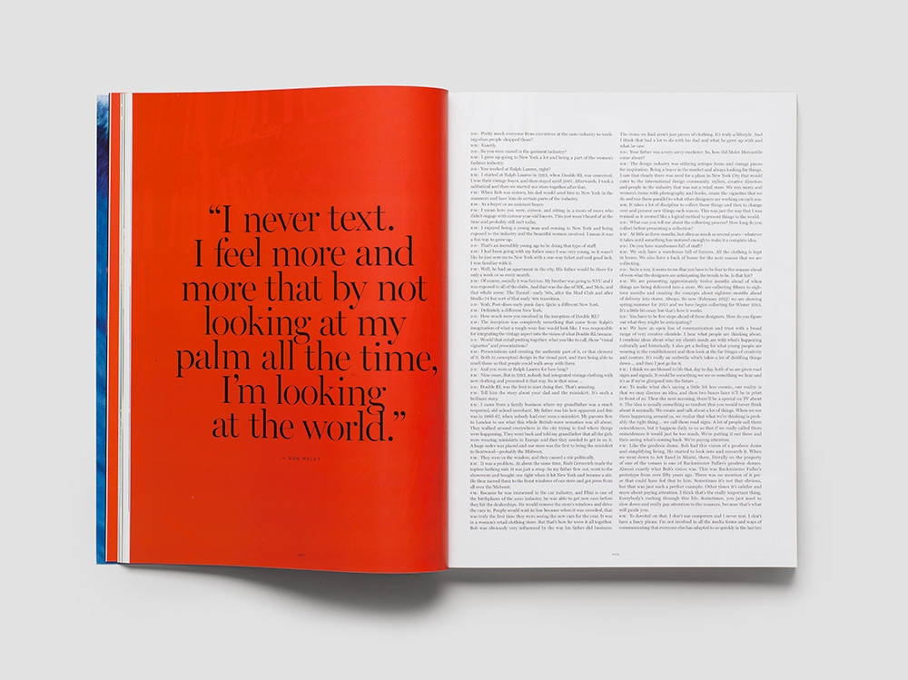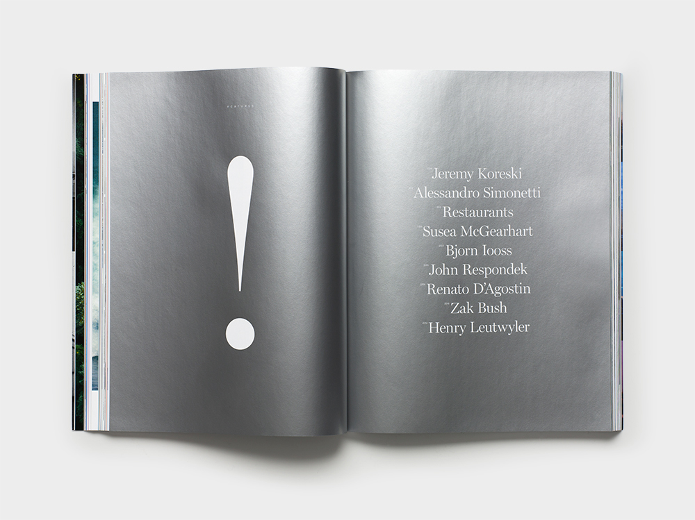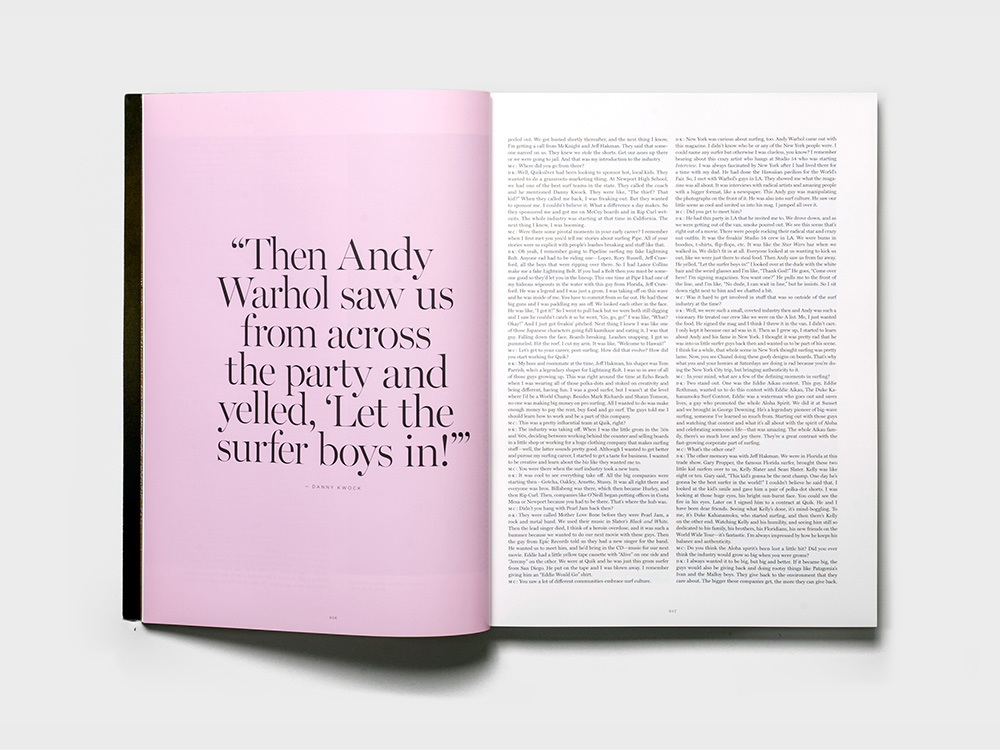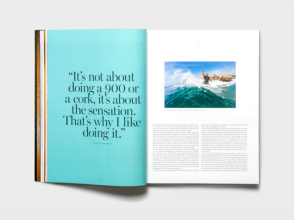 “Saturdays Surf NYC is a downtown Manhattan surf lifestyle brand. Since opening in 2009, Saturdays has cultivated an iconic mix of surf lifestyle, menswear, art, and coffee. Like the brand itself, the magazine explores the interplay between NYC lifestyle and surfing. This duality threads throughout the first and second issues—from the balanced blocks of color on the cover to the layout and editorial content: half interviews and half photographic essays.” — Jevas Lehn Studio