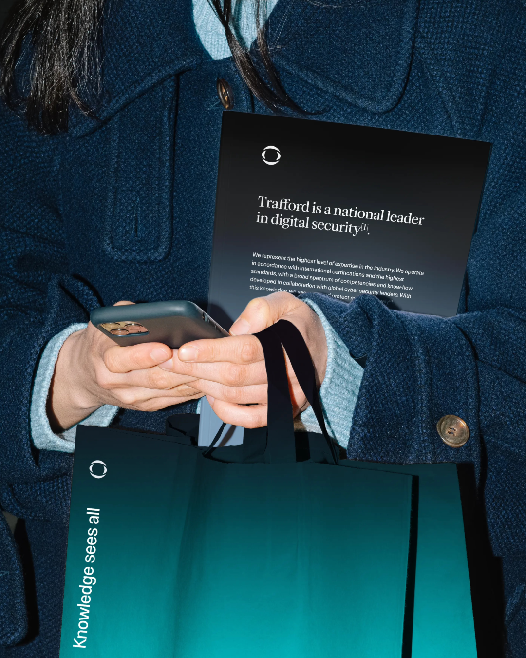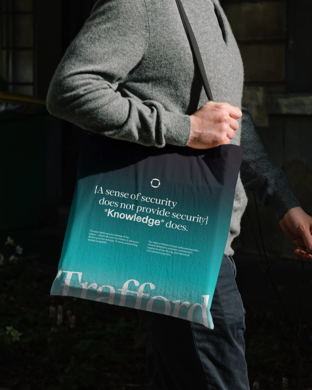 The overall aesthetic successfully balances the serious nature of cybersecurity with approachable design, avoiding the typical aggressive red-and-black clichés often associated with the industry. Instead, Trafford’s visual identity suggests precision, intelligence, and proactive protection—qualities that resonate with both business and administrative clients who need to understand that feeling safe and being safe are fundamentally different concepts. The design system’s flexibility allows for adaptation across various contexts while maintaining the brand’s core promise that knowledge, not mere perception, provides true security.