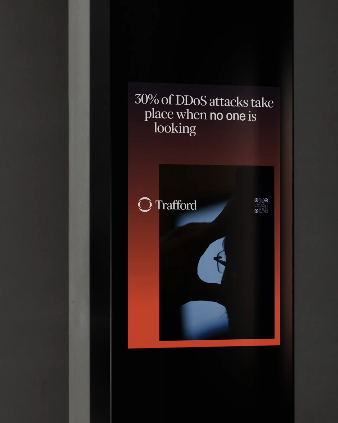 Typography remains clean and authoritative, supporting the brand’s positioning as Poland’s leading cybersecurity expert. The iconic eye symbol, integrated seamlessly with the Trafford wordmark, serves as both a literal representation of surveillance and a symbolic guardian watching over digital environments.