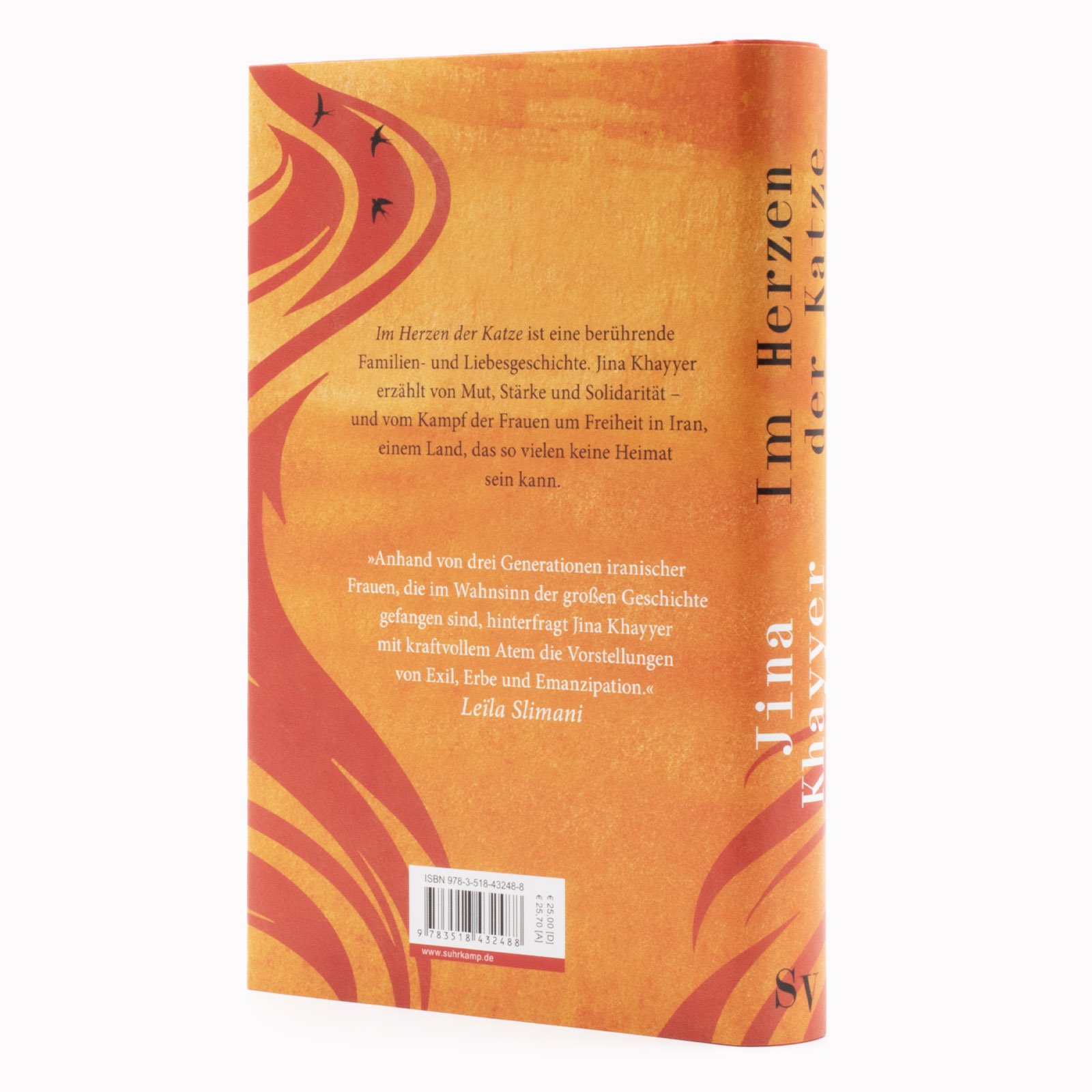 Im Herzen der Katze by Jina Khayyer is a German literary fiction novel published by Suhrkamp Verlag (Berlin). The cover design and illustration were created by Barbara Thoben of the Cologne-based studio Lübbeke Naumann Thoben, while the book’s typesetting was handled by Satz-Offizin Hümmer in Waldbüttelbrunn. The audiobook, published by Der Audio Verlag, is also available on CD, read by Pegah Ferydoni. The novel was nominated for the German Book Prize 2025.