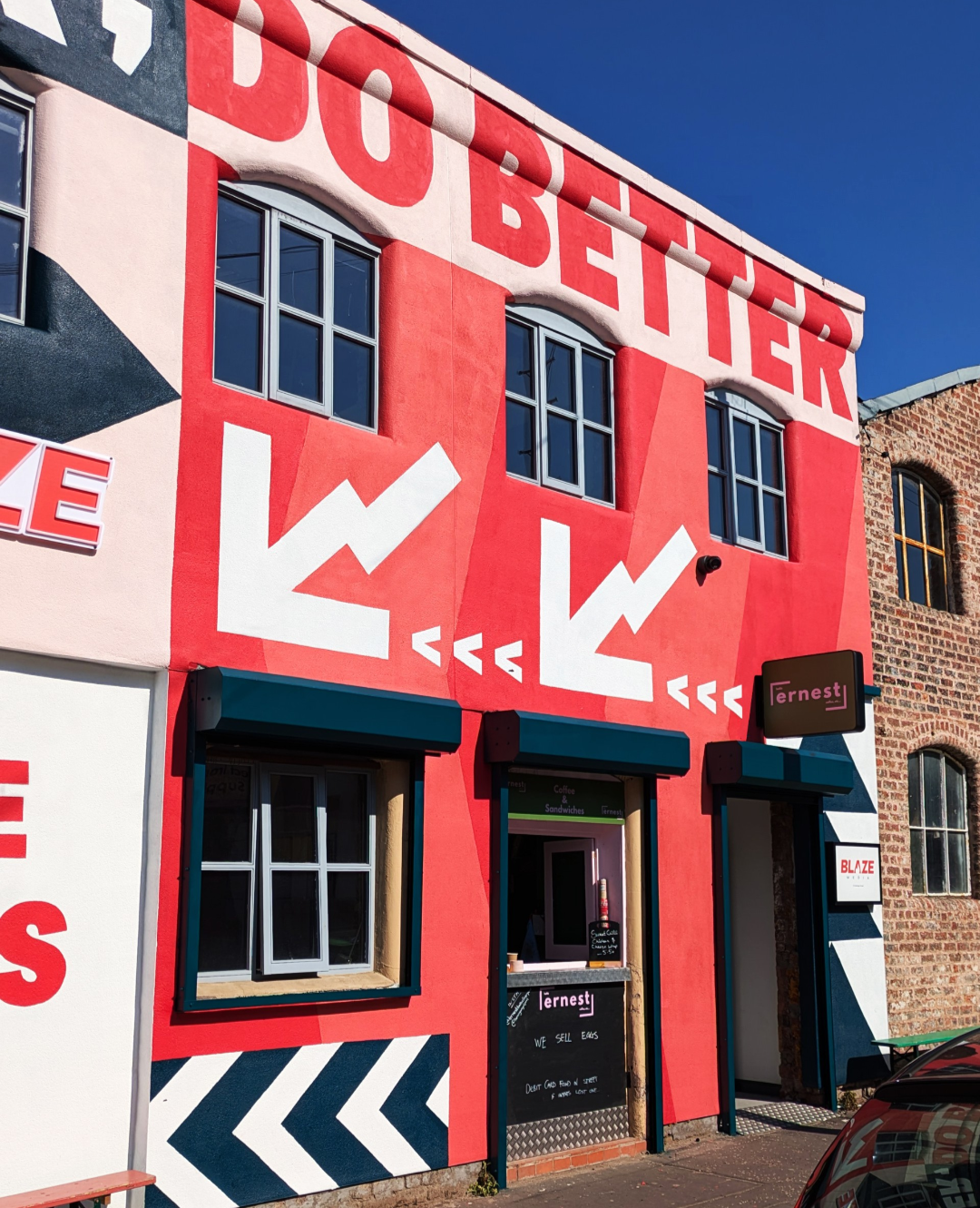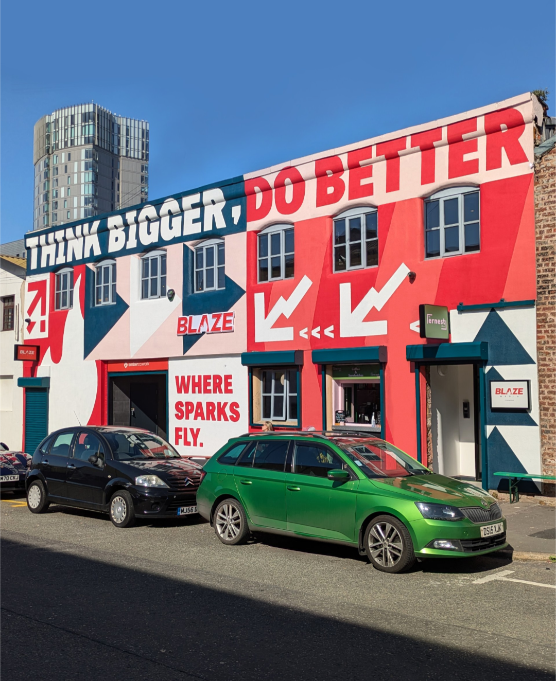 Blaze Media mural Contributed by Andrew Wolfenden on Sep 24th, 2025. Artwork published in circa March 2025. Source: www.andrewwolfenden.co.uk Andrew Wolfenden. License: All Rights Reserved. Large exterior mural for Blaze Media, designed and painted by Andrew Wolfenden in Liverpool using Tablet Gothic Narrow. Source: www.andrewwolfenden.co.uk Andrew Wolfenden. License: All Rights Reserved. Source: www.andrewwolfenden.co.uk Andrew Wolfenden. License: All Rights Reserved. Source: www.andrewwolfenden.co.uk Andrew Wolfenden. License: All Rights Reserved. Typefaces More about Tablet GothicGet Tablet Gothic Formats Advertising (2074) Signs (2113) Topics Art (4565) Industrial Design (572) Designers/Agencies Andrew Wolfenden (10) Tagged withmurals (39)marketing (26)public art / street art (120)XXL type (127)lettering derived from typeface (727)painted (99)red and blue (353)all caps (7395)arrows (739)fire (82)type on walls (609)murals (39)supergraphics (18) Artwork location United Kingdom (3230) Liverpool (20) Post a comment Name Email – will not be published Website Your response Submit Comment More Tablet Gothic in use Informe Cotec2017Pablo RuizR2 Media FactoryContributed by TypeTogether The Bucks Herald2012Cases i AssociatsContributed by TypeTogether ZEITmagazin Online2014EdenspiekermannContributed by Florian Hardwig Sponsor More in Industrial Design Yamaha SDS 100 series guitar effect pedals1988Contributed by Garrison Martin Staff Pick OEO Studio2016Jonas Heckshere-TypesContributed by e-Types Martin Birrer Design2015Malvina LubecNora HeebContributed by Malvina Lubec Willy Guhl. Thinking with Your Hands2023Teo SchifferliContributed by Robert Huber Staff Pick More in Signs Bump Caves bar and distillery2014Contributed by Gareth Hague Reisebüro on Mehringdamm, BerlinContributed by CJ Dunn Chicago park signsContributed by Indra Kupferschmid Sladunitsa confectionery factory2012Alex MatveevContributed by Andrij Shevchenko More Fonts In Use The Moody Blues – “I’m Just a Singer (in a Rock and Roll Band)” German single cover1973unknownPhoto(s) by Buro Destruct on Flickr. Staff Pick Inspiration Information by Raissa Pardinic. 2022Raissa PardiniContributed by Michele Galluzzo Staff Pick Atari Touch Me poster1974unknownContributed by Robert Beatty Staff Pick Seattle Met Covers, 2011–20122011André MoraContributed by Stephen Coles Staff Pick