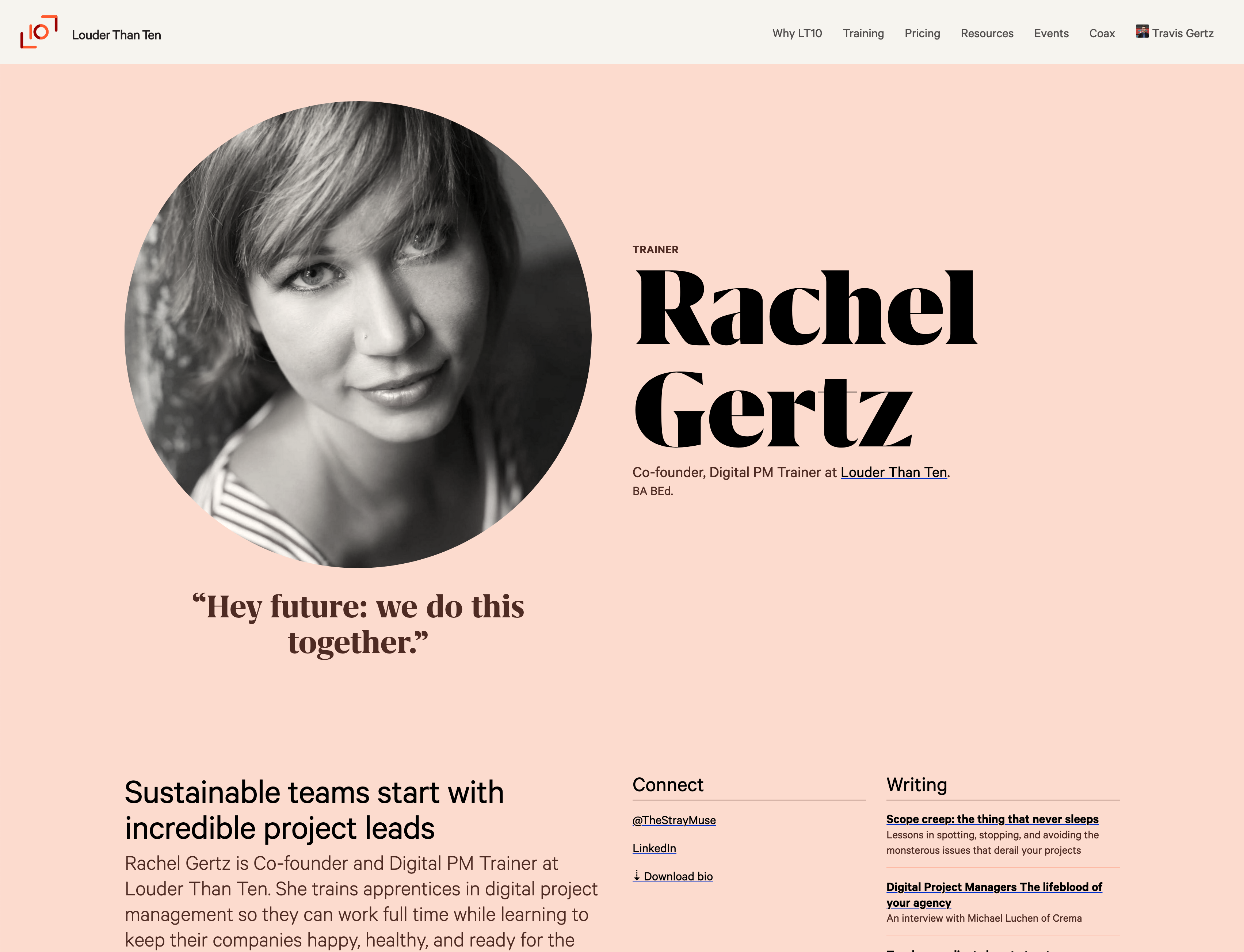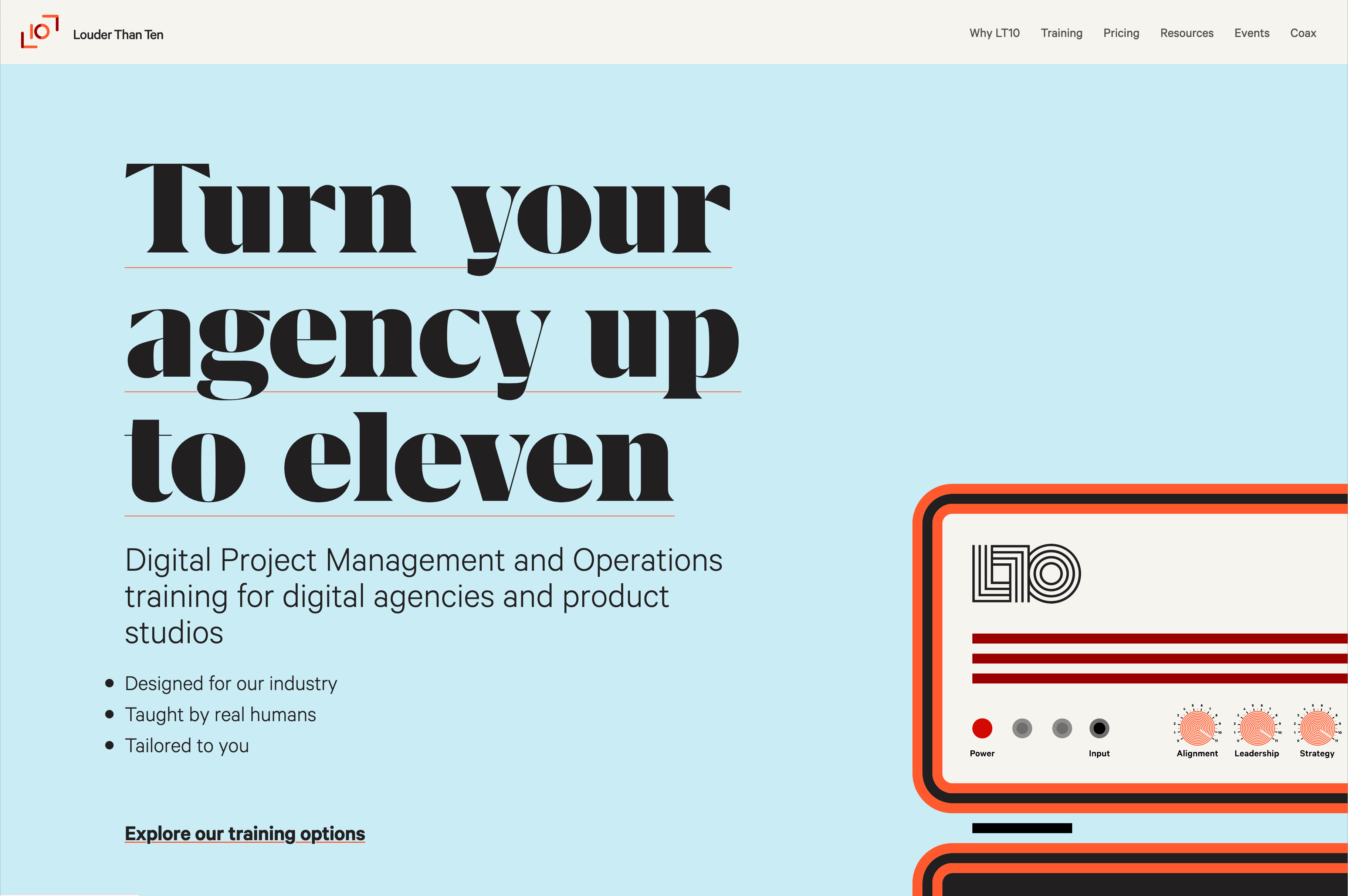 Louder Than Ten Contributed by Travis Gertz on Jul 20th, 2014. Source: louderthanten.com Louder Than Ten. License: All Rights Reserved. Louder Than Ten home page Louder Than Ten is a Digital Project Management and Operations training school for digital agencies and product studios. We Source: louderthanten.com Louder Than Ten. License: All Rights Reserved. Custom training page on website Source: louderthanten.com Louder Than Ten. License: All Rights Reserved. Program info booklet Source: louderthanten.com Louder Than Ten. License: All Rights Reserved. Burn those red flags down book Source: louderthanten.com Louder Than Ten. License: All Rights Reserved. Program info book Source: louderthanten.com Louder Than Ten. License: All Rights Reserved. User profile Typefaces More about CalibreGet CalibreMore about GrifoGet GrifoMore about CallunaGet Calluna Formats Web (5633) Branding/Identity (8468) Topics Event (3223) Graphic Design (3012) Education/Academia (2185) Designers/Agencies Travis Gertz (1) Rachel Gertz (1) Louder Than Ten (1) Jonathan Wood (1) Tagged withillustration (1587)websites (3576)project management (2)education (94)Modernist (92) Artwork location Canada (814) Vancouver (70) In SetsECO DE TIERRA (majo barajas) (27)Webtype (Webtype) (241) 3 Comments on “Louder Than Ten” Ryan says: Nov 13th, 2014 4:47 pm Can’t find Calibre as a licensed webfont. Anyone know who’s providing that? Florian Hardwig says: Nov 13th, 2014 8:39 pm Webfonts can be licensed directly from Klim. Travis Gertz says: Mar 6th, 2015 5:05 pm @Ryan As Florian mentioned, these are licenced directly from Klim. :) Post a comment Name Email – will not be published Website Your response Submit Comment More Calibre in use Vangard.de2013Labor BContributed by Rosetta Snail World and Snail World 2 byAleia Murawski & Sam Copelandc. 2020Jennifer James WrightCitron StudioContributed by Antoine Pazat Kikini o te Rehutai2023Jordan FosterContributed by Jordan Foster Sponsor More in Event Power of Woman, Ukrainska Pravda2024Ukrainska PravdaContributed by Svitlana Tolmach (Rentafont) Galette Party2025C’est par làContributed by Jérémy Raucq Ich sitze da, als wäre ich nicht vorhanden, Festival Rümlingen 2021c. 2021Neeser & MüllerContributed by Nouvelle Noire Staff Pick ATypI 2013 – Point Counter Point, Amsterdam (NL), 9–13 October 20132013Contributed by Florian Hardwig More in Web Dress.Code.2019Cori CorinneContributed by Cori Corinne The 5th VH Award2022Ordinary PeopleContributed by Nguyen Gobber Asuntos Gráficos website2024Chensio StudioCarlos AsencioContributed by Carlos Asencio Stickannc. 2022OOOZContributed by Nikolas Type More Fonts In Use Flor de Santiago by Ruth Varela2017AlpacaLuciano PerondiContributed by CAST Staff Pick Club 57 at MoMA2017Damien SaatdjianMoMA Design StudioEva Bochem-ShurContributed by Damien Saatdjian Staff Pick Way Out West 2022 line-up announcements2021Leon&ChrisContributed by Gareth Hague Staff Pick À rebours — Joris-Karl Huysmans2019Sarah MartinonContributed by Plain Form Staff Pick