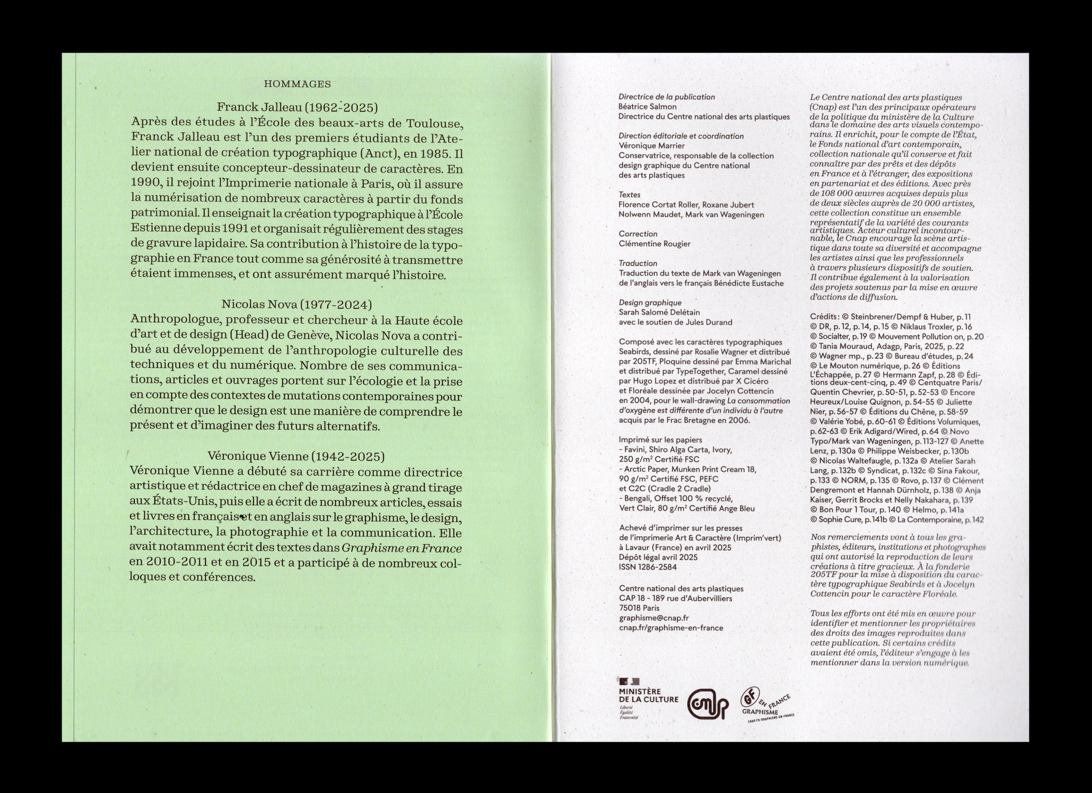 Published since 1994 by the Centre National des Arts Plastiques, Graphisme en France is a journal aimed at graphic designers, commissioners, and students. Printed in 10,000 copies by Art et Caractère in Lavaur (Tarn), it is distributed free of charge throughout the French cultural network and available on request at graphisme@cnap.fr.