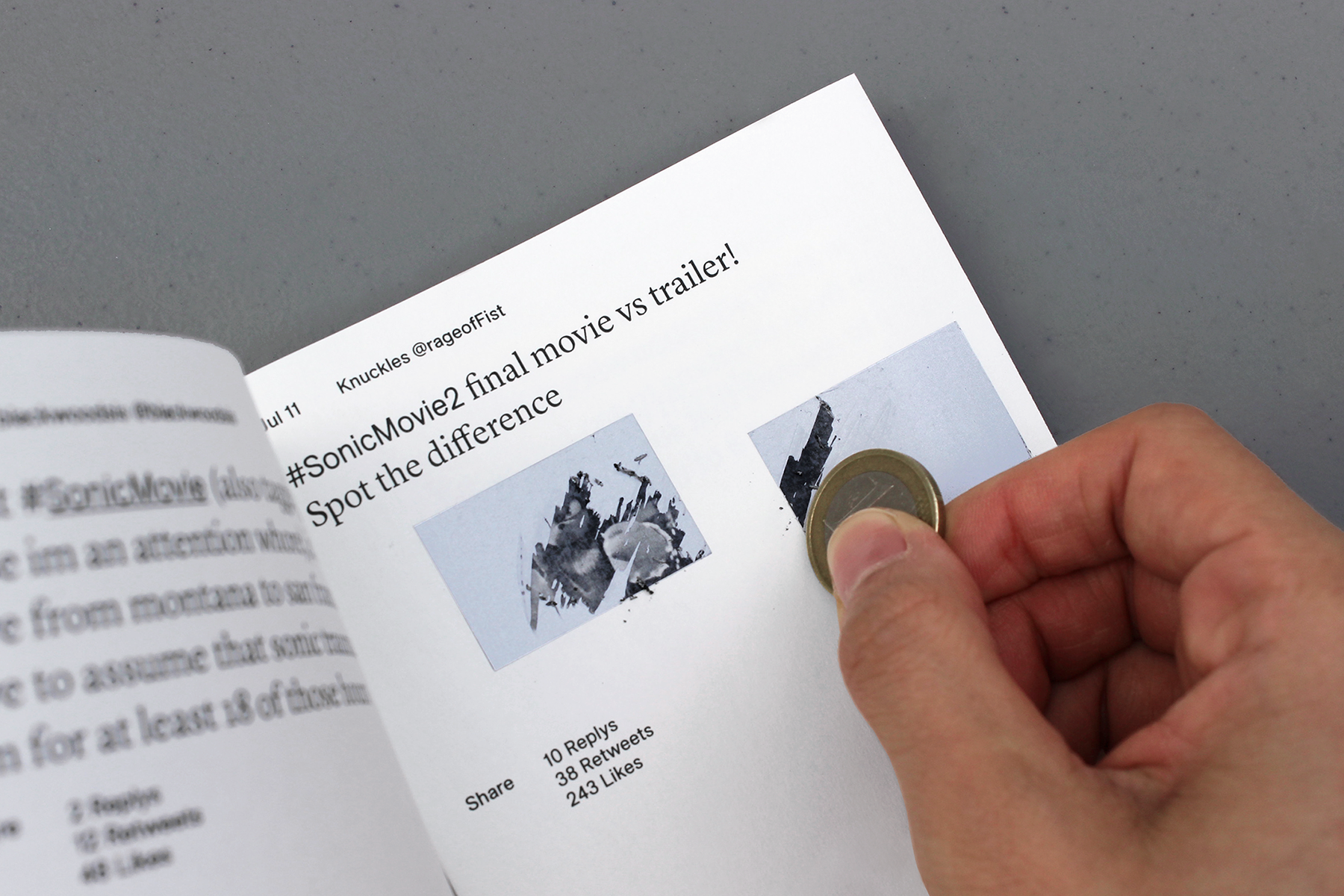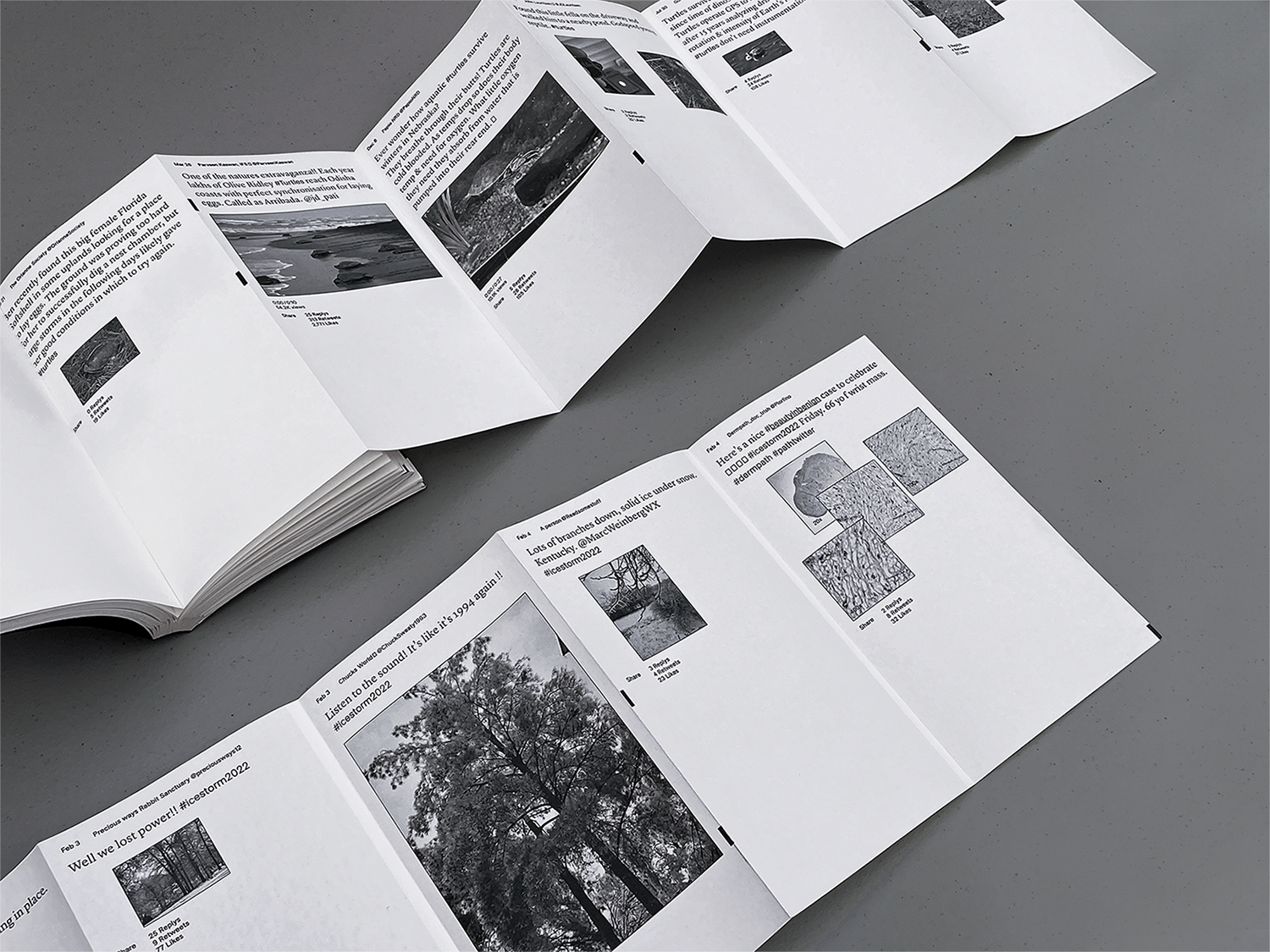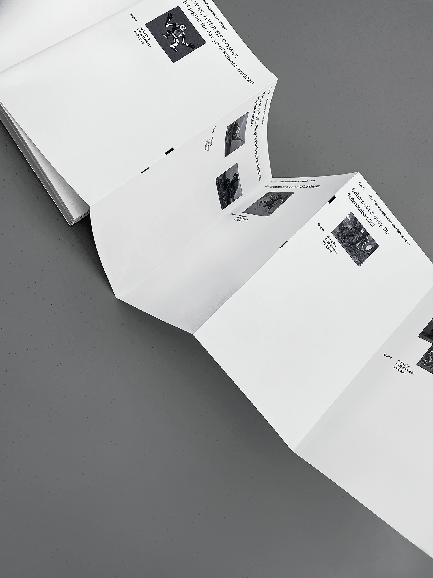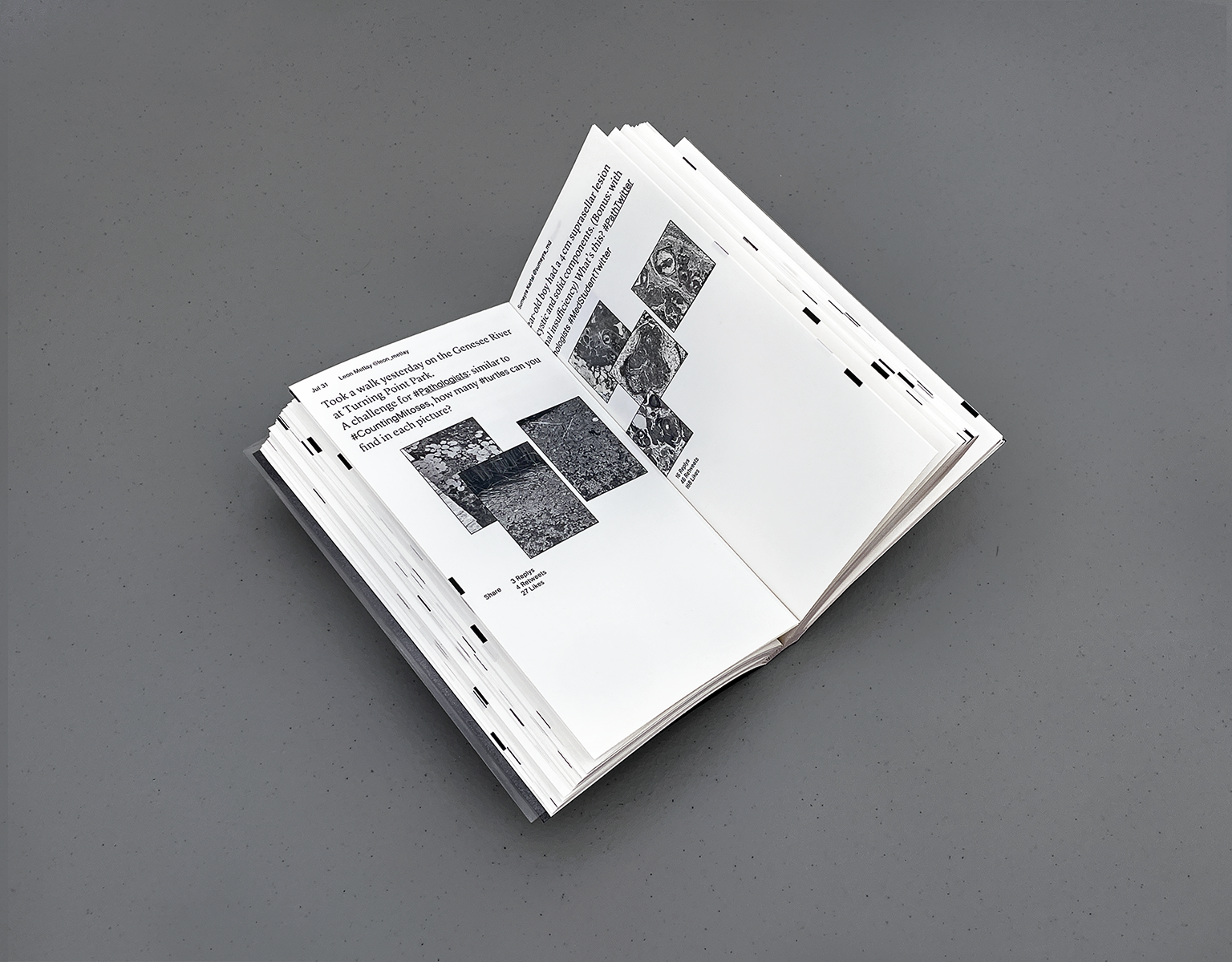 Delving into these issues, my thesis project Turning Clicks into Pages explores the relationship between analog and digital media in the contemporary landscape. The work deconstructs Twitter’s navigation system into tangible matter, proposing a hybrid experience between material and immaterial space-time. What happens when information that was never meant to become physical is saved as something permanent? Detached from its original context, does the reading experience remain the same?