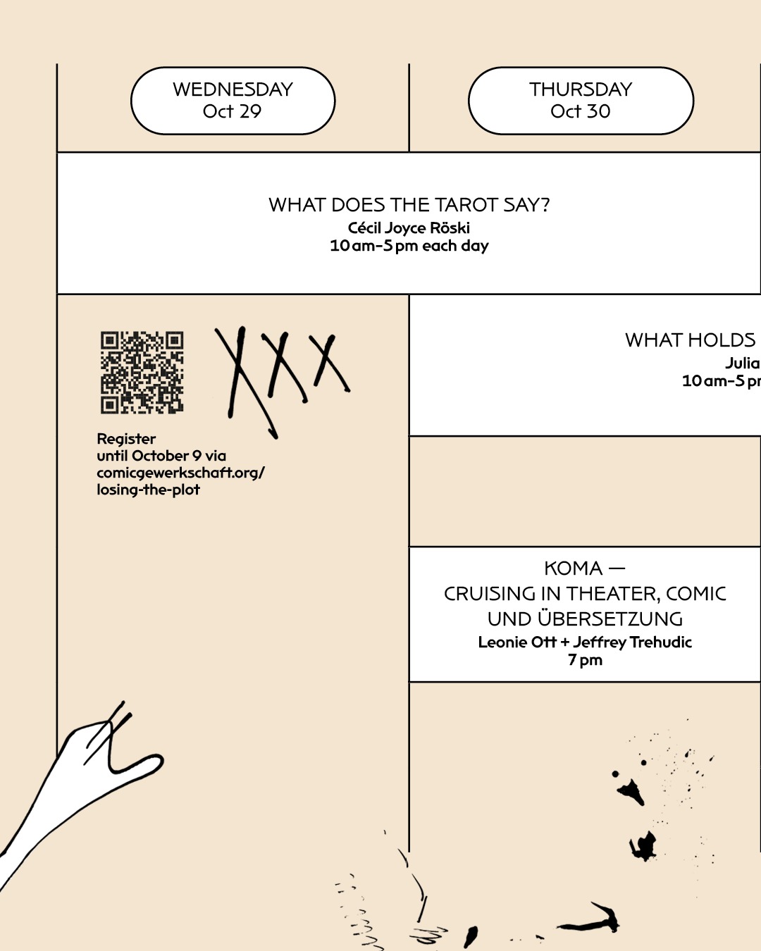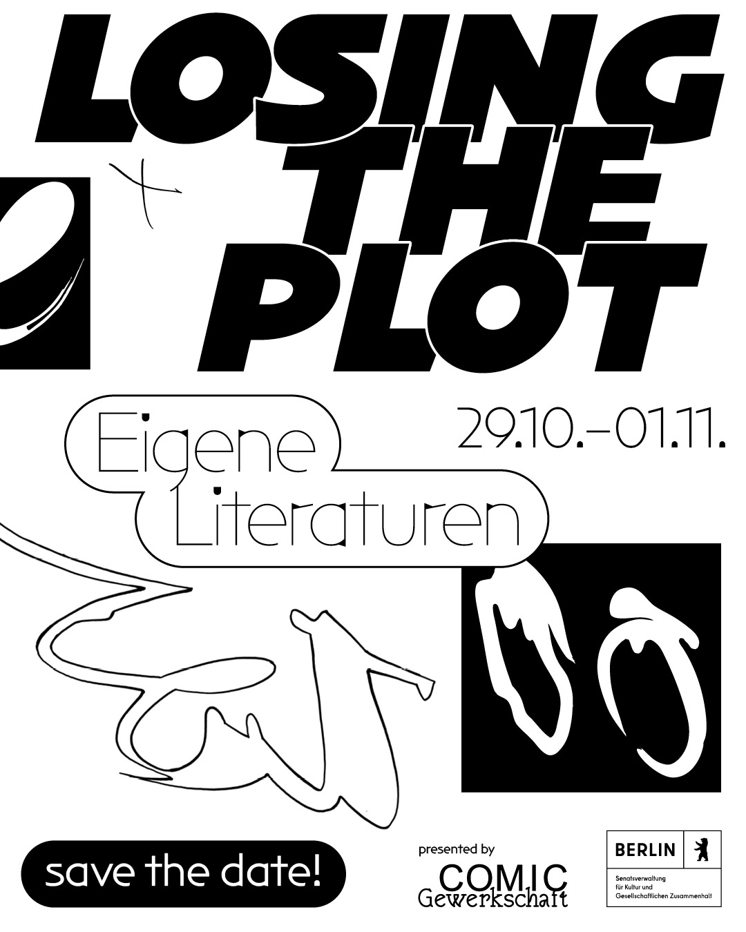 Berlin-based designer Stefanie Leinhos signs the identity of the 2025 edition of Losing the Plot, a festival organized by the the Comic Gewerkschaft, a union connecting comic book practitioners in Germany. The festival features round tables, talks, and workshops.