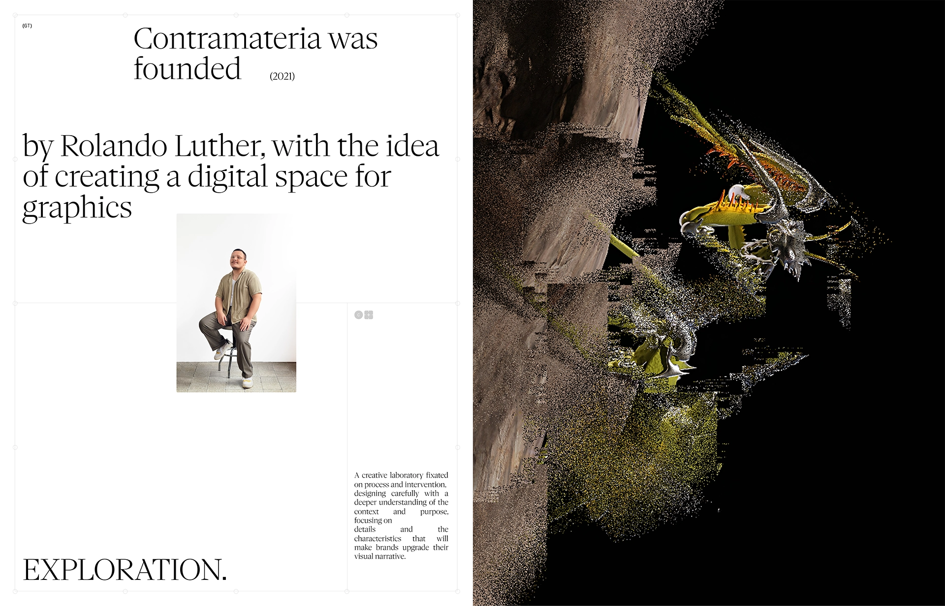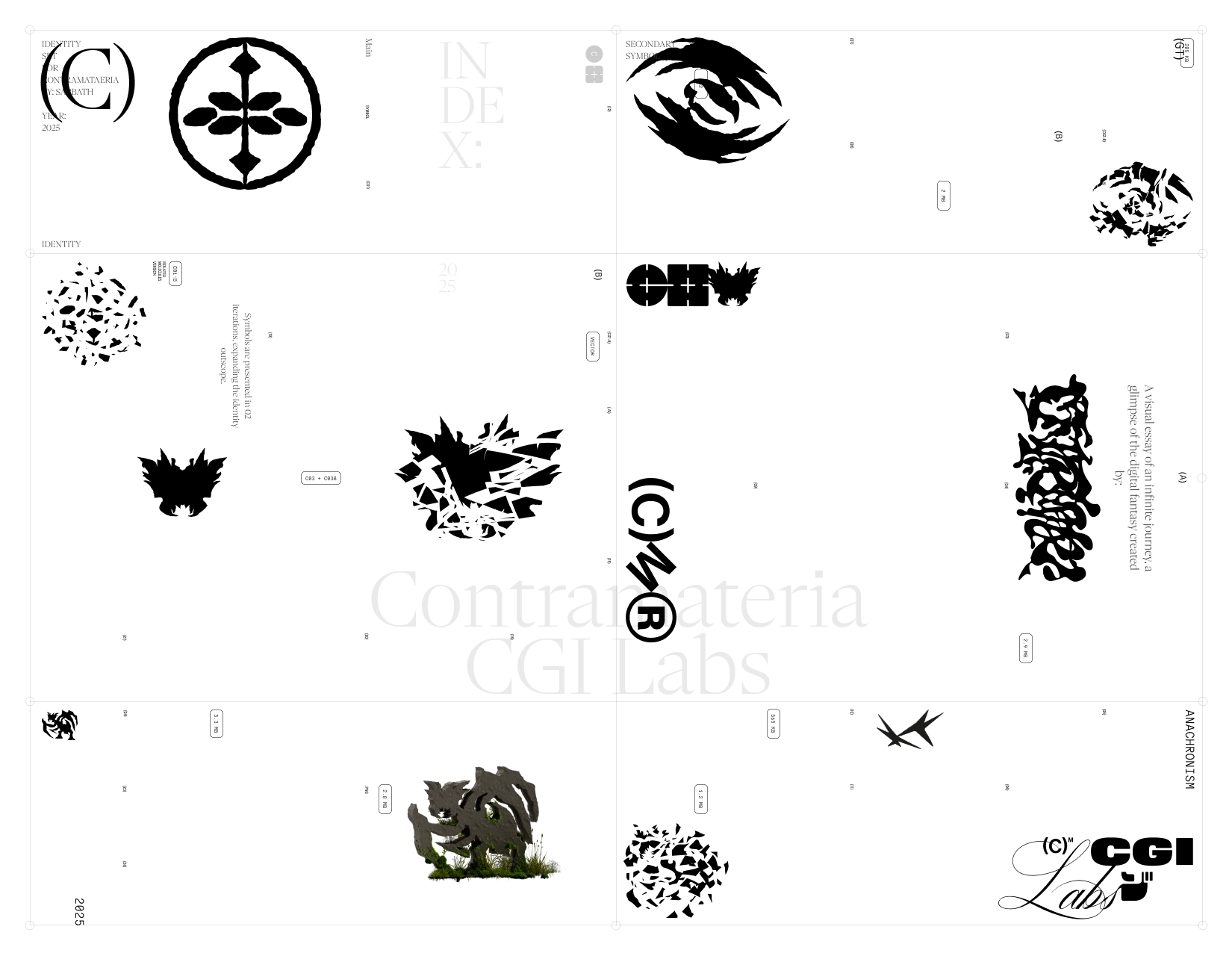 For the fourth anniversary of their CGI practice Contramateria, Rolando Luther hired Sabbath to create a new visual identity for the studio. The roll-out – mostly on Instagram – takes the shape of a series of 3D renders of imaginary objects featuring the identity, as a kind of mise en abyme where the communication about the identity and the identity itself are indistinguishable. Funnily enough, no clear logo can be distinguished.