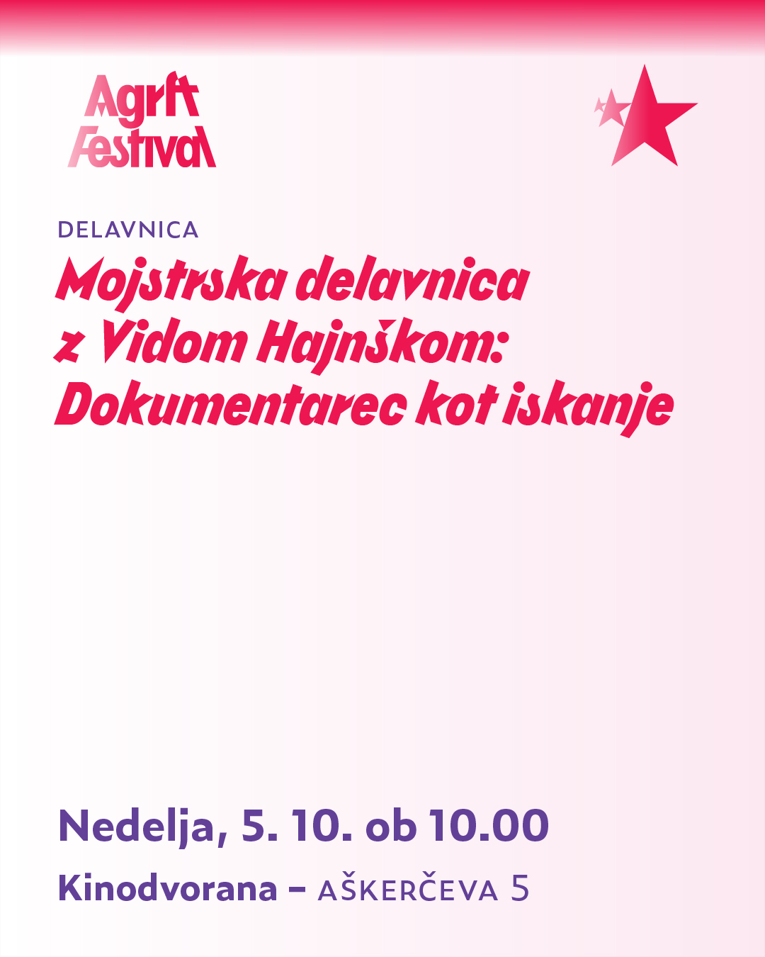 The festival’s visual identity was created by designer Črt Mate. The signature typeface, Wesna by Type Salon, draws inspiration from Slovenian posters of the interwar period, with a distinctive italic style that captures attention. The body text is set in Zeitung, designed by Underware.