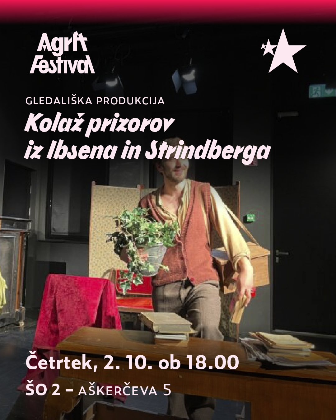 The festival is an opportunity for newly enrolled students, the broader university academic community, and the interested public – those who want to see what is bubbling and forming in future co-creators of Slovenian theater, film, television and radio arts – while also offering reflection on today’s world, society and humanity.