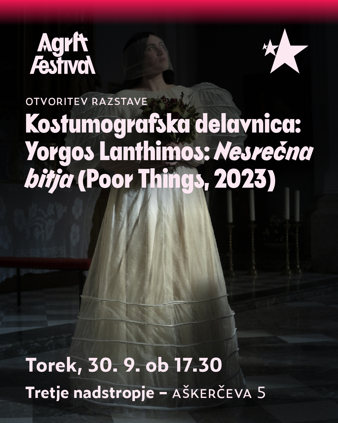 The University of Ljubljana’s Academy of Theatre, Radio, Film and Television (AGRFT) organized a festival in the first week of October. Students of acting, theater and radio directing, film and television directing, editing, photography, dramaturgy and stage arts present themselves with numerous theater productions, fiction and documentary films, television dramas, performances, radio plays, works created in courses in dance composition, theater singing, and presentations of publications.