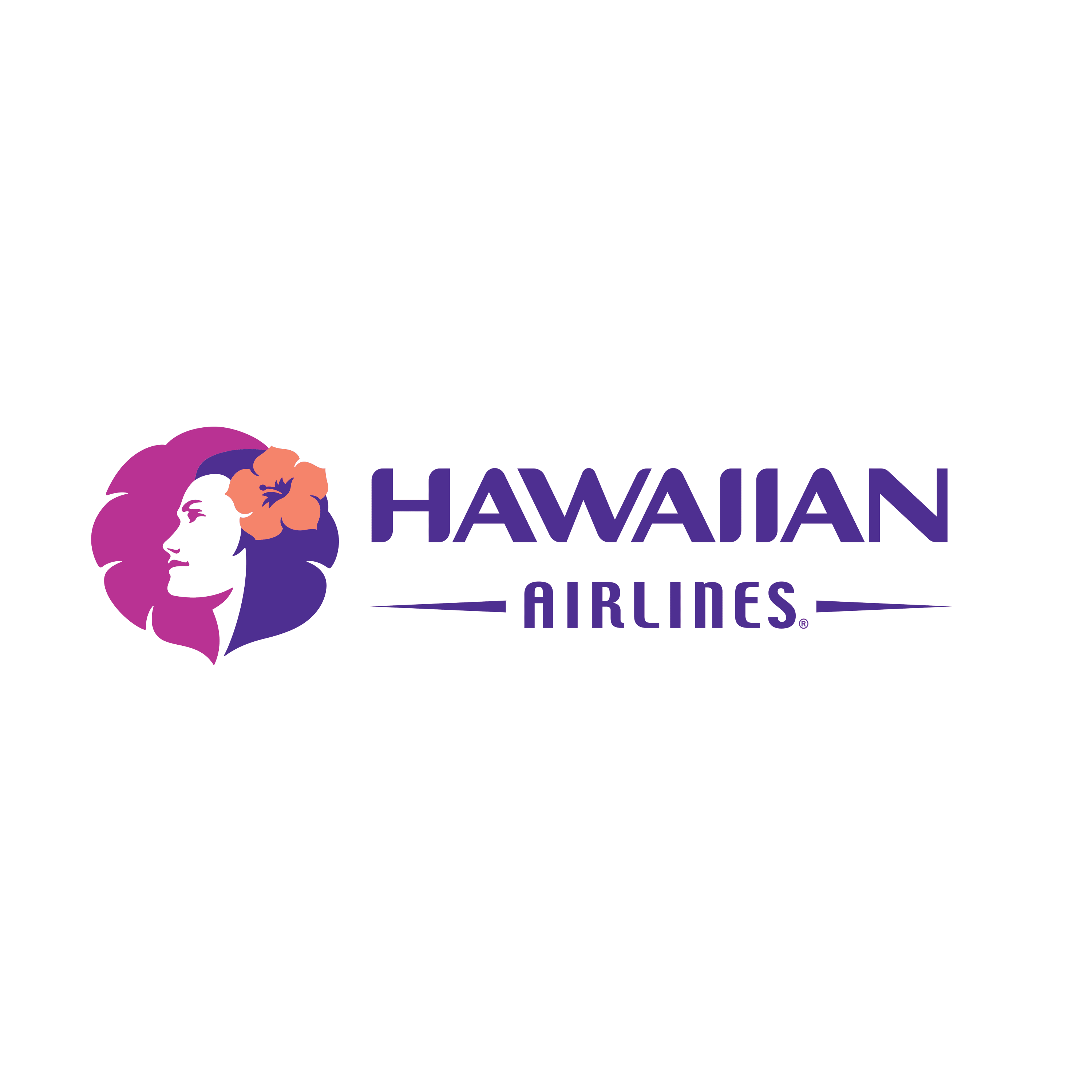Already since 1973, the logo features a woman’s face with purple hair and an orange flower against a big pink leave. It depicts Leinaʻala Drummond, who was Miss Hawaii 1964 and went on to work as a flight attendant with the airline.