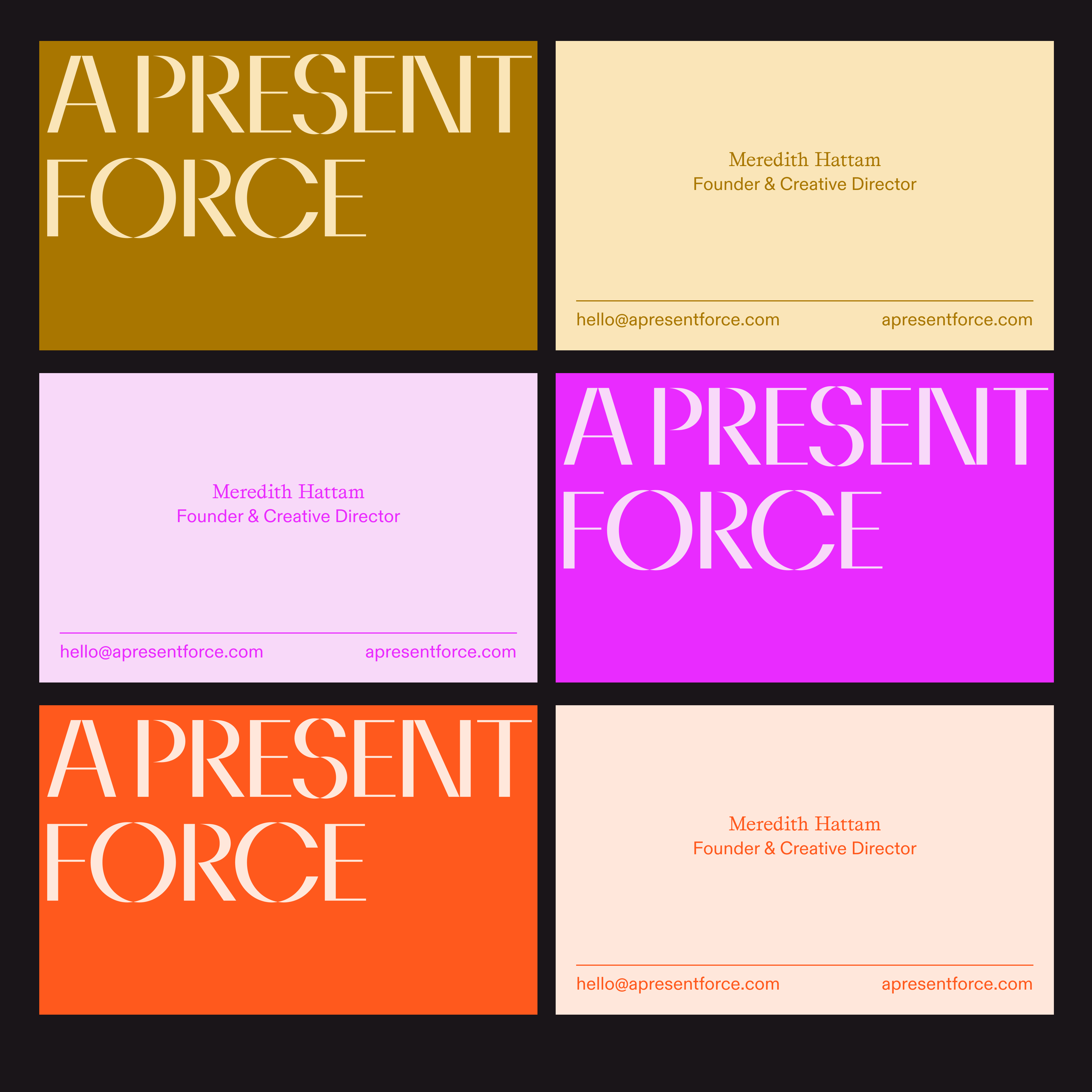 Website and visual identity for A Present Force, an independent design practice founded in 2025.