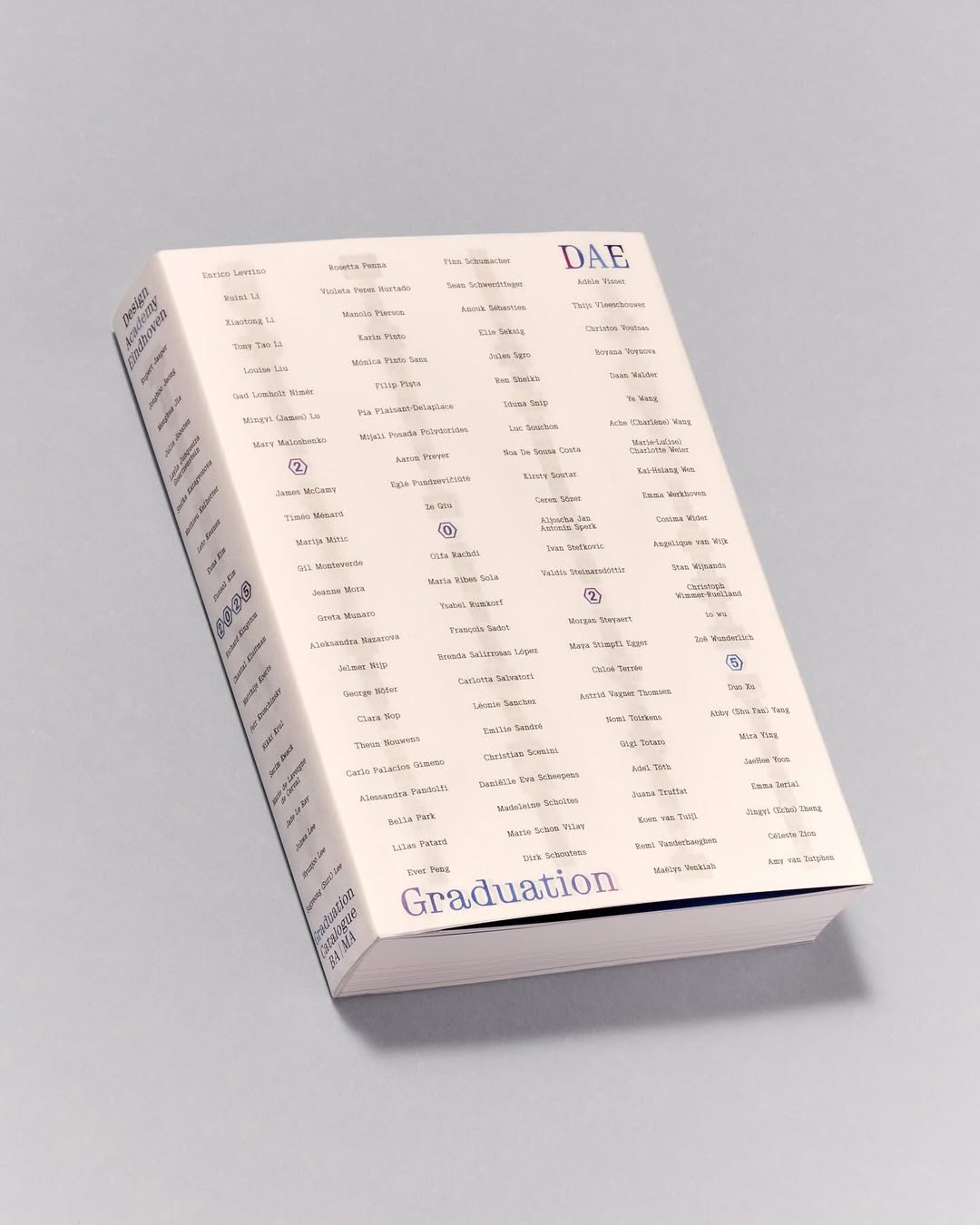 The Design Academy Eindhoven Graduation Catalogue 2025 – designed by Philipp Doringer – contains the works of 216 graduates, 131 BA graduates and 85 MA graduates. It is described as follows: