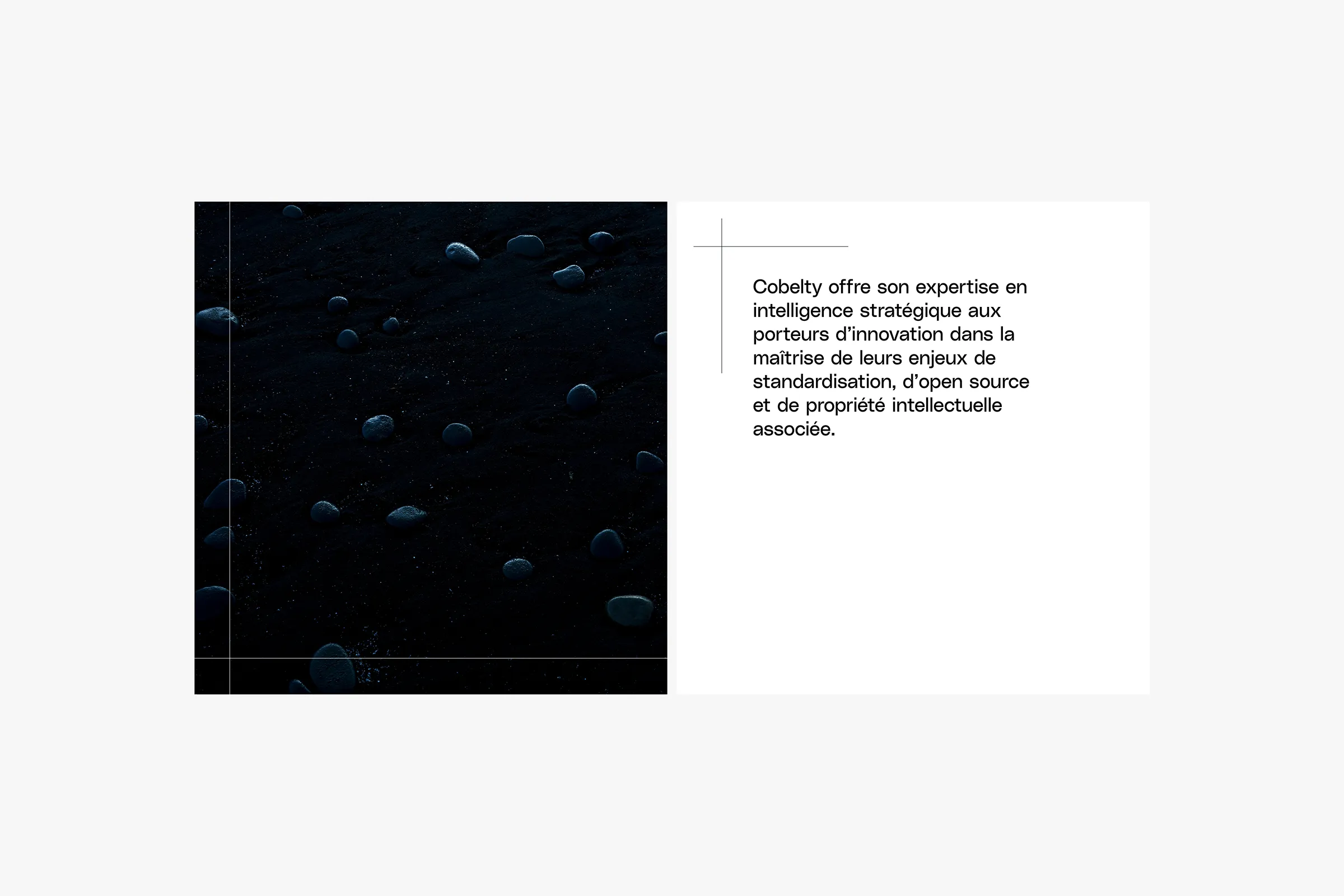 Cobelty is a consulting firm specializing in standardization, open source, and associated intellectual property. The challenge is to define a brand identity that is both innovative and reassuring in a highly codified corporate sector. It is necessary to highlight both the conceptual aspect of innovations and the serious, rigorous side of studying this field. We chose the name “Cobelty” which summarizes several concepts: cobalt, a natural metal widely used in digital technologies, and “belt,” thus affirming the reassuring and rigorous aspect of Cobelty’s expertise, whose offering consists in particular of securing the development ground for an innovation. Cobelty’s visual identity must be worthy of its unique and cutting-edge expertise.