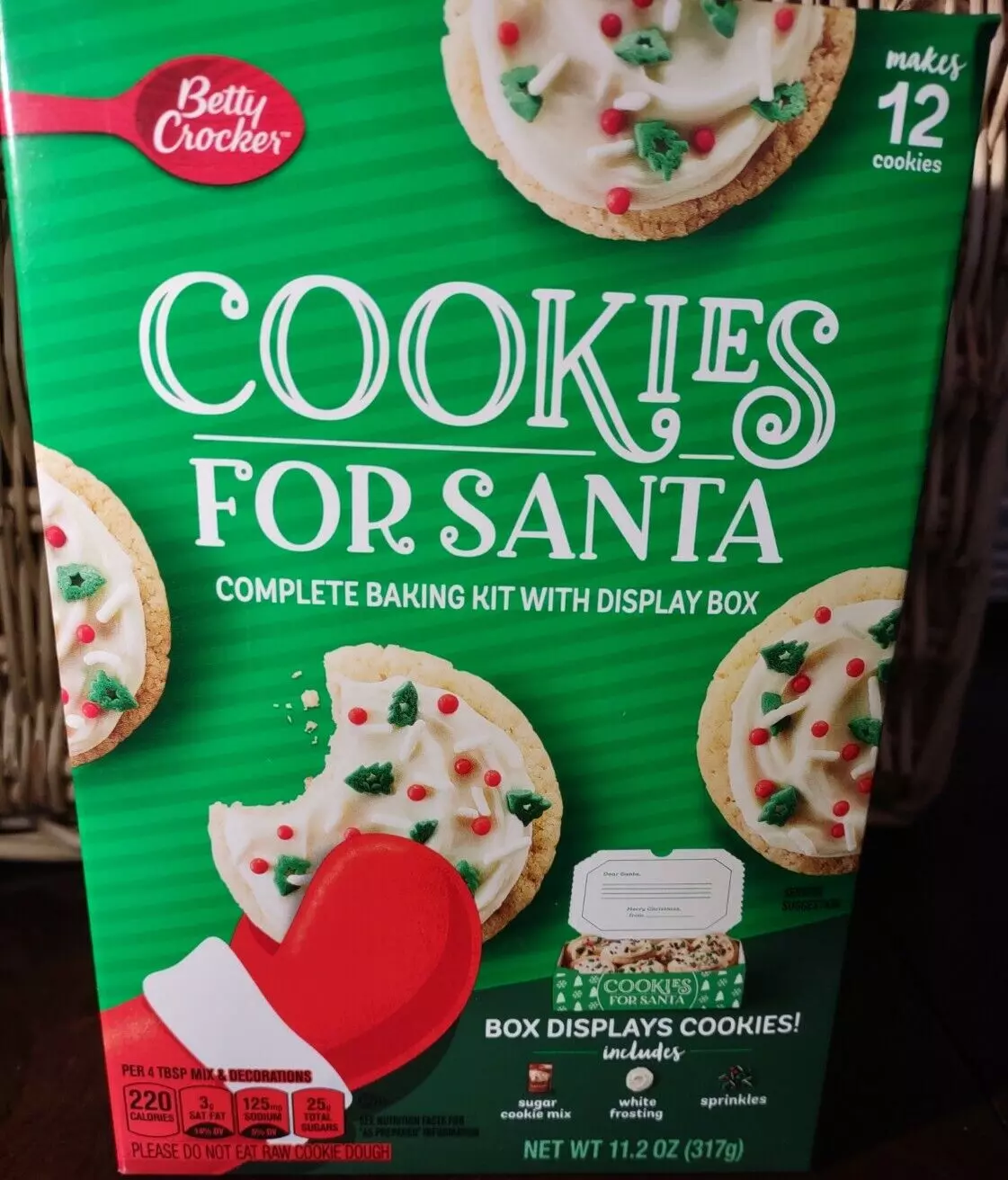 Breakfast Pastry is the primary typeface used on the packaging for Cookies for Santa by Betty Crocker, a brand by General Mills. While the typeface family by Missy Meyer does include solid styles, “for Santa” uses the open style with the gaps filled in.