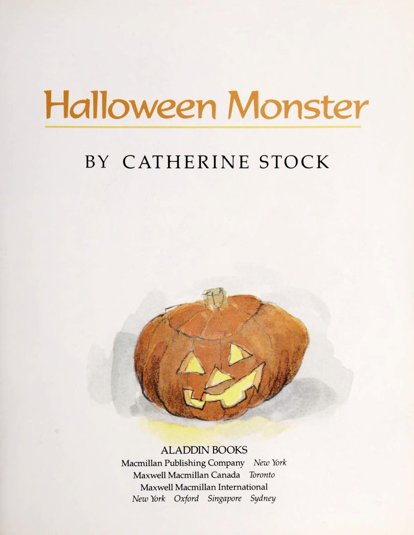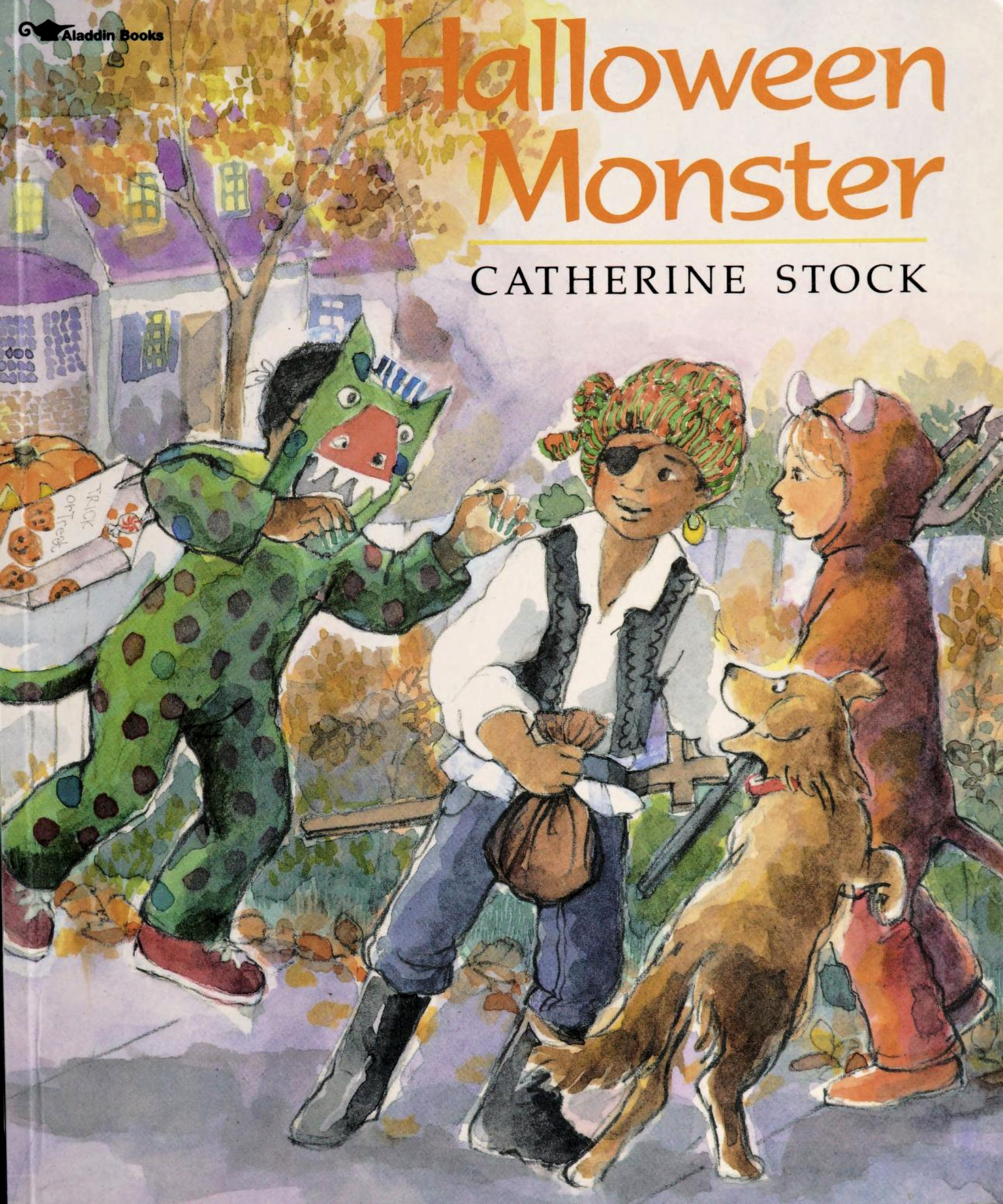 Halloween Monster is one of six books in Catherine Stock’s The Festive Year collection. First published by Bradbury Press in 1990, the images shown here are from the Aladdin Books edition issued in 1993. The book design was provided by the author herself, who specified Palatino for text. From the back cover: