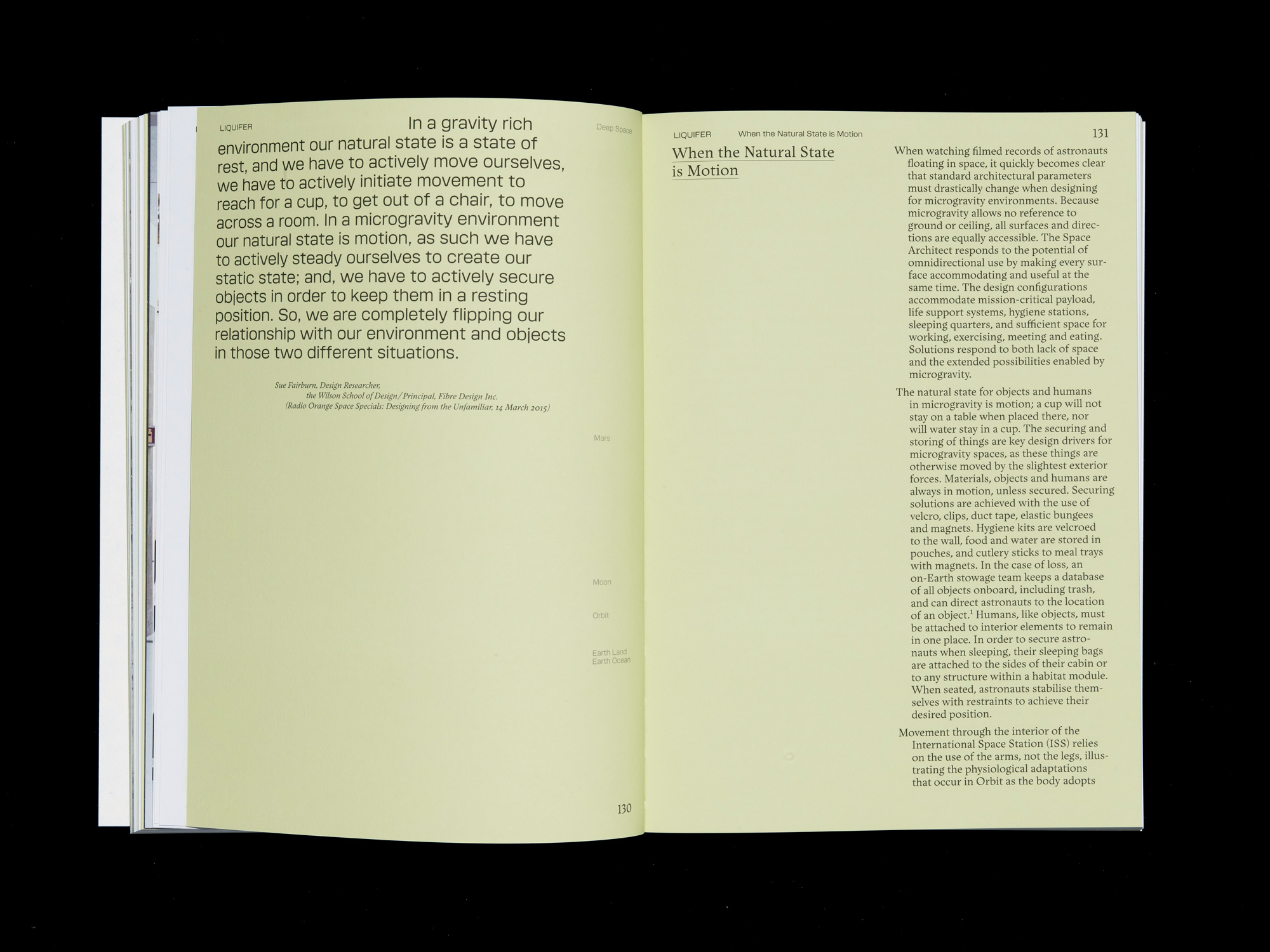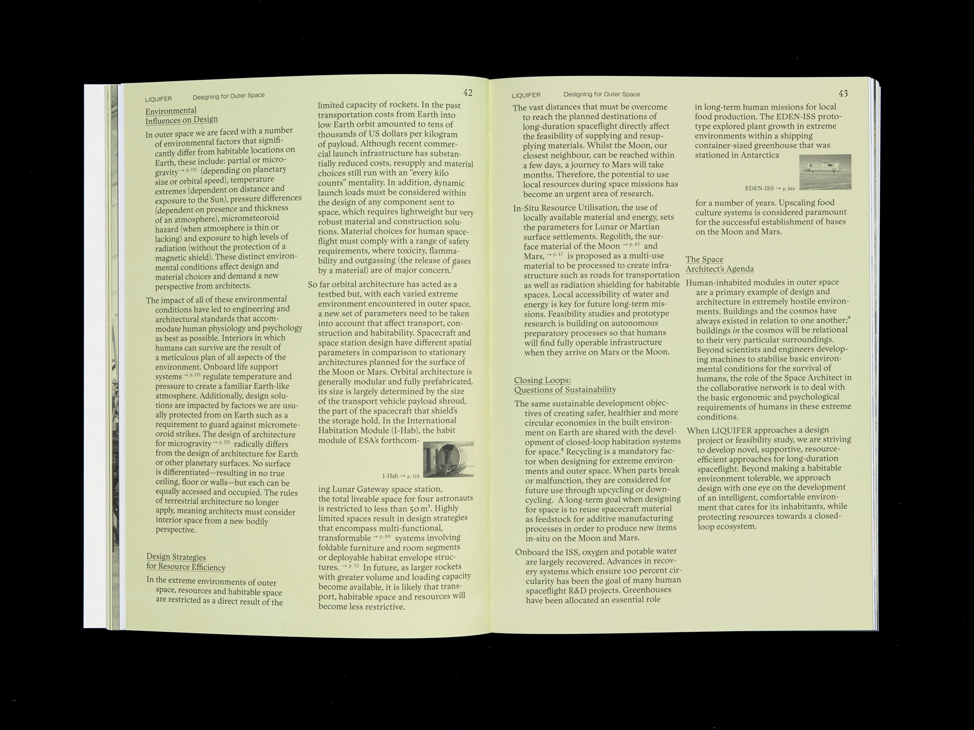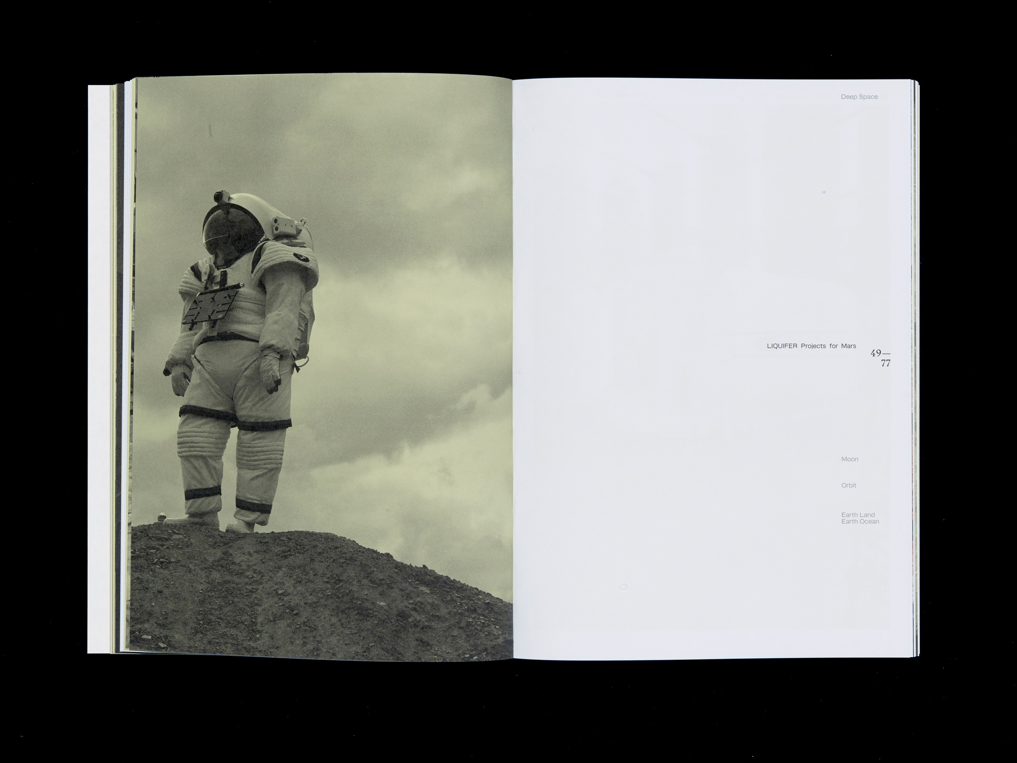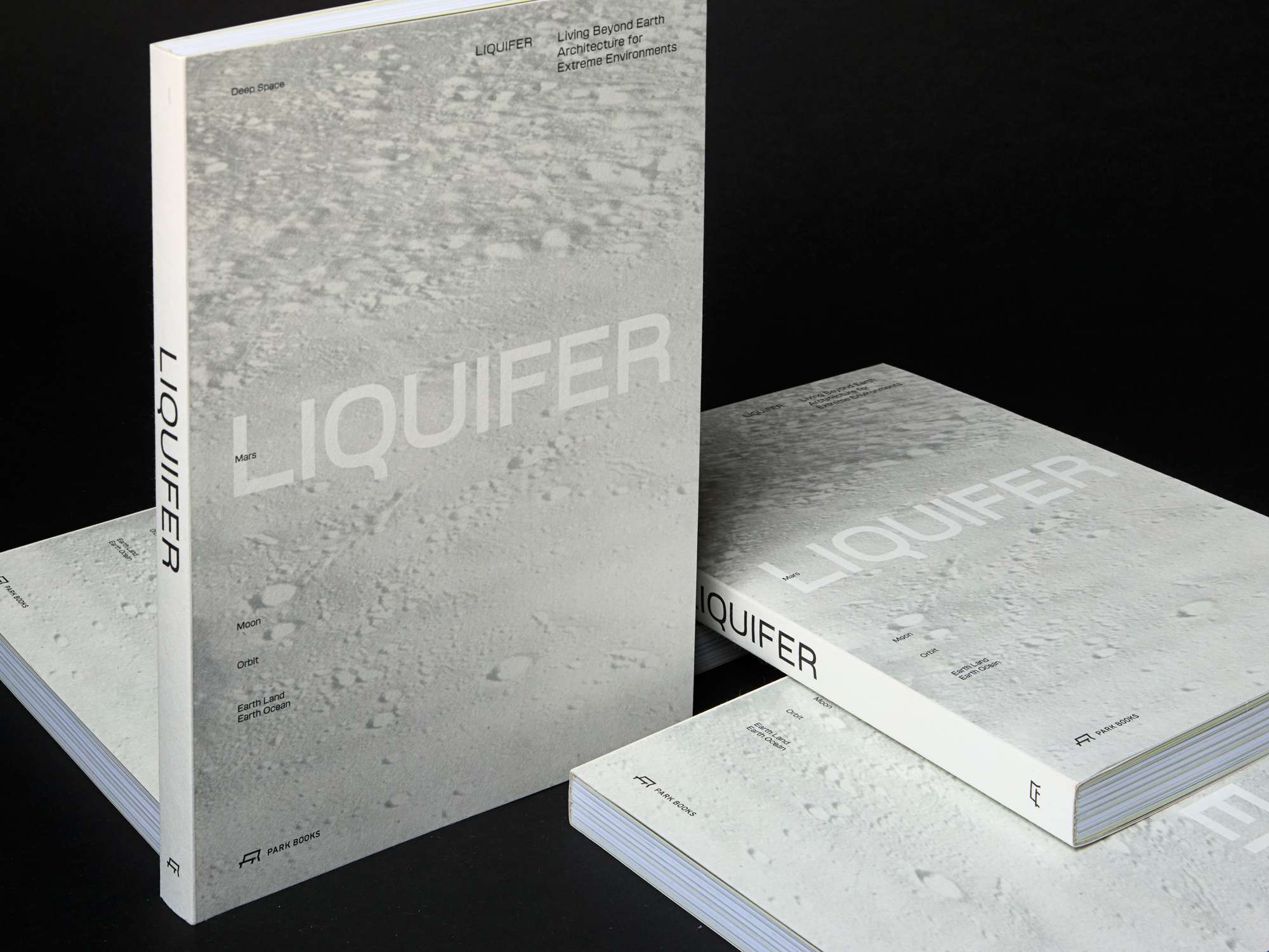LIQUIFER. Living Beyond Earth – Architecture for Extreme Environments is the first book to present the practice’s groundbreaking work. It features 177 color and 62 b/w illustrations and was published by Park Books. It’s the first published book to use the typeface Micronova. The serif typeface is Lexik, likewise by Binnenland.