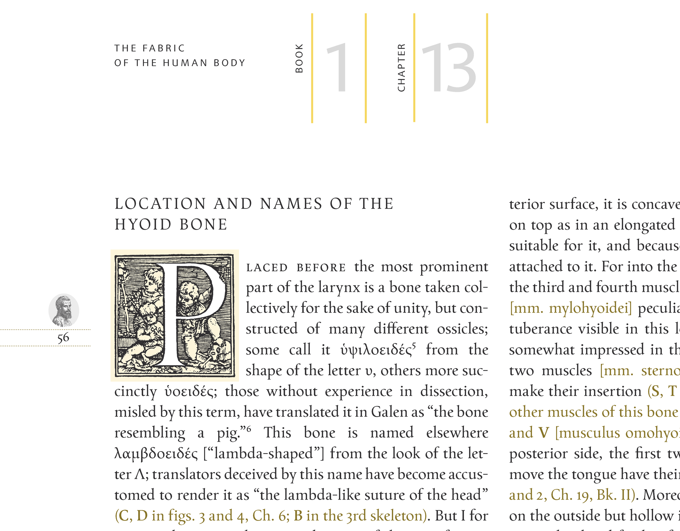 In keeping with the uniqueness of Vesalius’ masterpiece and the typeface in which it was first published, Swiss font designer Christian Mengelt developed a new typeface based upon the Basel Antiqua font that was distinctive to the 16th-century printing powerhouse Basel. Basel Antiqua is a modern rendition of that typeface especially prepared for the new translation.