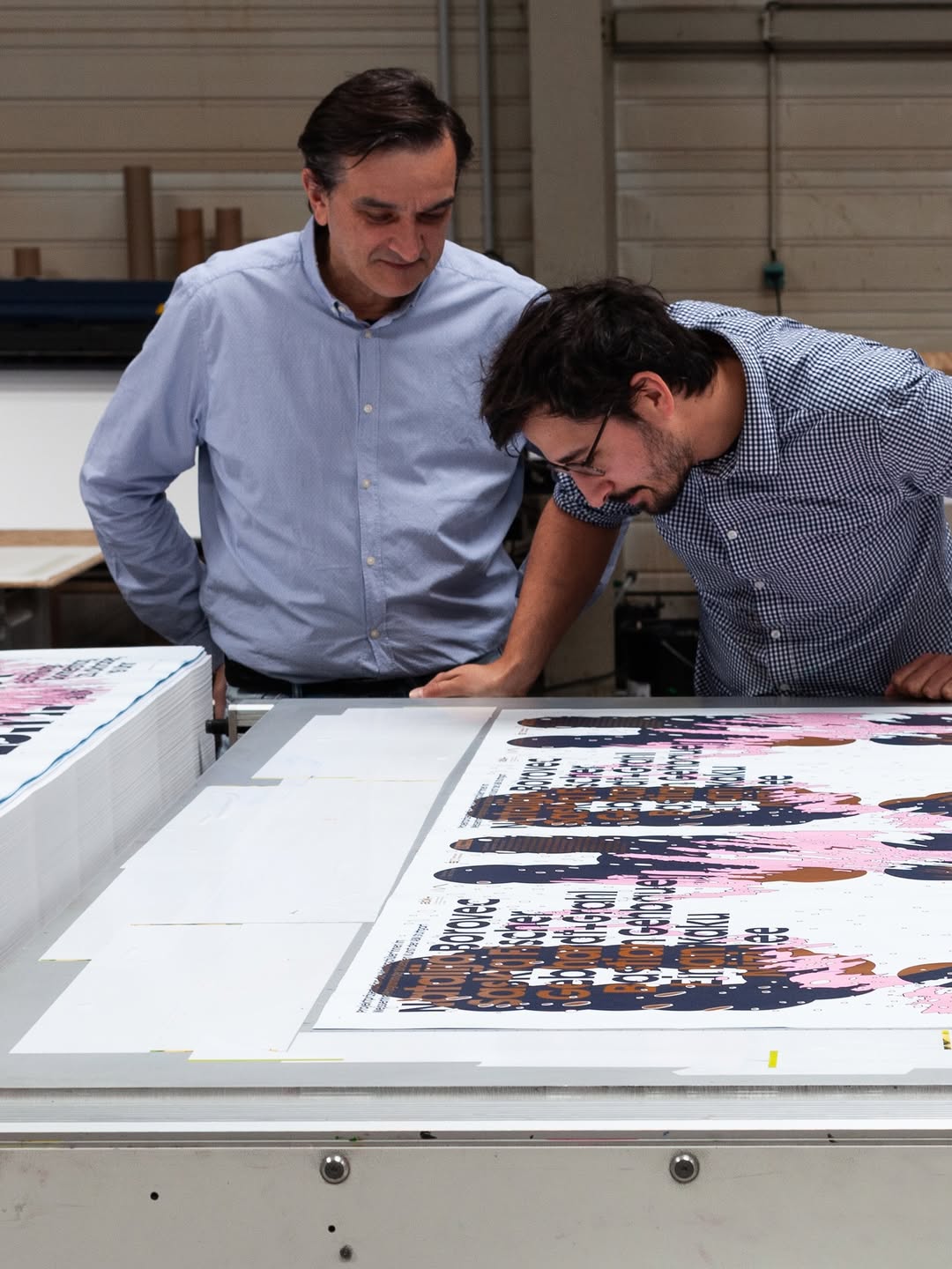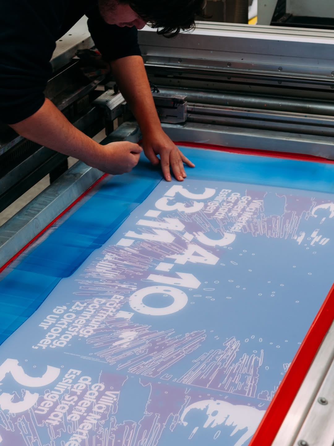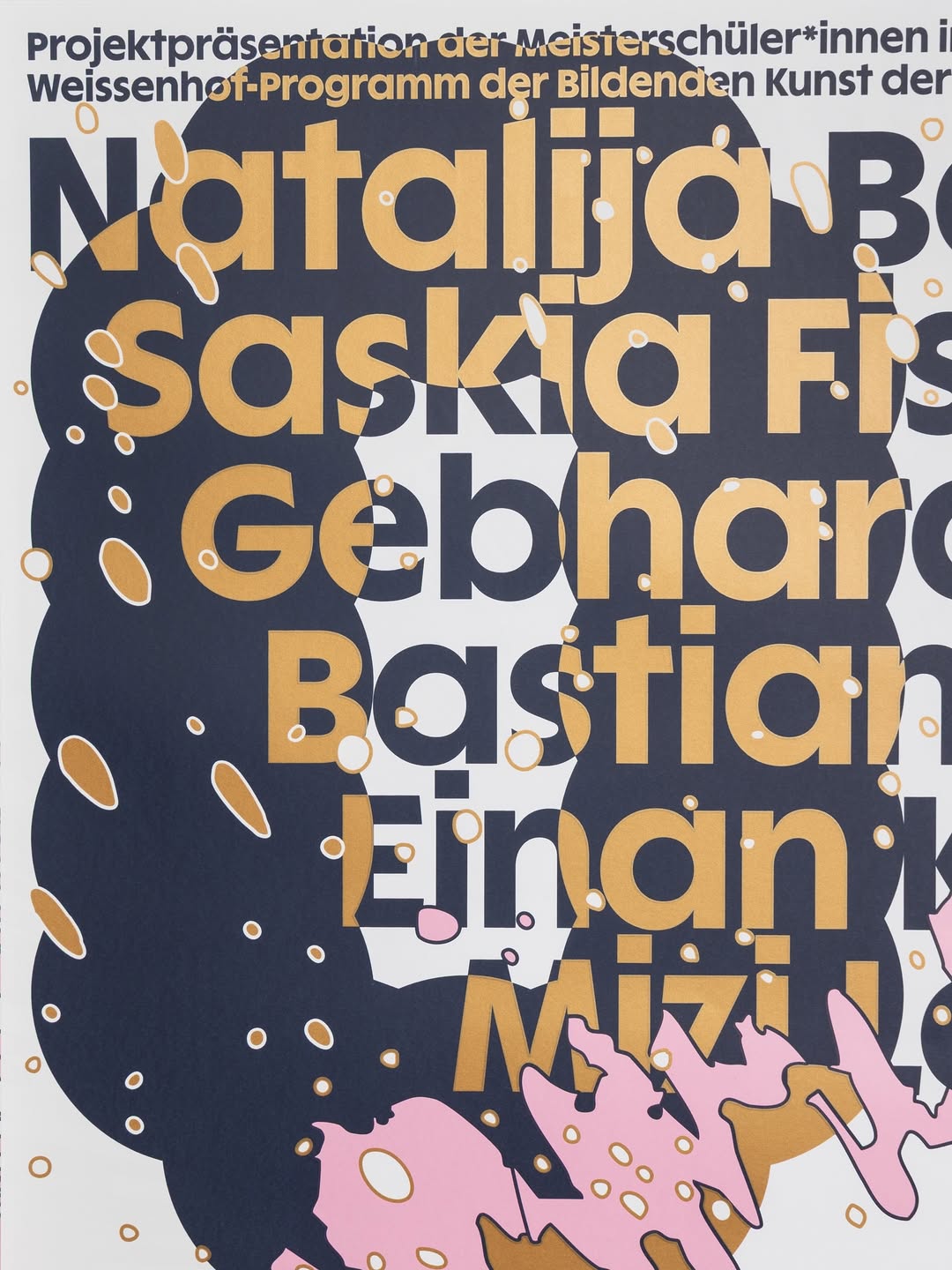Poster for OHAYŌ, the project presentation of the Master’s students from the Weissenhof Fine Arts program at the ABK Stuttgart, shown from 24 October to 23 November 2025 at Villa Merkel, Esslingen. The poster was designed by the team of Studio Tillack Knöll (consisting of Sven Tillack, Steffen Knöll and Zevako Maryna). It’s a three-color silkscreen print on DIN A0 paper,