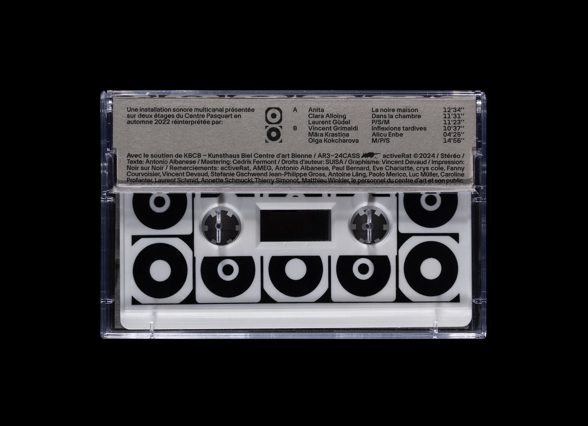 Solo Mute Pan is a collaborative exhibition project that brings together for the first time Olga Kokcharova and Laurent Güdel, two sound artists whose common ground is their work with listening and sound spatialization. Using various recording and amplification techniques, Olga and Laurent auscultated the Kunsthaus building during the hot summer 2022. Their respective approaches consider phonography (the writing of sound through microphones) not only as a documentation process, but also as a performative and musical act. The project is published by activeRat.
