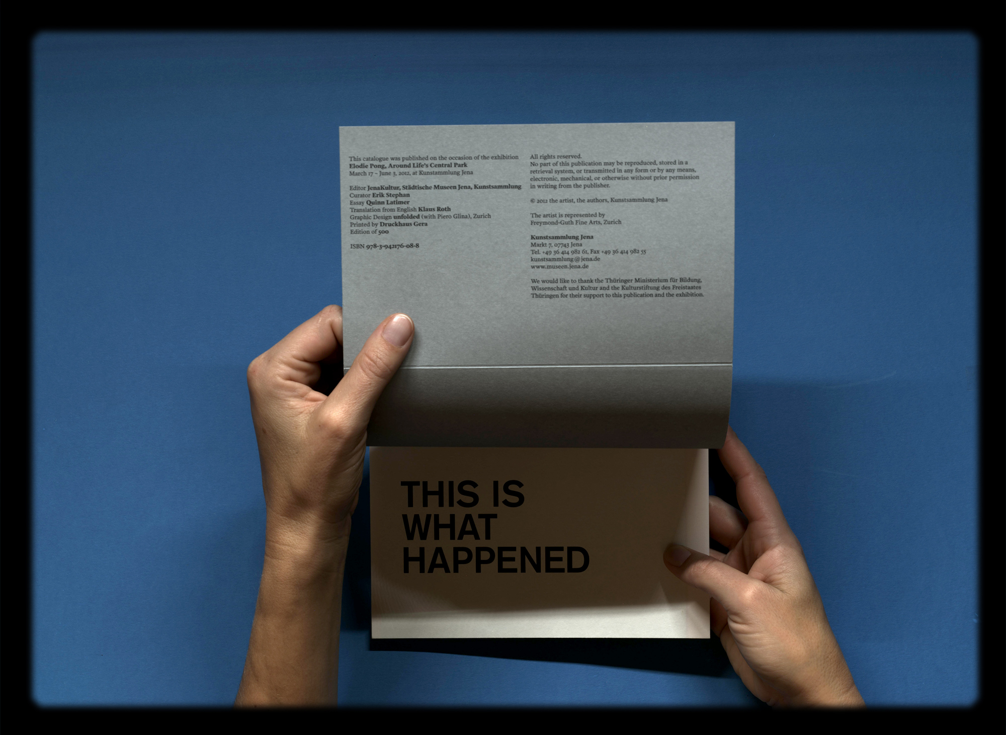 In the exhibition Around Life’s Central Park, the Kunstsammlung Jena presented – for the first time in Germany – video, film, and text works by the artist Elodie Pong. The accompanying catalog unfolds ten distinct cycles of work and includes an essay by Quinn Latimer, “Endless Endings or Your Pose Is My Pose – The Substitutive Function of Language and Body in the Work of Elodie Pong.”