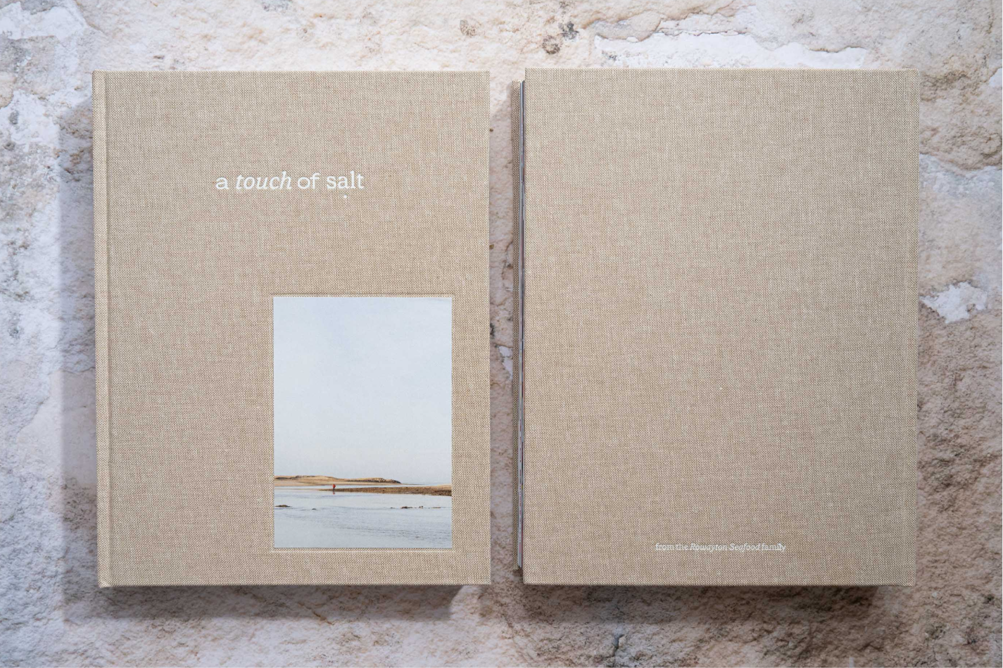 A Touch of Salt weaves together stories from local anglers and harvesters with straightforward, family-style recipes from the Rowayton Seafood team. Its structure is deliberate—divided into ten chapters, each focused on a single species. Design details carry meaning throughout, from the subtle dot beneath the a in salt to the consistent visual language that ties the book together.