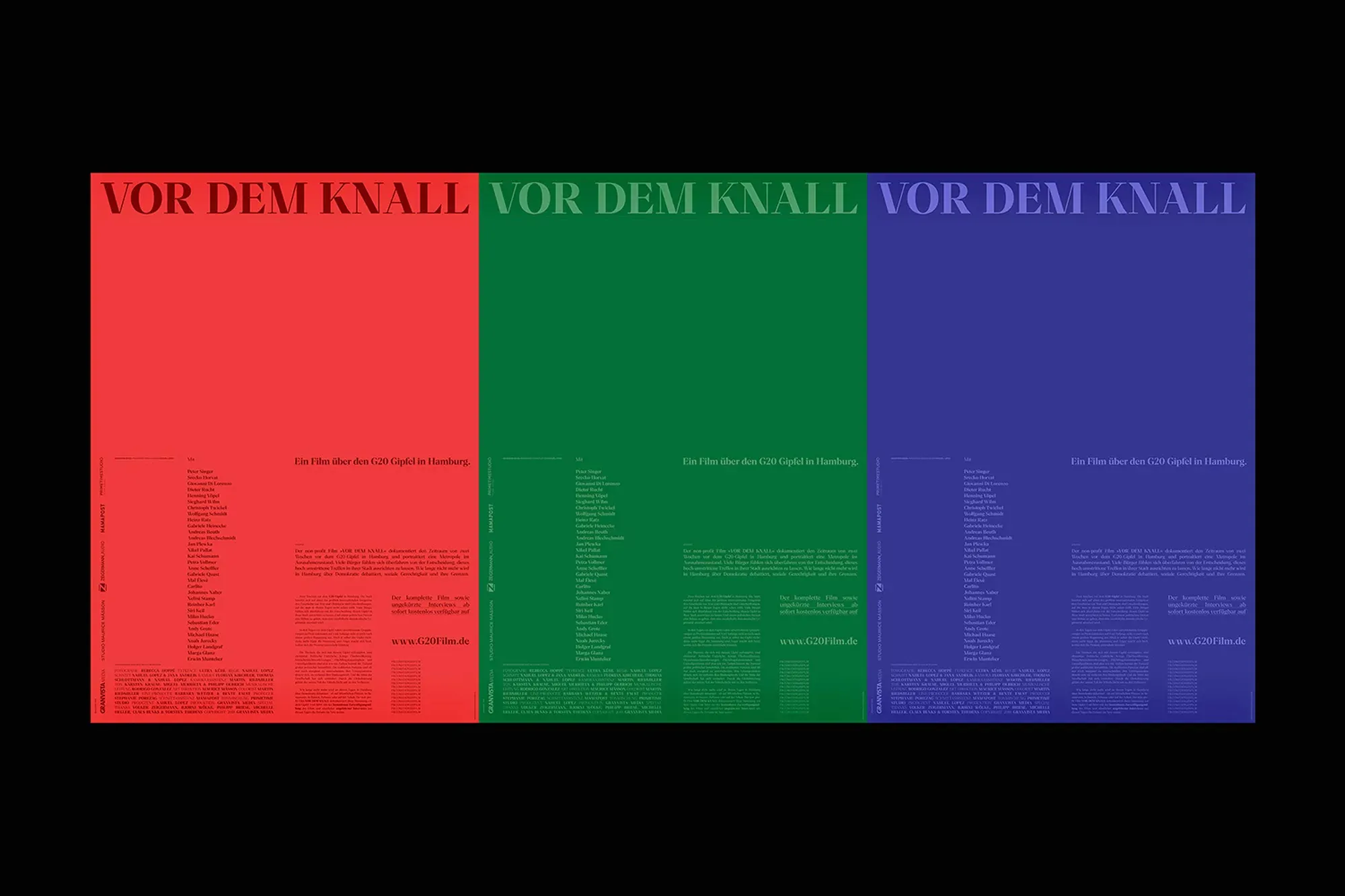Para from Rellence was used for the visual identity of Vor dem Knall, a documentary about the 2017 G20 summit in Hamburg. The typeface gives the project a sharp and contemporary tone that fits the film’s focus on political tension and civic atmosphere.