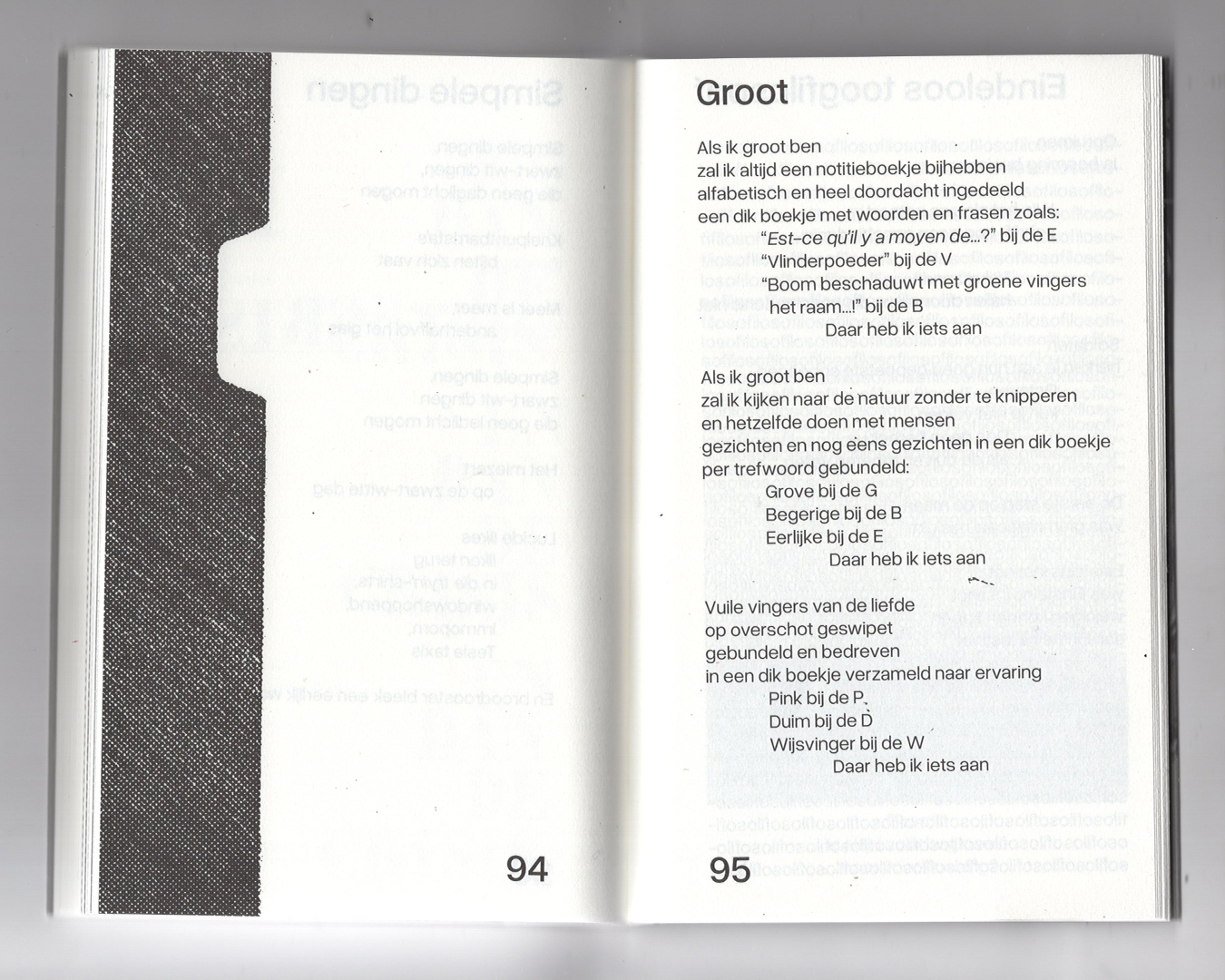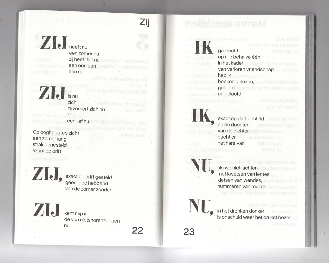 Tot nu toe by Alex Deforce Contributed by Maya Strobbe on Dec 2nd, 2025. Artwork published in October 2025. Maya Strobbe. License: All Rights Reserved. Poetry bundle set in Overused Grotesk, combined with illustrations and manually drawn letters and numerals based on Charrette. Published by Poëziecentrum in October 2025. Maya Strobbe. License: All Rights Reserved. Maya Strobbe. License: All Rights Reserved. Maya Strobbe. License: All Rights Reserved. Maya Strobbe. License: All Rights Reserved. Maya Strobbe. License: All Rights Reserved. Maya Strobbe. License: All Rights Reserved. Maya Strobbe. License: All Rights Reserved. Typefaces More about Overused GroteskGet Overused GroteskMore about Charrette Formats Books (6479) Topics Literature (3005) Art (4636) Designers/Agencies Maya Strobbe (3) Tagged withpoetry (388)book covers (5820)book interiors (3626)indents (150)numerals (1072)contrasting sizes (660)tight linespacing (348)tight letterspacing (865)inner flaps (123)Dutch (language) (475)Poëziecentrum (1)Alex Deforce (1)lettering derived from typeface (734)tables of contents (1138)paperback with flaps (121)title pages (1028)page numbers (316)early uses (2206) Artwork location Belgium (427) Brussels (124) In SetsDesigns by Women (Fonts In Use Staff) (3534)Editorial (Juan Ortega) (236)Brutalista (Juan Ortega) (39) Post a comment Name Email – will not be published Website Your response Submit Comment More Charrette in use Cent Ans de Solitude – Gabriel García Márquez (Le Livre de Poche)1973Pierre FaucheuxPhoto(s) by Alexis Orloff on Flickr. Edwin Starr – “Twenty-Five Miles” / “Love is My Destination” German single cover1969unknownContributed by Garrison Martin Staff Pick Typographie: Schrift und Graphik mit Letrasetc. 1978Christof GassnerHelmut LangerFriedrich FriedlContributed by Stephen Coles Staff Pick Sponsor More in Art Biennale de Bourges2012Clémence MichonAntoine StevenotContributed by Emilie Rigaud Staff Pick Lee Krasner: Living Colour2019A Practice for Everyday LifeContributed by OGJ Type Design Søren Aagaard at Kunsthalle Recklinghausen2024Ten Ten TeamContributed by Ten Ten Team U Name It: Sculptures by Robert Maxwell1964Contributed by Stephen Coles More in Books The Laidlaw Reading Program1976Gloria MuczynskiDonald CharlesContributed by Elizabeth Goodspeed Staff Pick Listen Up Philip (2014) fictional book covers2014CHIPSTeddy BlanksContributed by Matthijs Sluiter Staff Pick The day the world went away1973Contributed by Benjamin Shaykin Führer durch das Städtische Historische Museum zu Frankfurt a. M. title page1902unknownPhoto(s) by altpapiersammler on Flickr.Schmale Mediaeval-Egyptienne-Versalien(Sample unavailable) More Fonts In Use O Teatro Negro e Atitude no Tempo, O Tempo no Teatro Negro e Atitude2021Vitor CarvalhoContributed by Vitor Carvalho Staff Pick The City as a Systemc. 2023CatalogtreeContributed by Joris Maltha Staff Pick RE:BOOT 2018–19 graphics2018Benedikt LuftMaximilian KreisRoman SteinmetzContributed by Sunny Schultz Staff Pick Metro Rio signs2013Crama Design EstratégicoContributed by Ralf H. Staff Pick