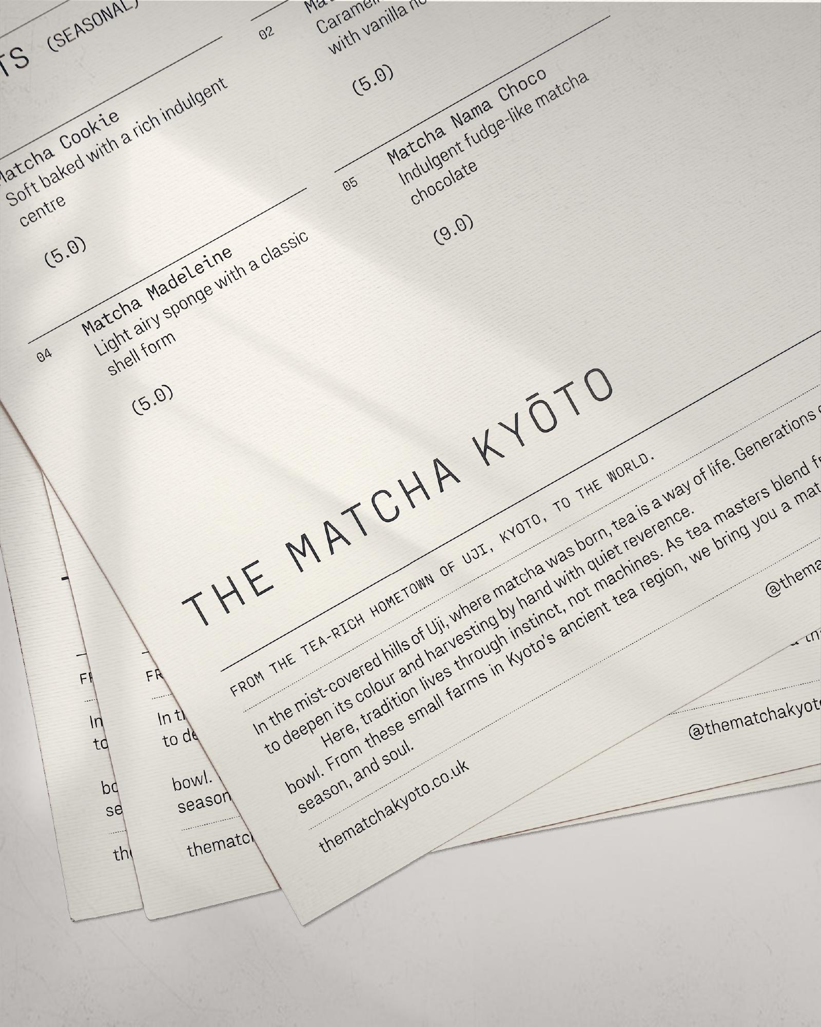 The packaging and printed materials use textured, uncoated stocks to mirror the raw, organic qualities of stone-ground matcha. Subtle grain, soft shadows and fine lines create a quiet tactility that reflects the care behind every handpicked leaf.