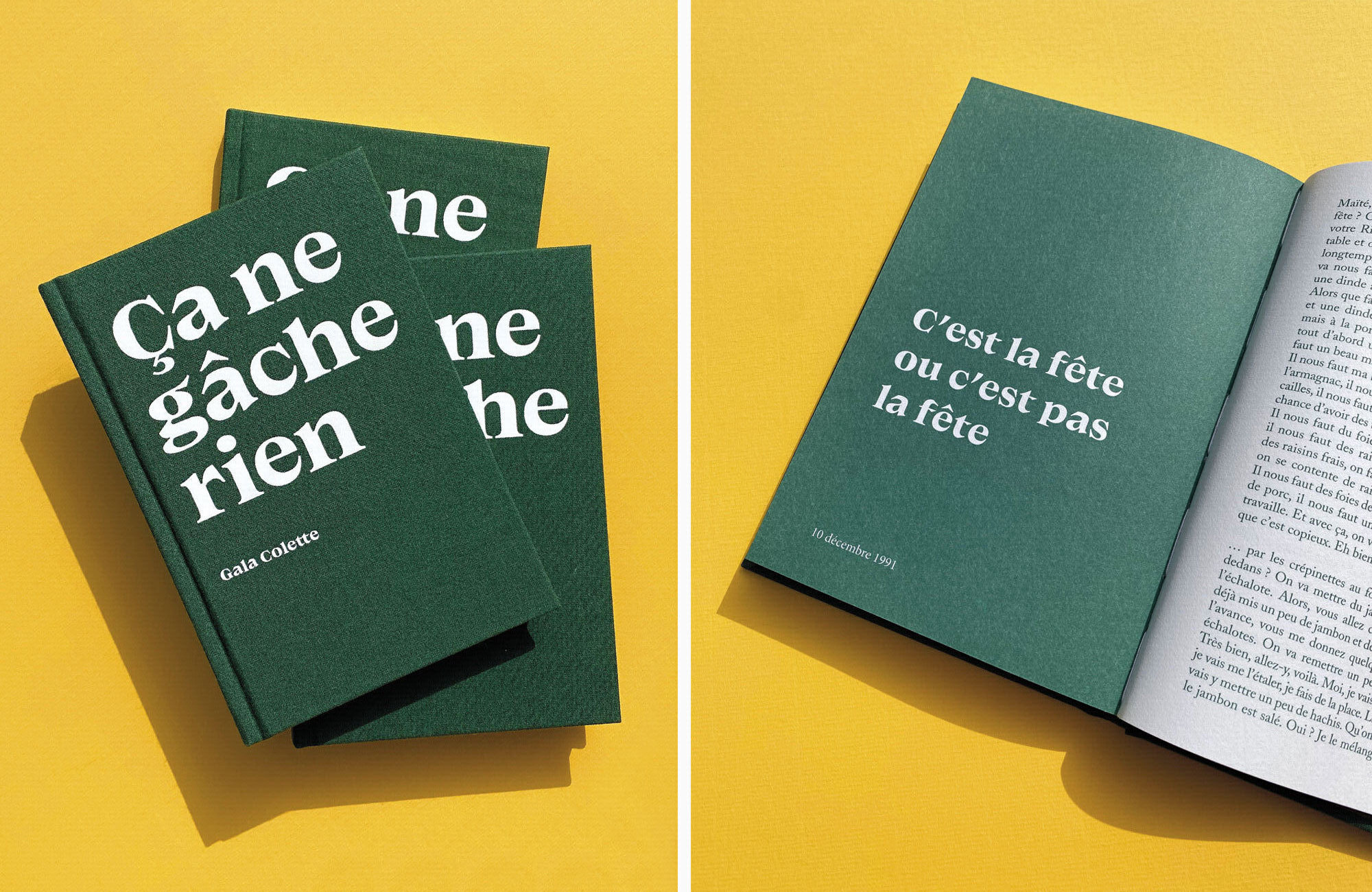 Ça ne gâche rien is a transcript of the French TV show La Cuisine des Mousquetaires (“The Musketeers’ Kitchen”) where Maïté and Micheline elaborate on meals like ostrich steak. Putting it in writing it gives it an interesting depth, using our Matorral font to illustrate the singular vocabulary and equivocal comparisons. The book was conceived by Franco-Belgian artist Gala Colette and published by Les Éditions de l’Épure.