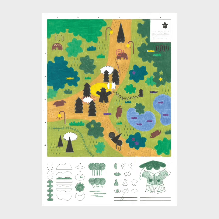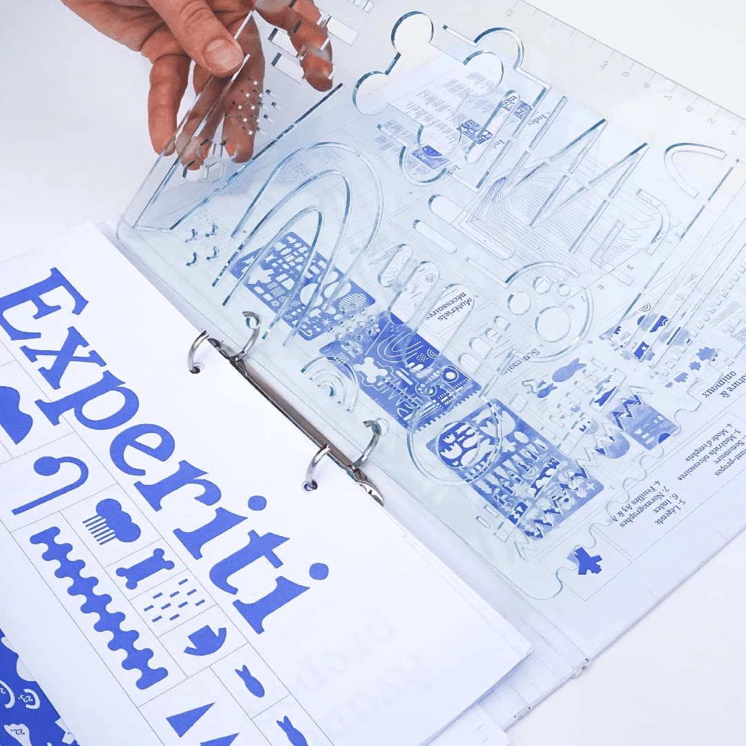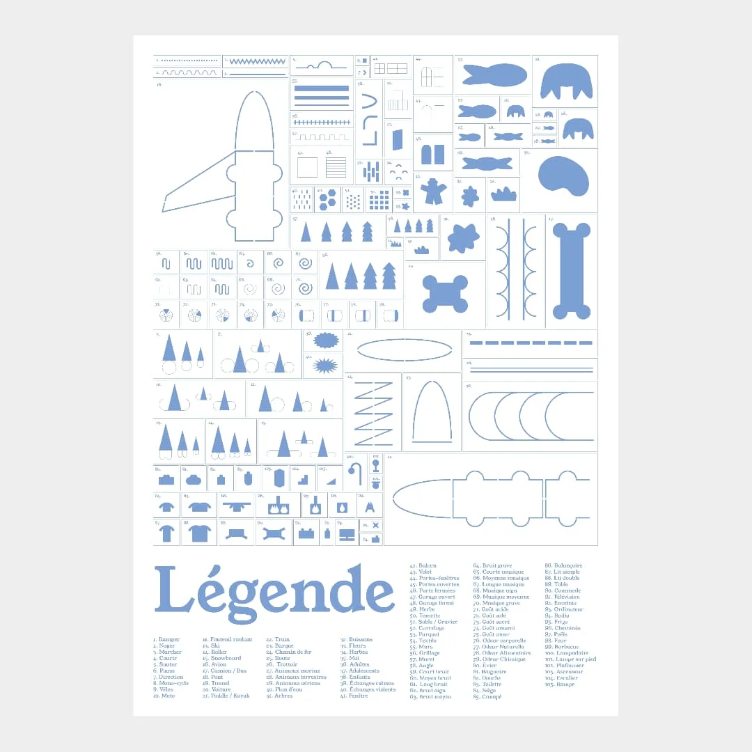 Experiti was made as a student project at École Estienne, Paris. It’s a kit composed of a binder and a set of three drawing templates, designed to map any kind of visiting experience: museum visits, forest walks, visits to a family member’s home, and more. The binder notably includes an instruction manual and a detailed legend, providing users with precise guidelines to help them create their own maps. The kit also contains various sheets for drawing, as well as a label to be filled in.