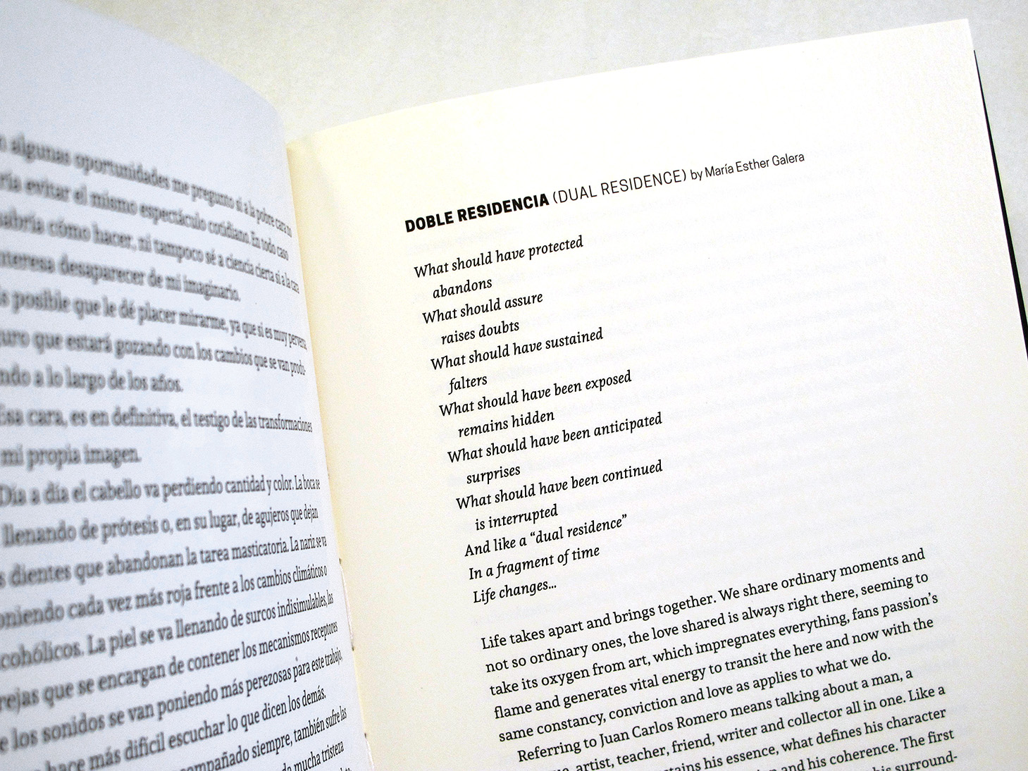 This bilingual edition (Spanish-English) was published by Ediciones Urania in collaboration with the Juan Carlos Romero Artist Archive.