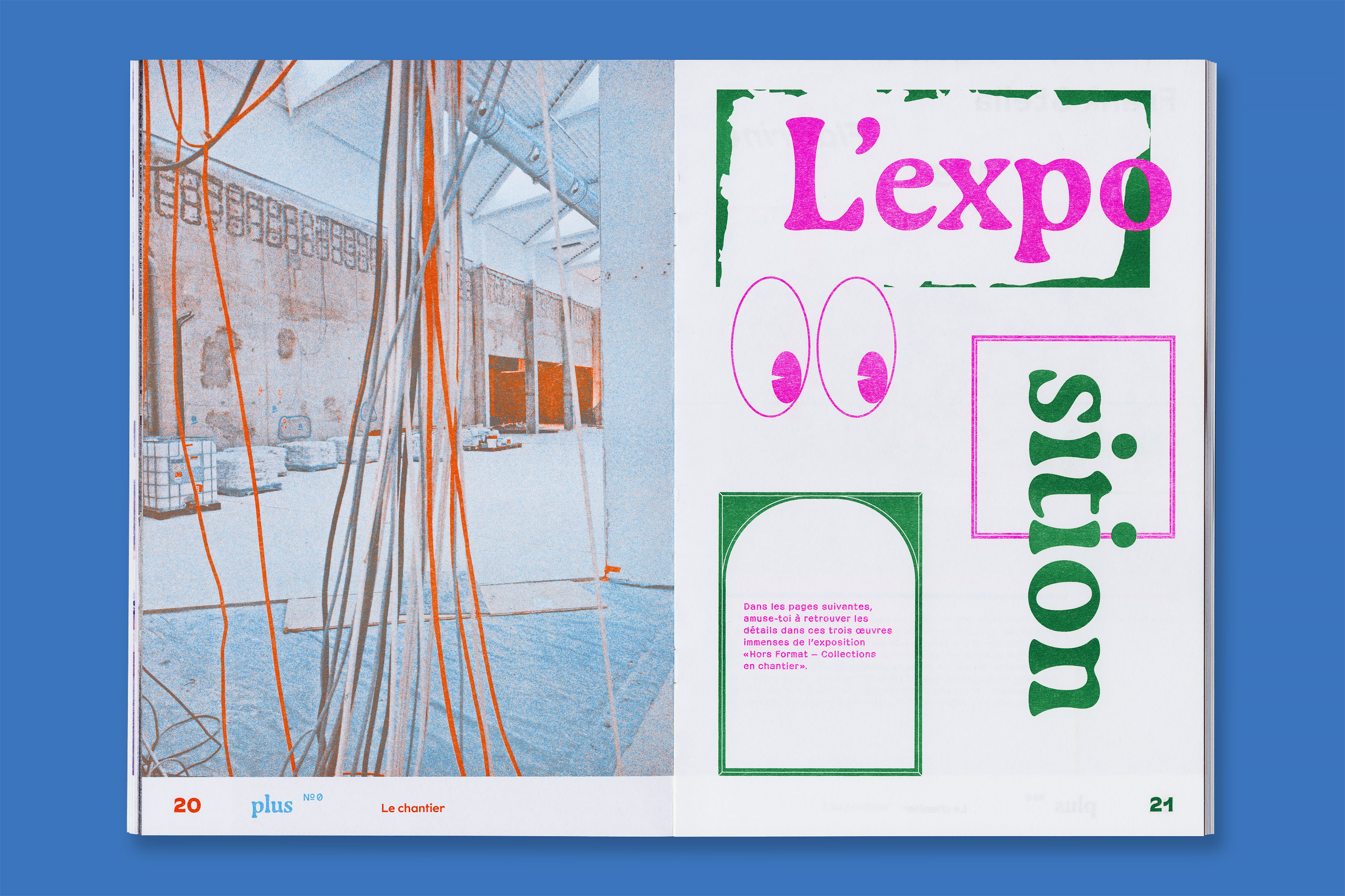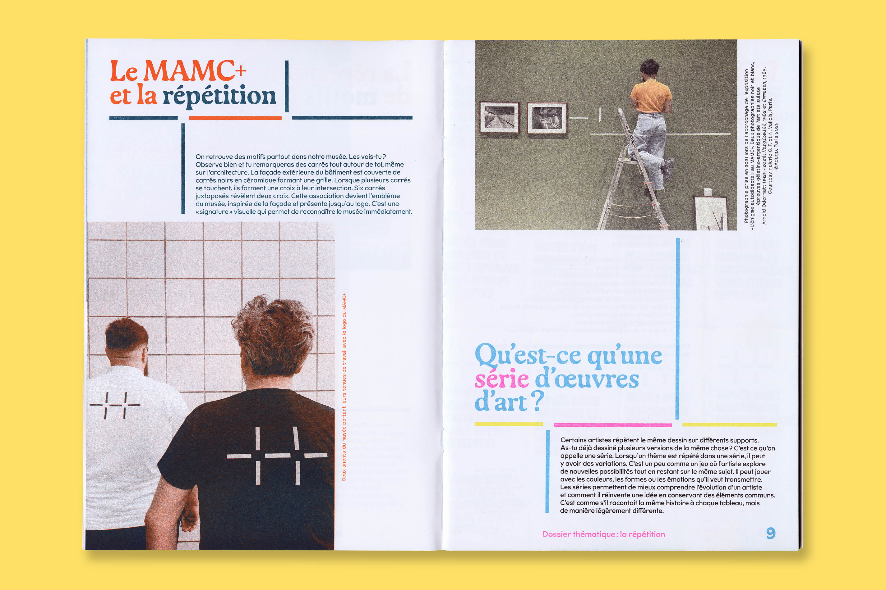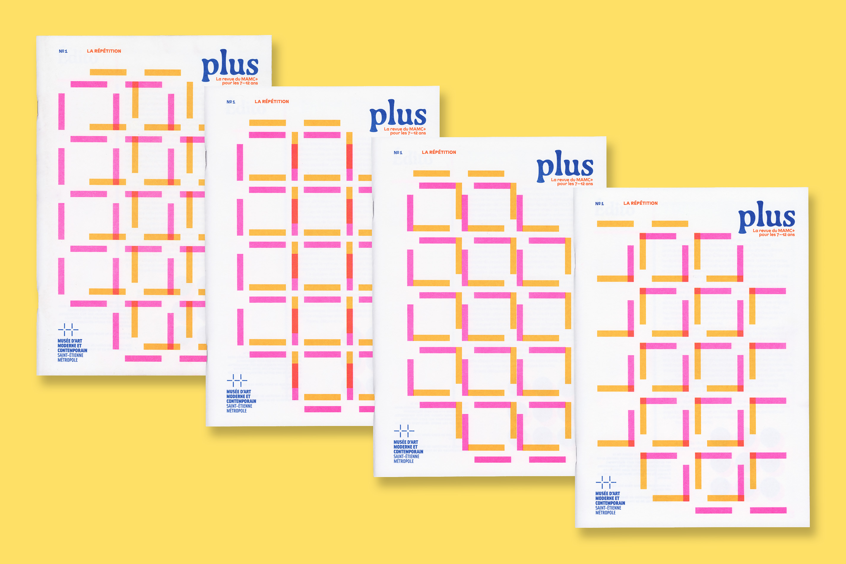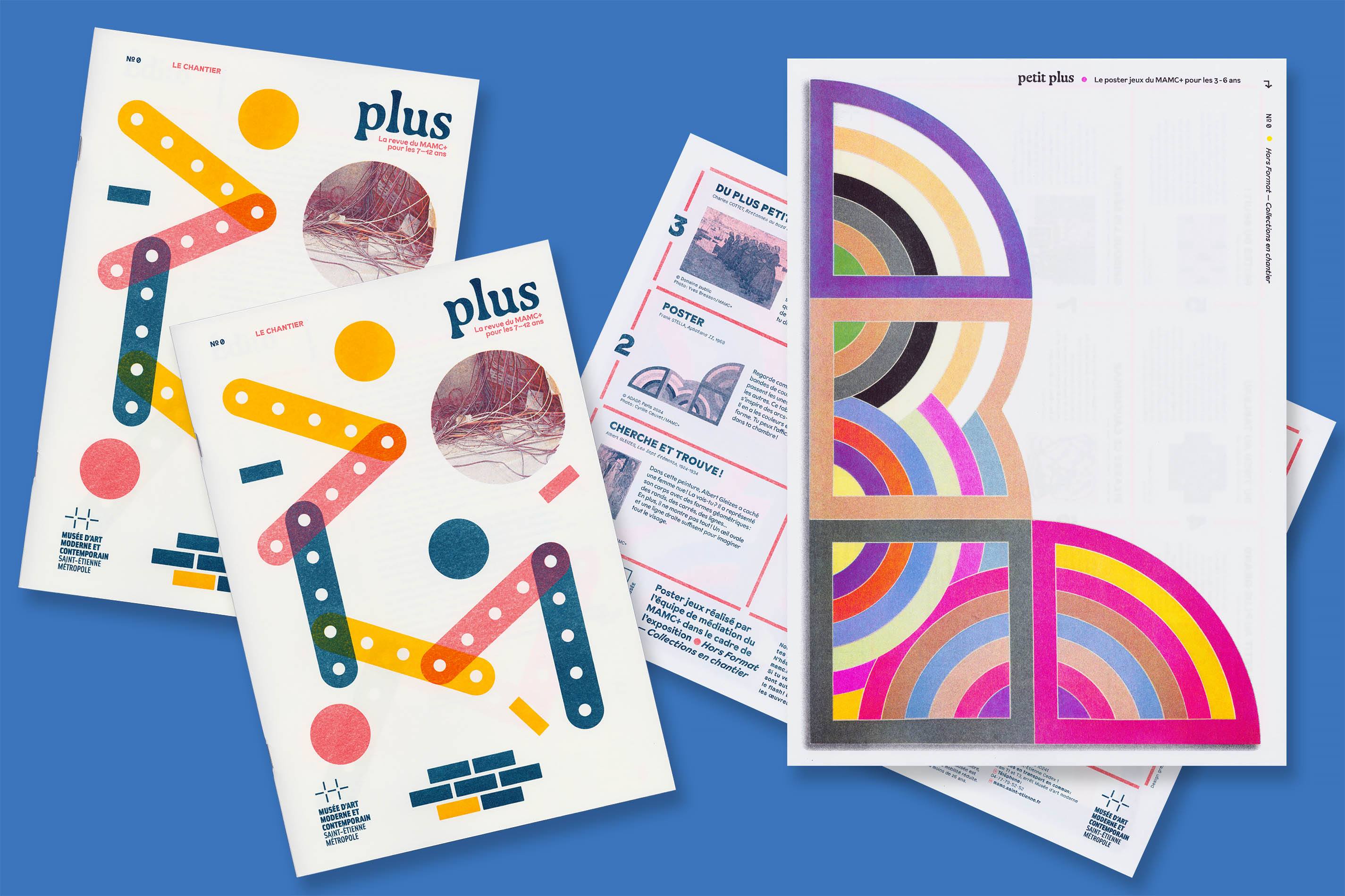 Système Sensible, a graphic duo composed of Charlotte Gauvin and Matthieu Meyer, designed the graphic identity and the layout of Plus, the museum’s magazine for young audiences.