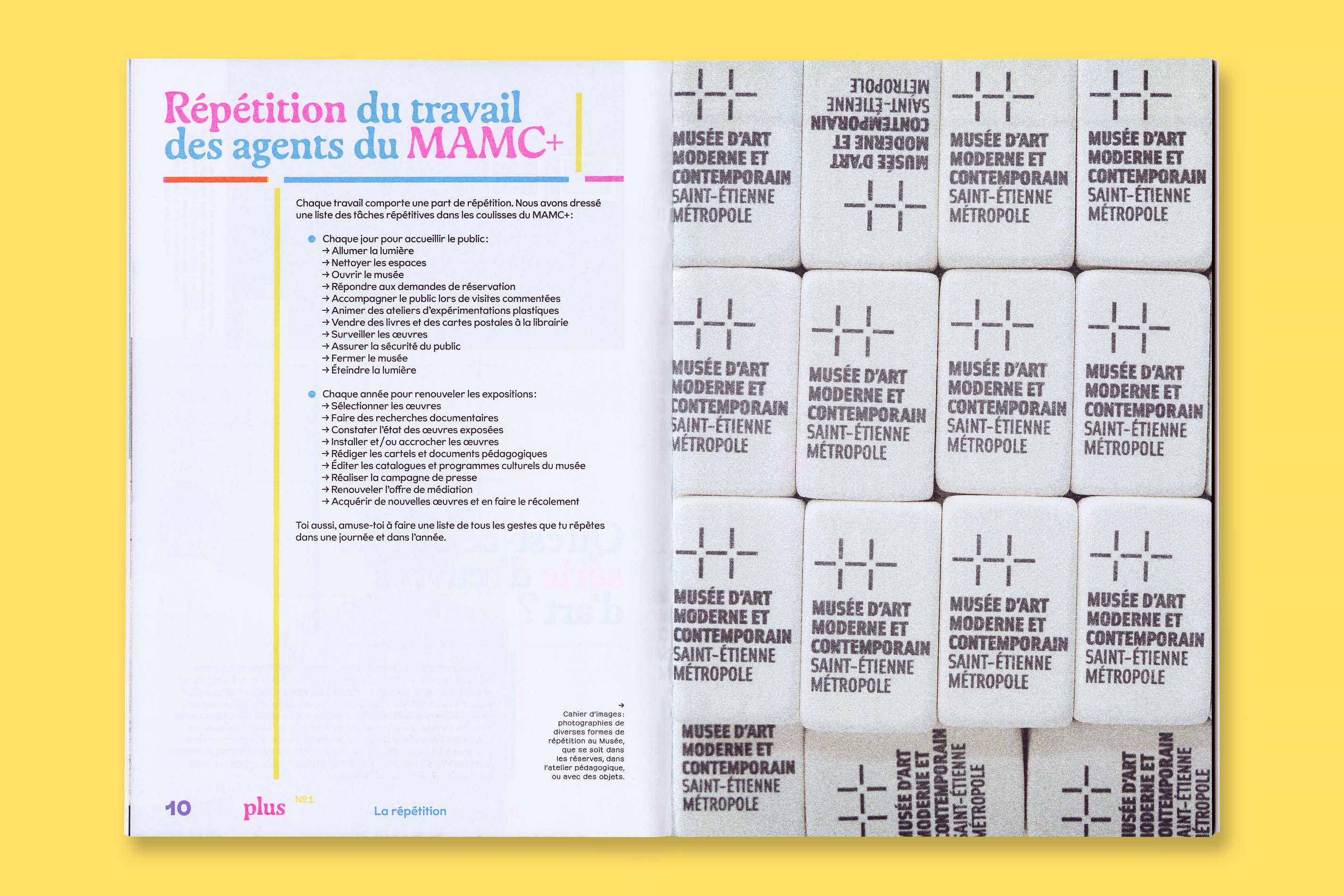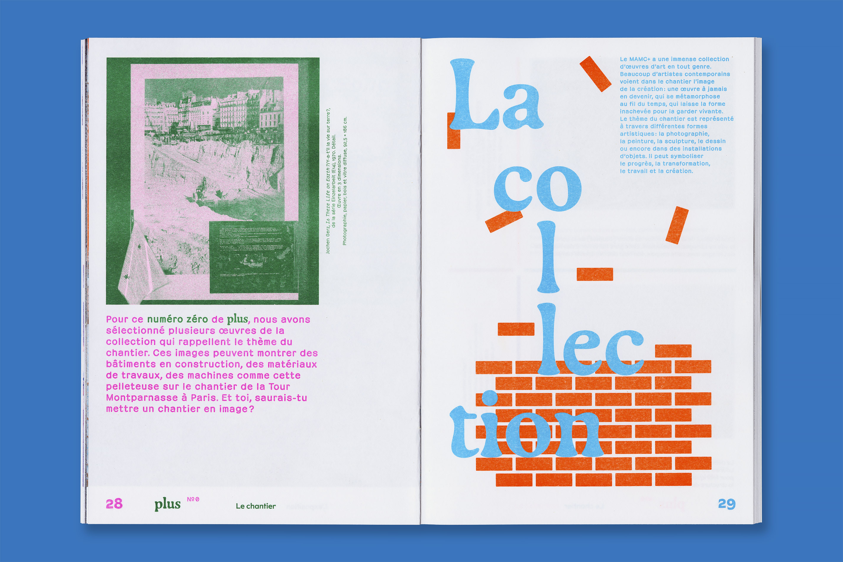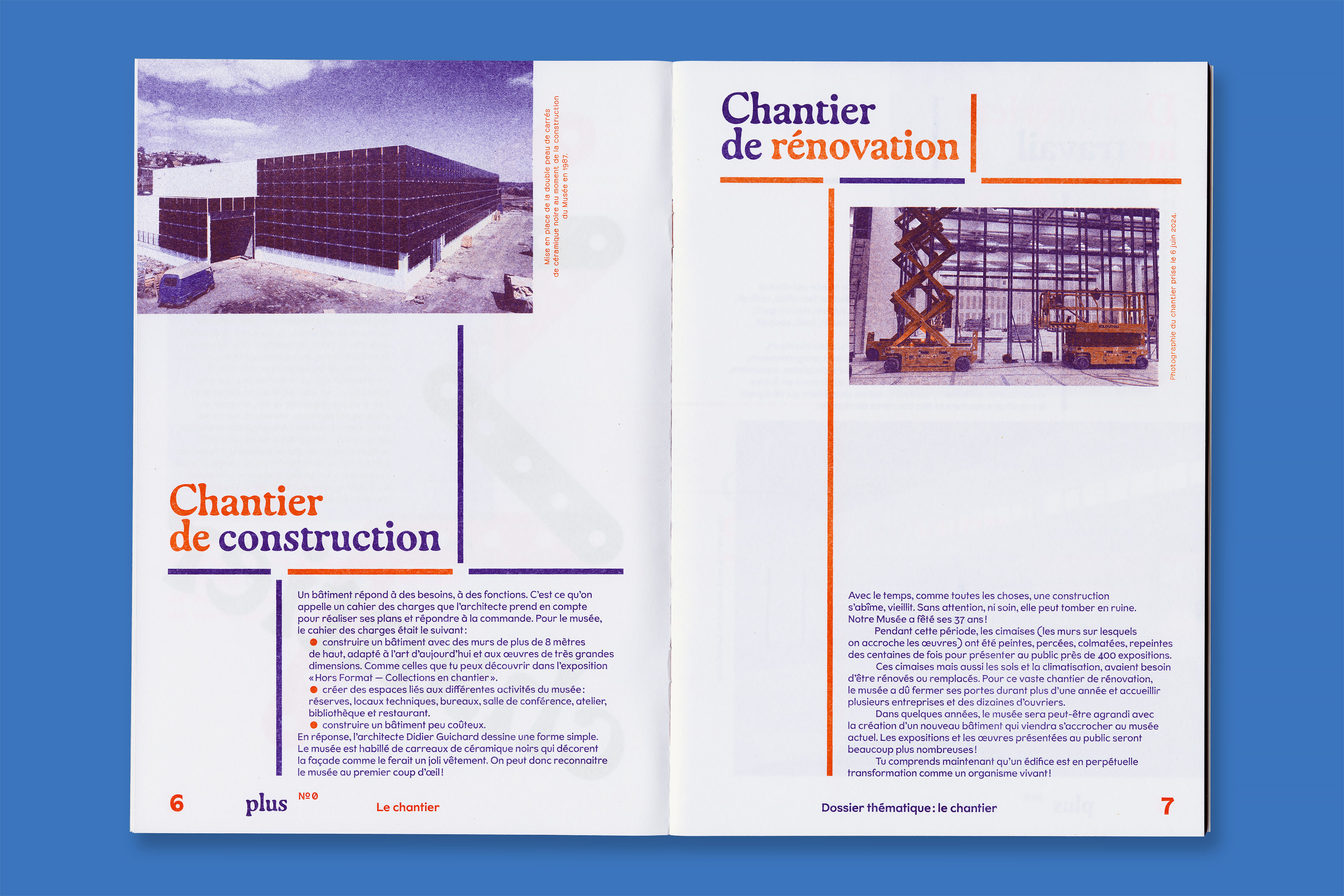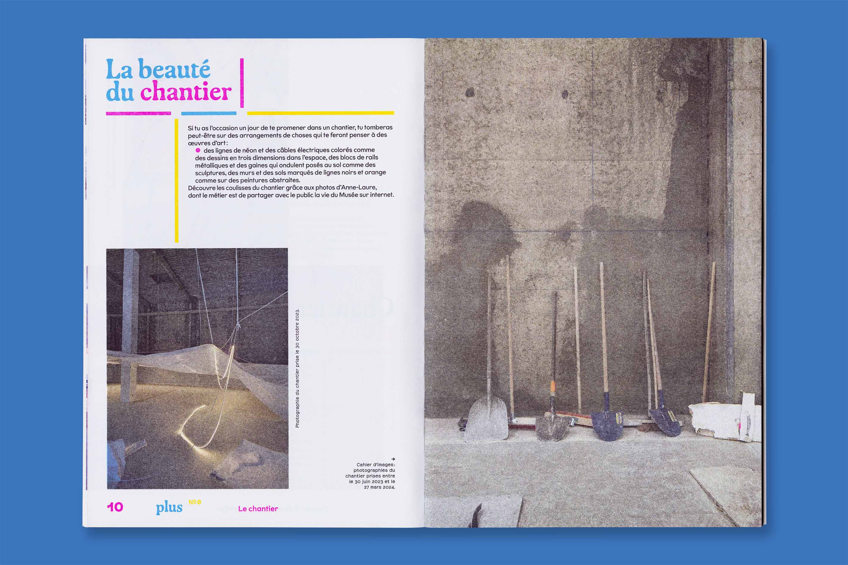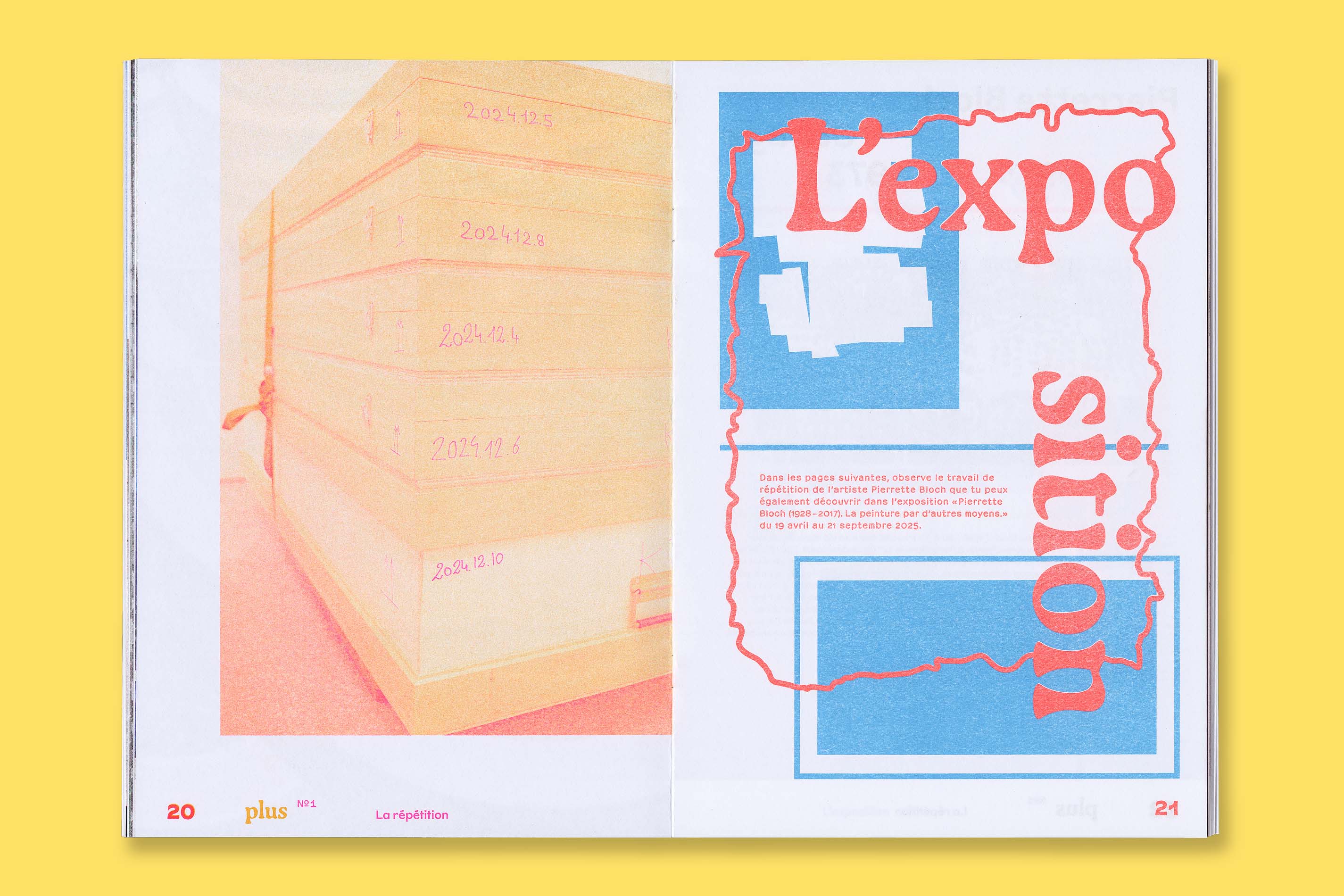 Système Sensible, a graphic duo composed of Charlotte Gauvin and Matthieu Meyer, designed the graphic identity and the layout of Plus, the museum’s magazine for young audiences.