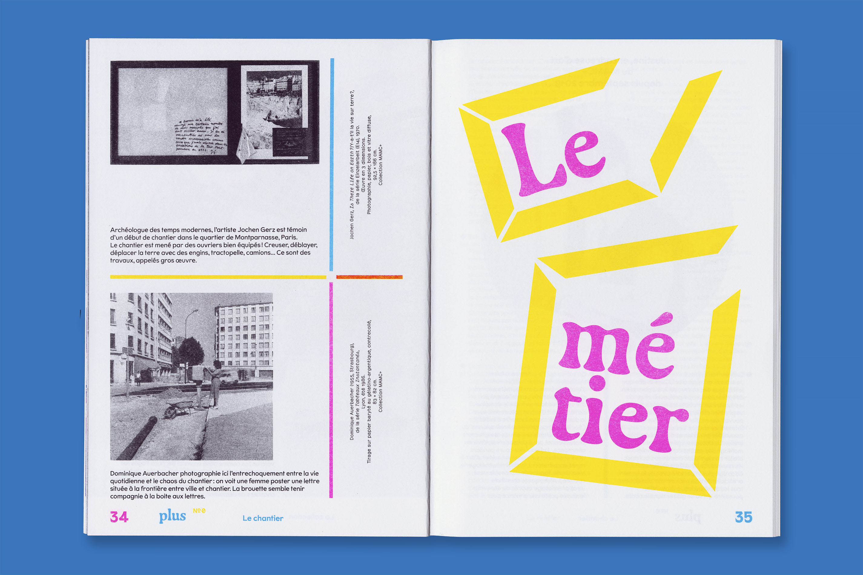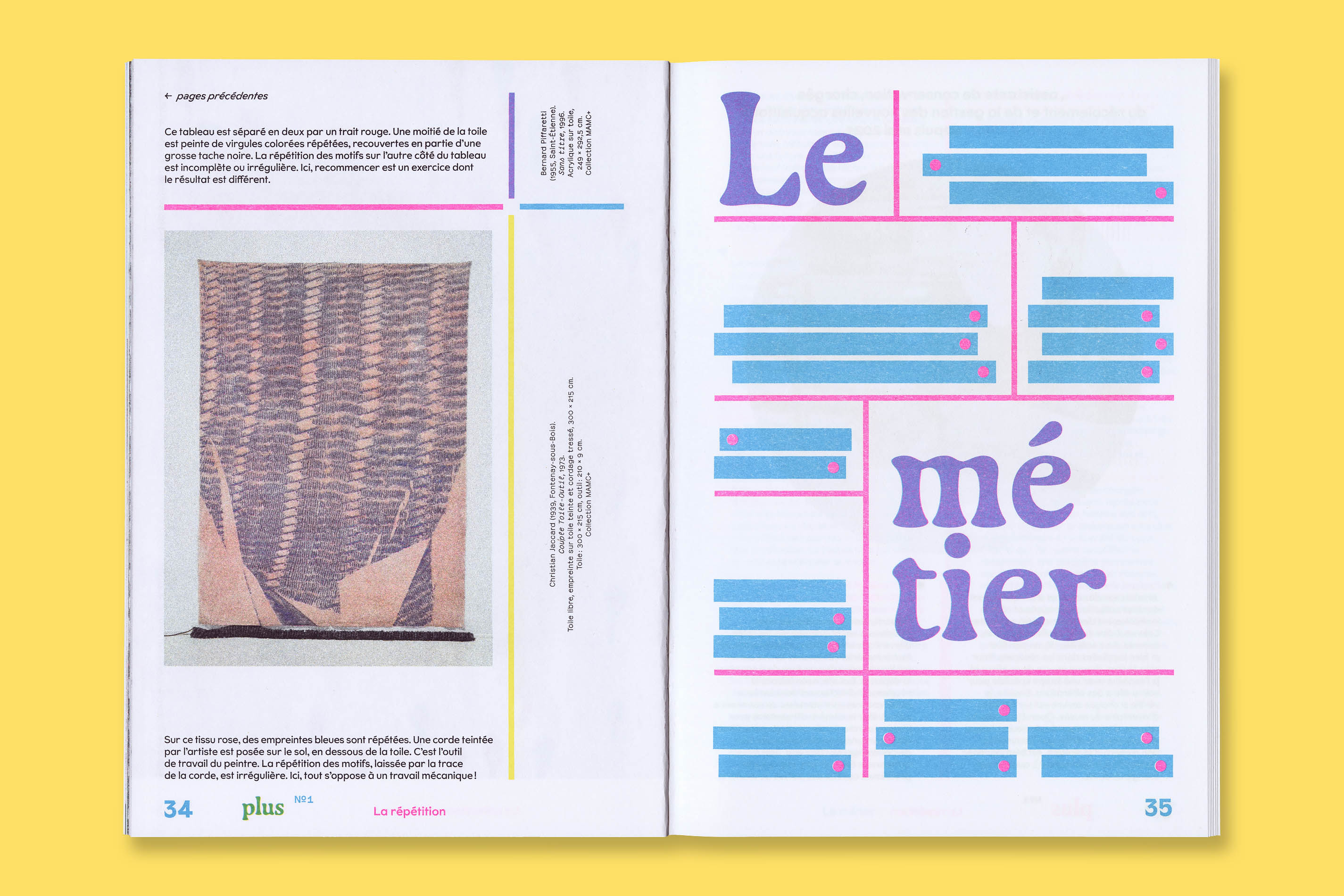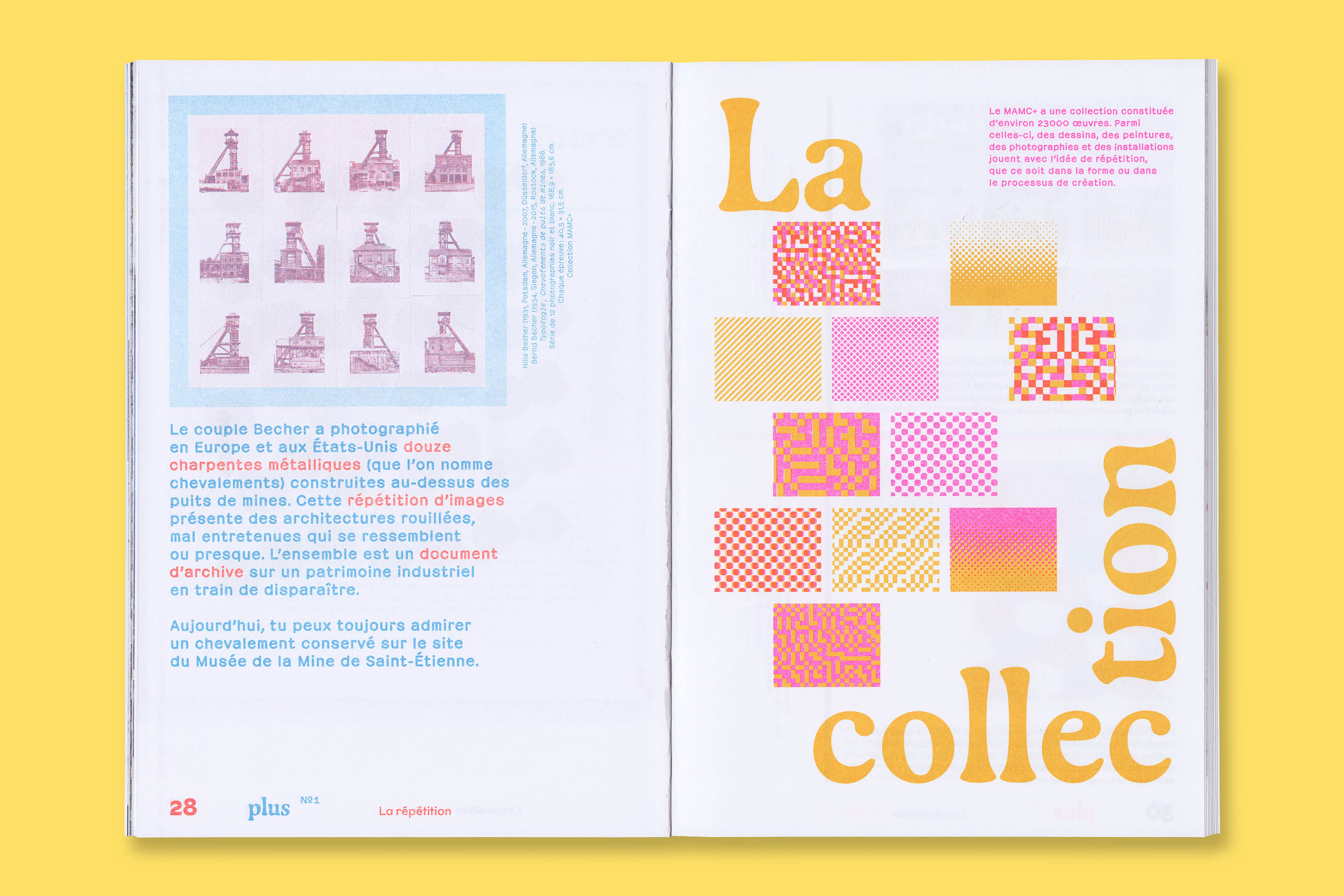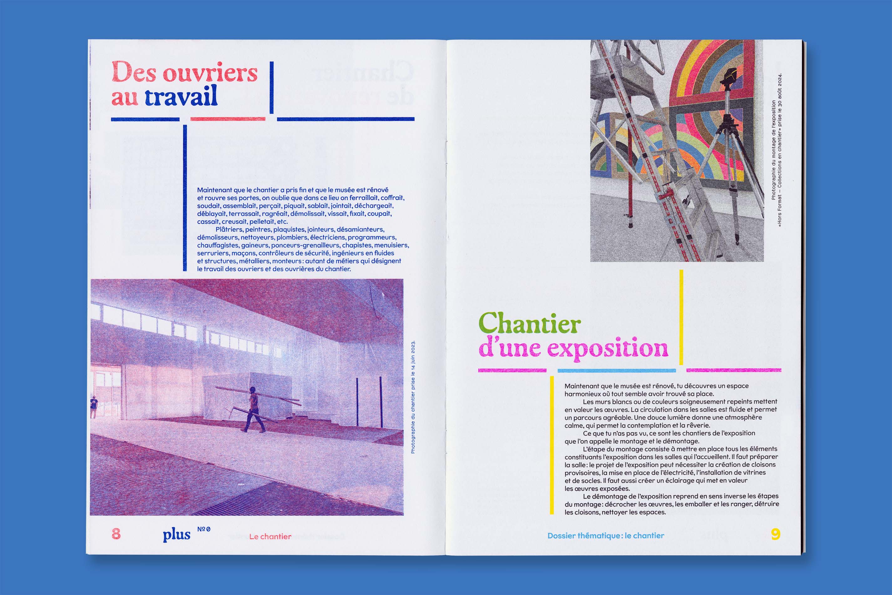 Système Sensible, a graphic duo composed of Charlotte Gauvin and Matthieu Meyer, designed the graphic identity and the layout of Plus, the museum’s magazine for young audiences.