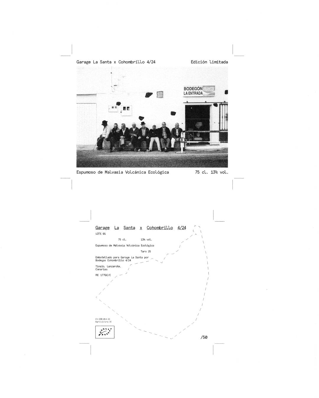 Label design for a limited edition of 50 units from the collaboration between two local Lanzarote entrepreneurs: hotel/lodge Garage La Santa (Adrian Rodd) and winery Bodega Cohombrillo.